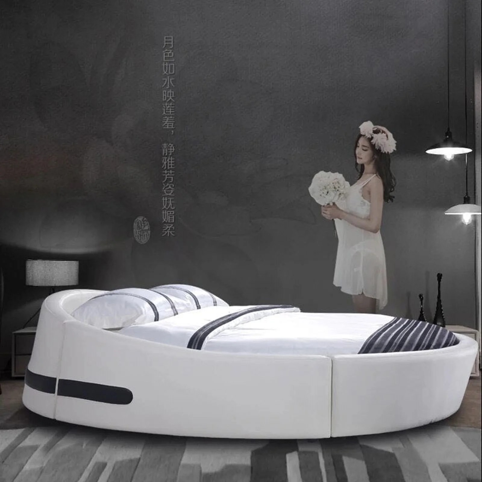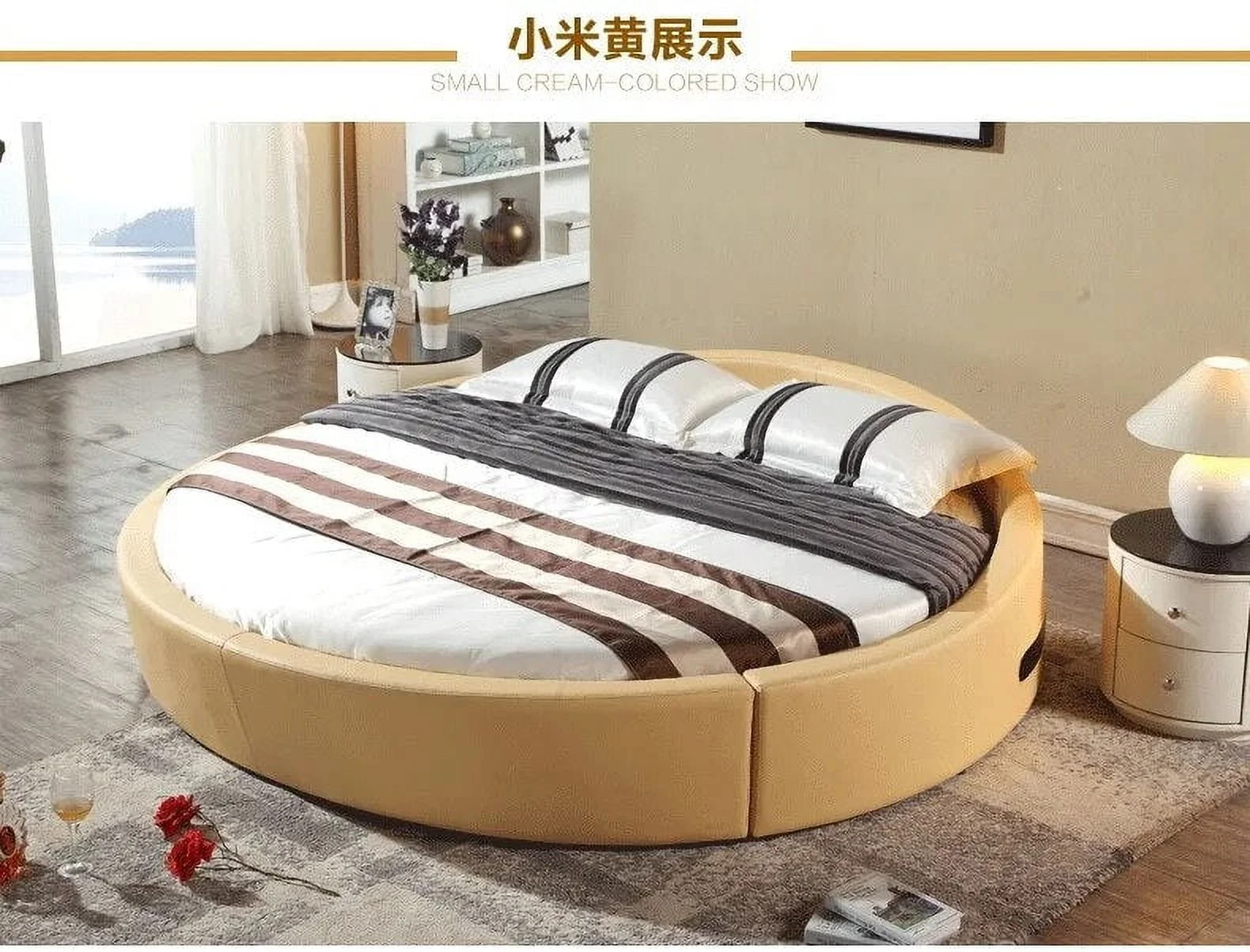 Real Genuine cow leather bed Soft Beds Bedroom round bed camas lit muebles de dormitorio yatak mobilya quarto unique designer