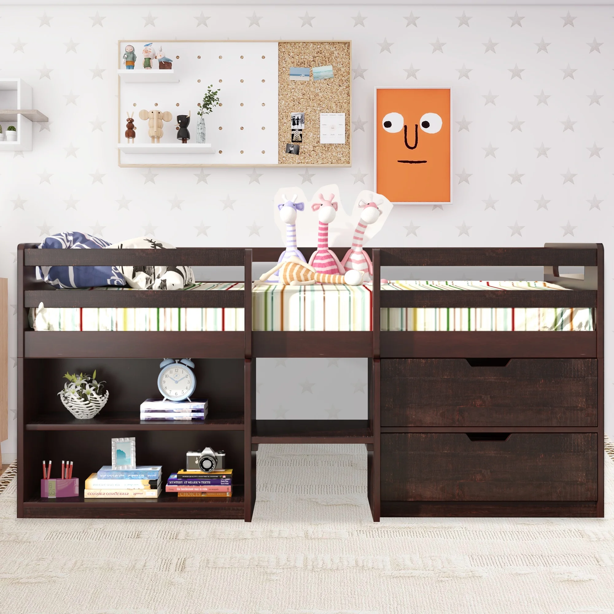 Homestock Artistic Accomplishment, Full Futon Frame with Storage Drawers, Color:Butternut/Dark Brown