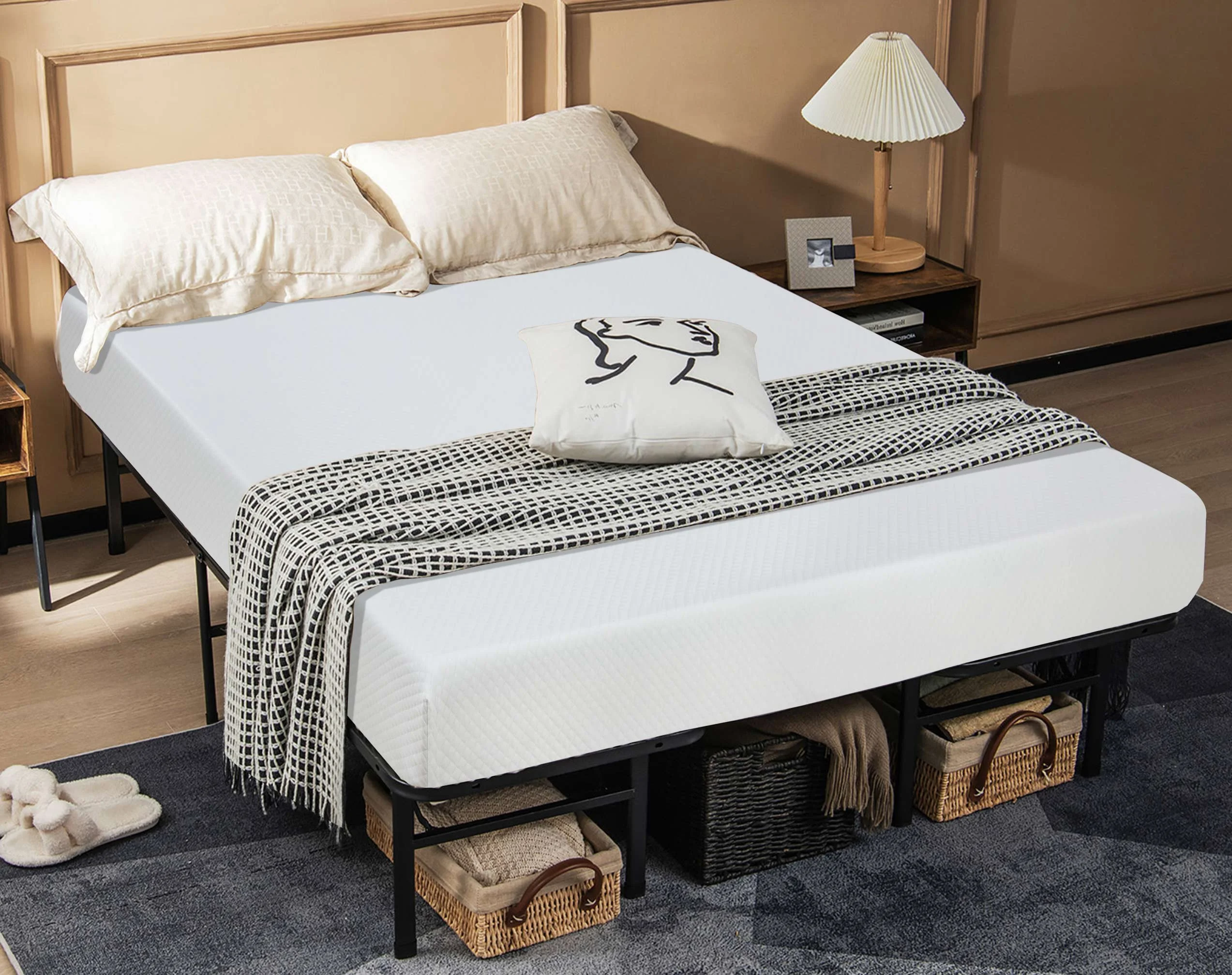 Queen Size Upholstered Platform Bed with Storage Headboard and USB Port, Linen Fabric Upholstered Bed (Beige)