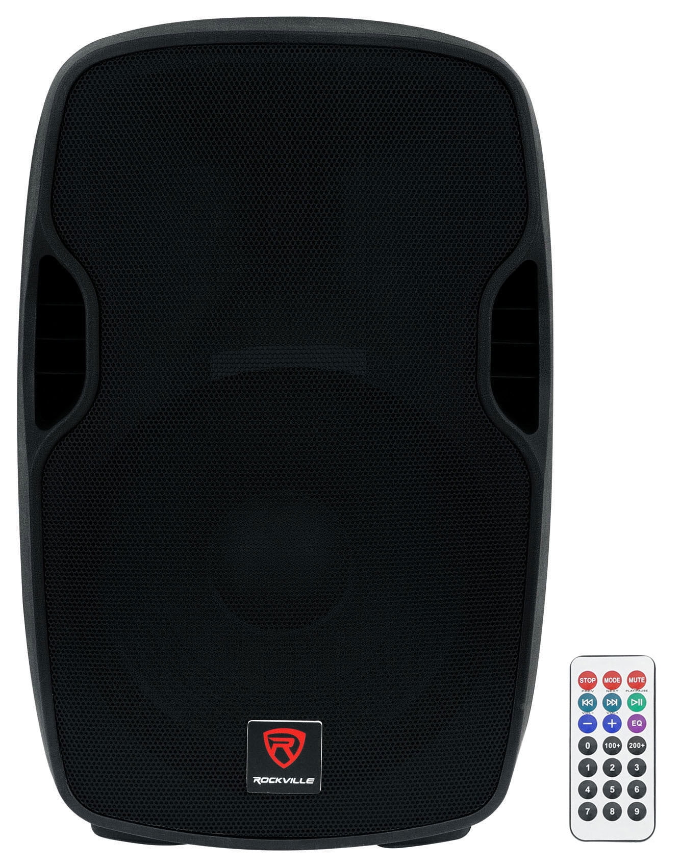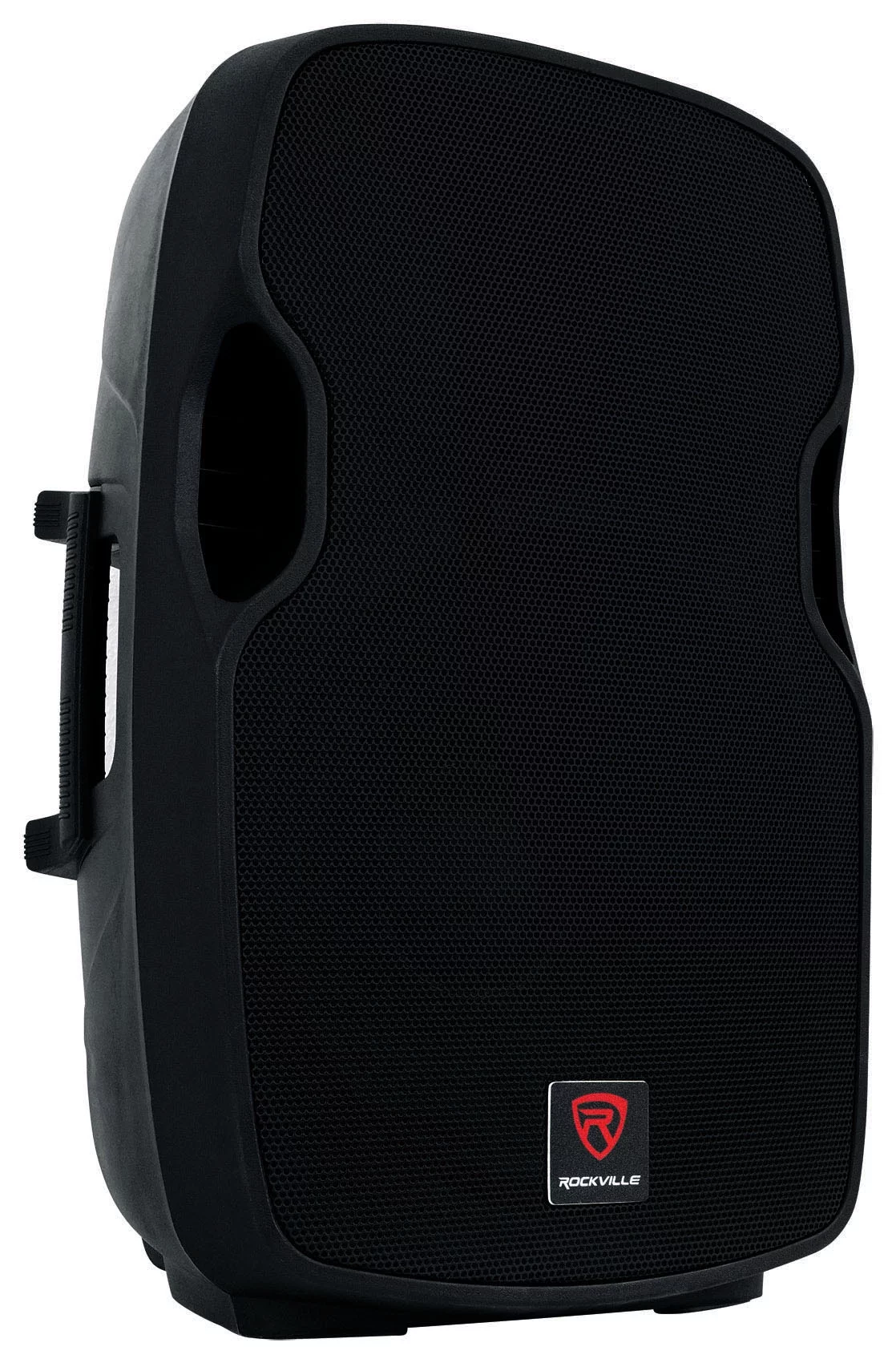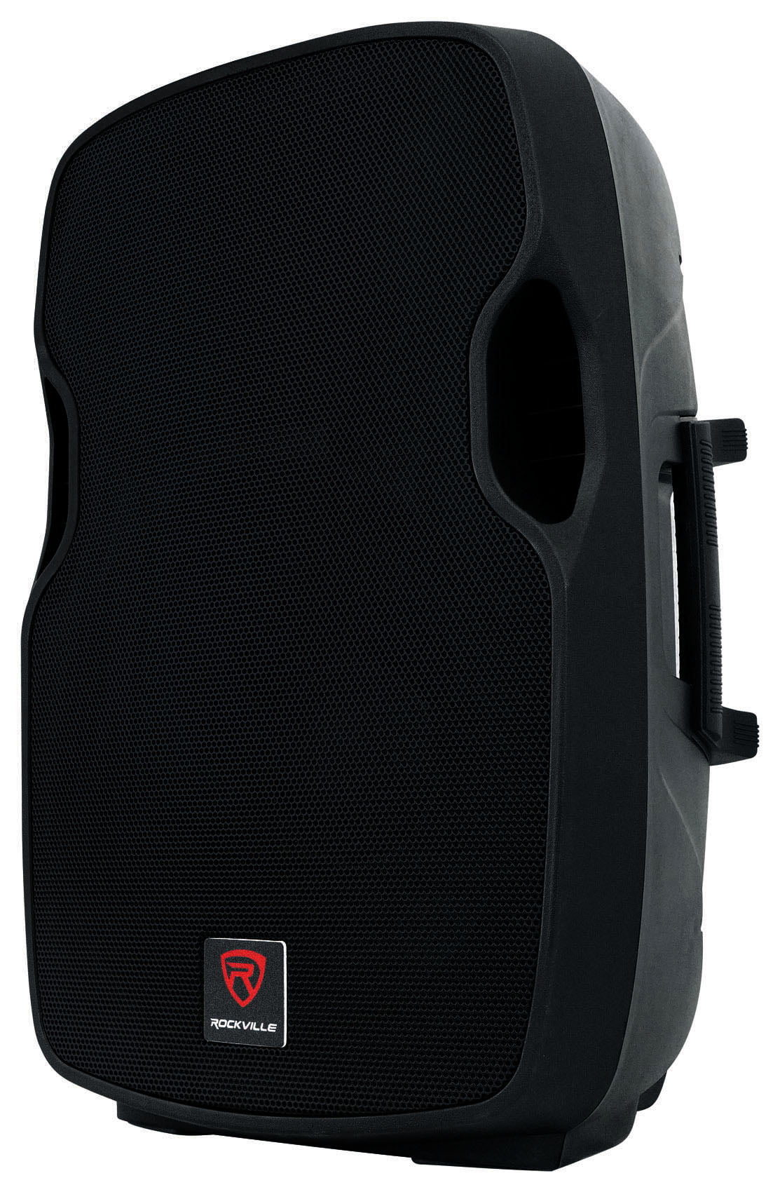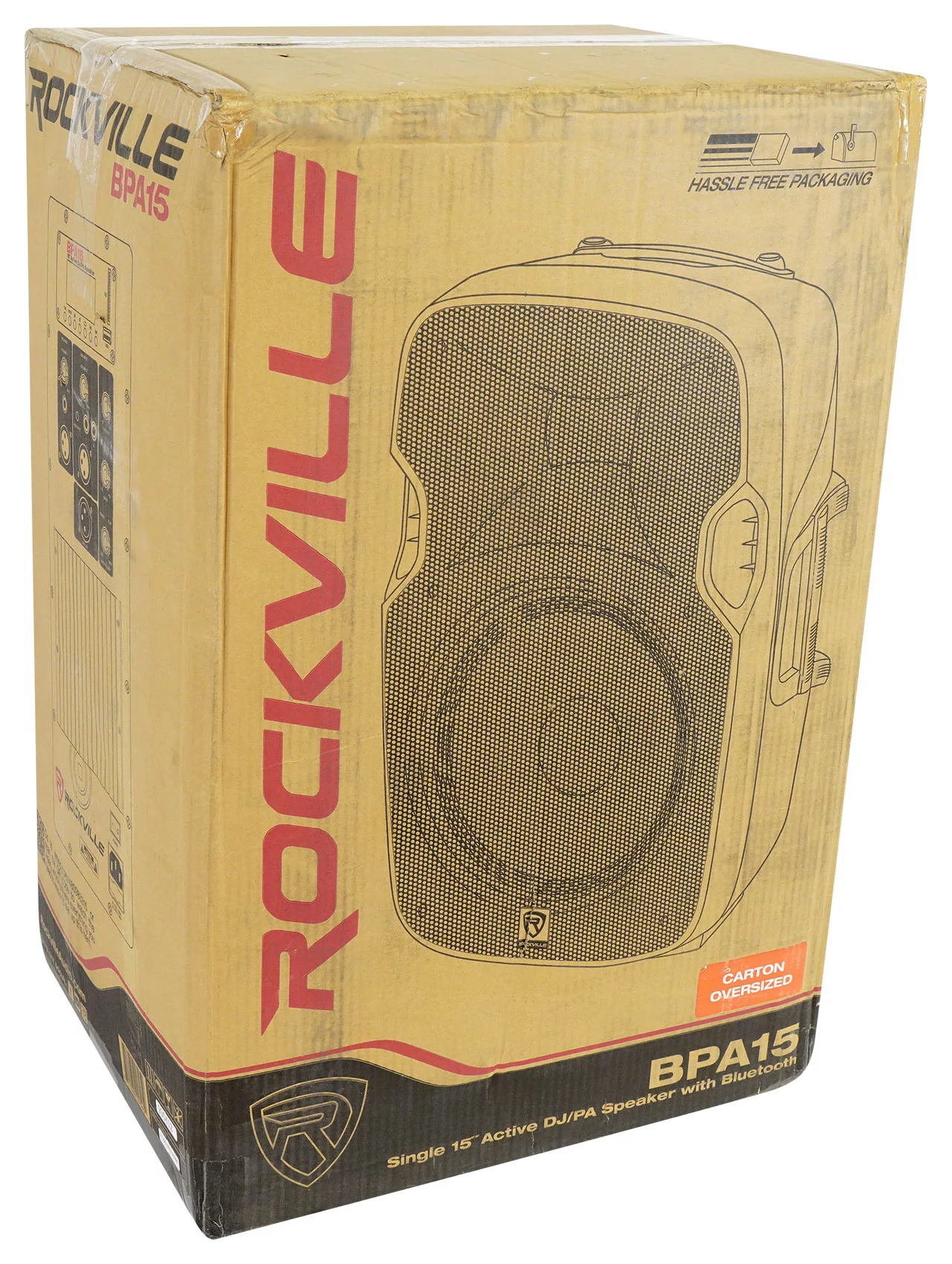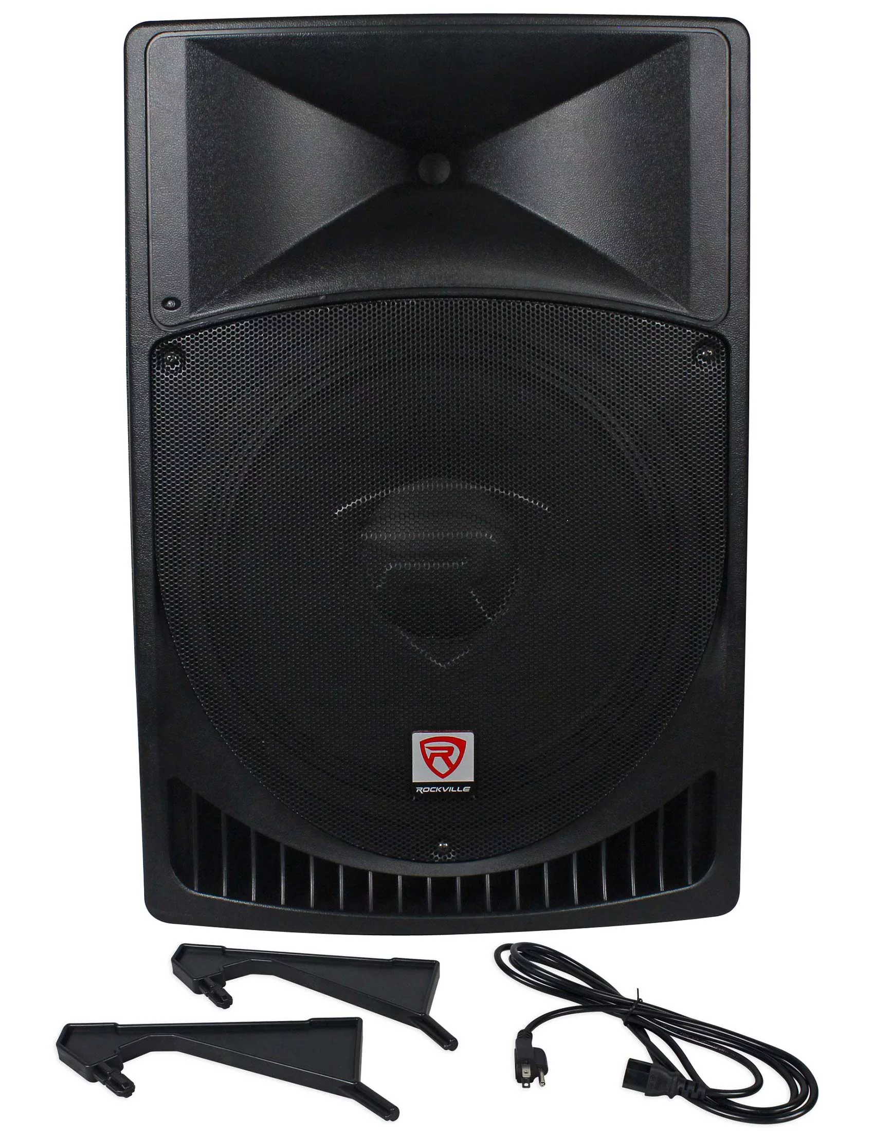 (2) Rockville BPA15 15" 1600w Active PA/DJ Speakers+Mixer+Mic+Stands+Cables+Bag