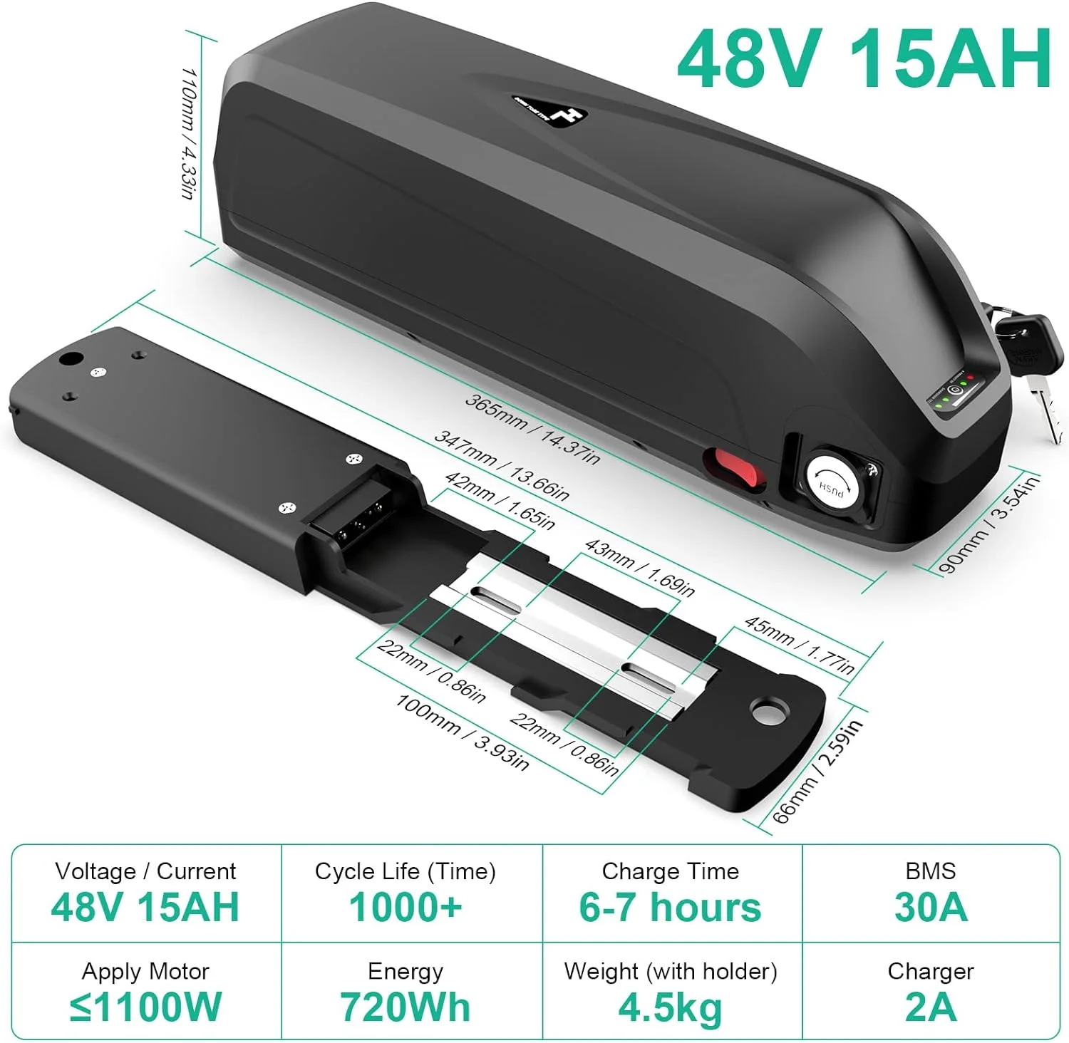 BVSLTUK 48V Ebike Battery 15Ah Electric Bike Battery for 500W 750W 1000W Electric Bike Motor Bike Battery.