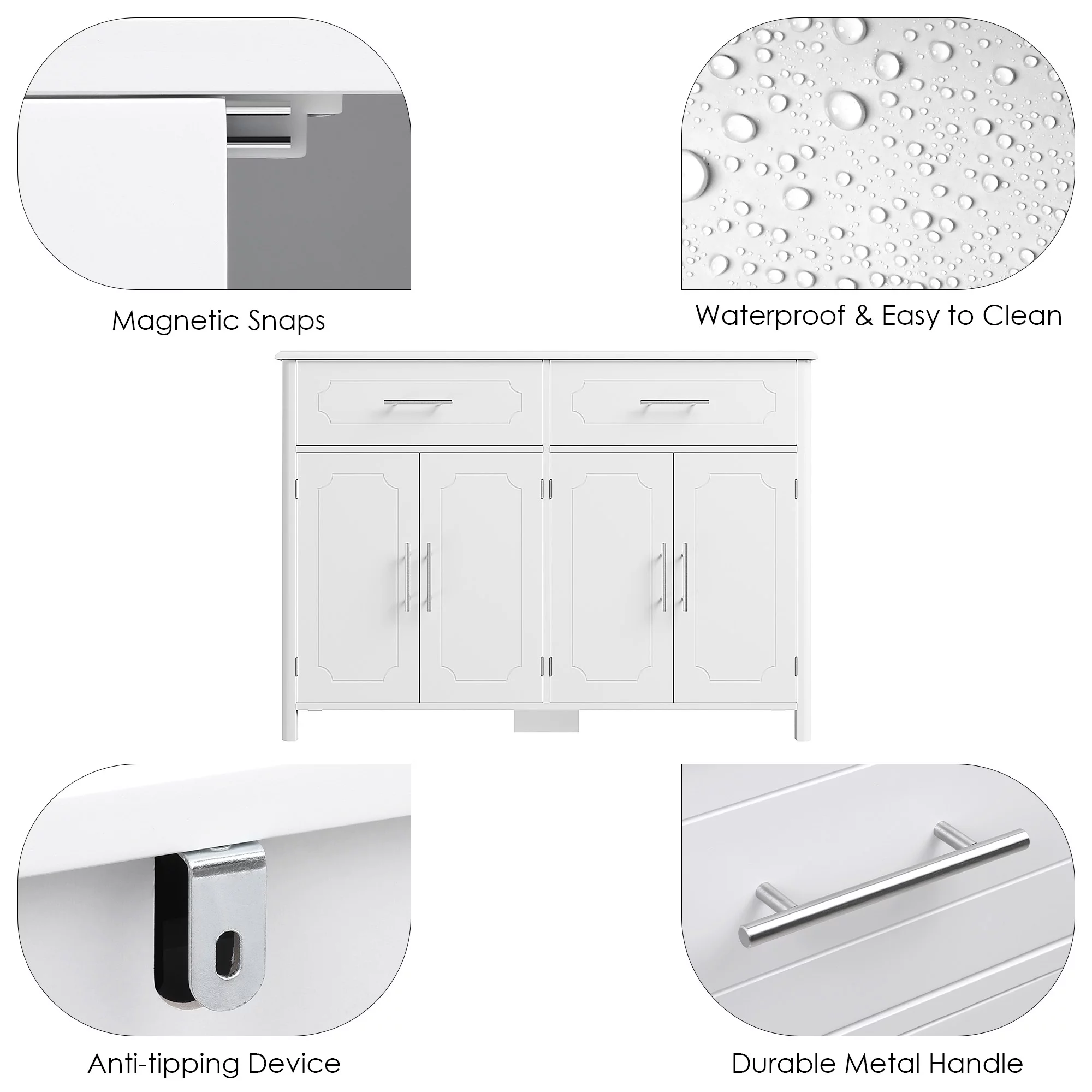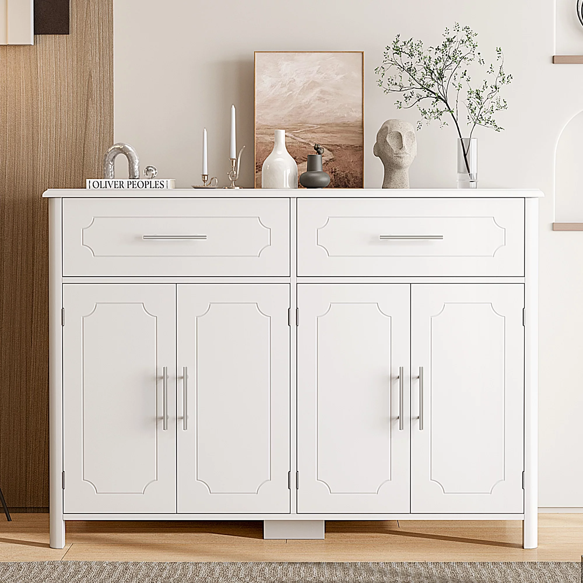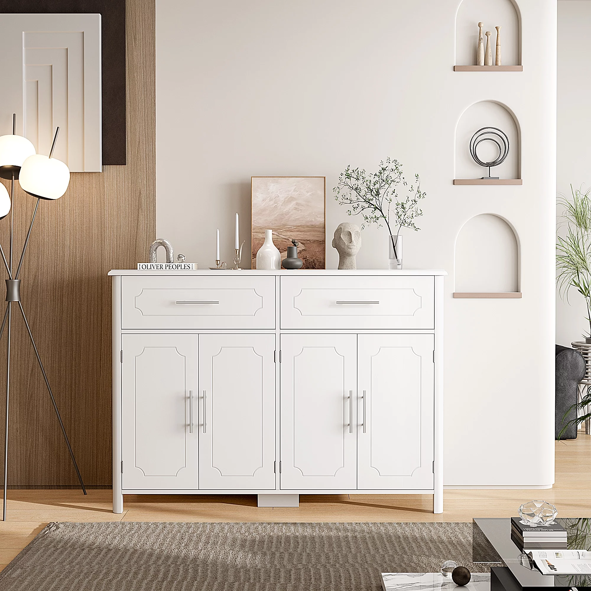 Homfa Kitchen Sideboard Buffet Cabinet with 2 Drawers & 4 Doors, Modern Coffee Bar Cabinet for Living Room, White