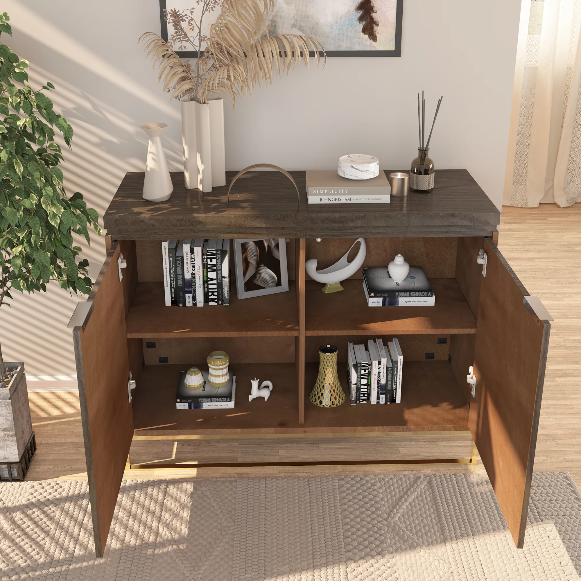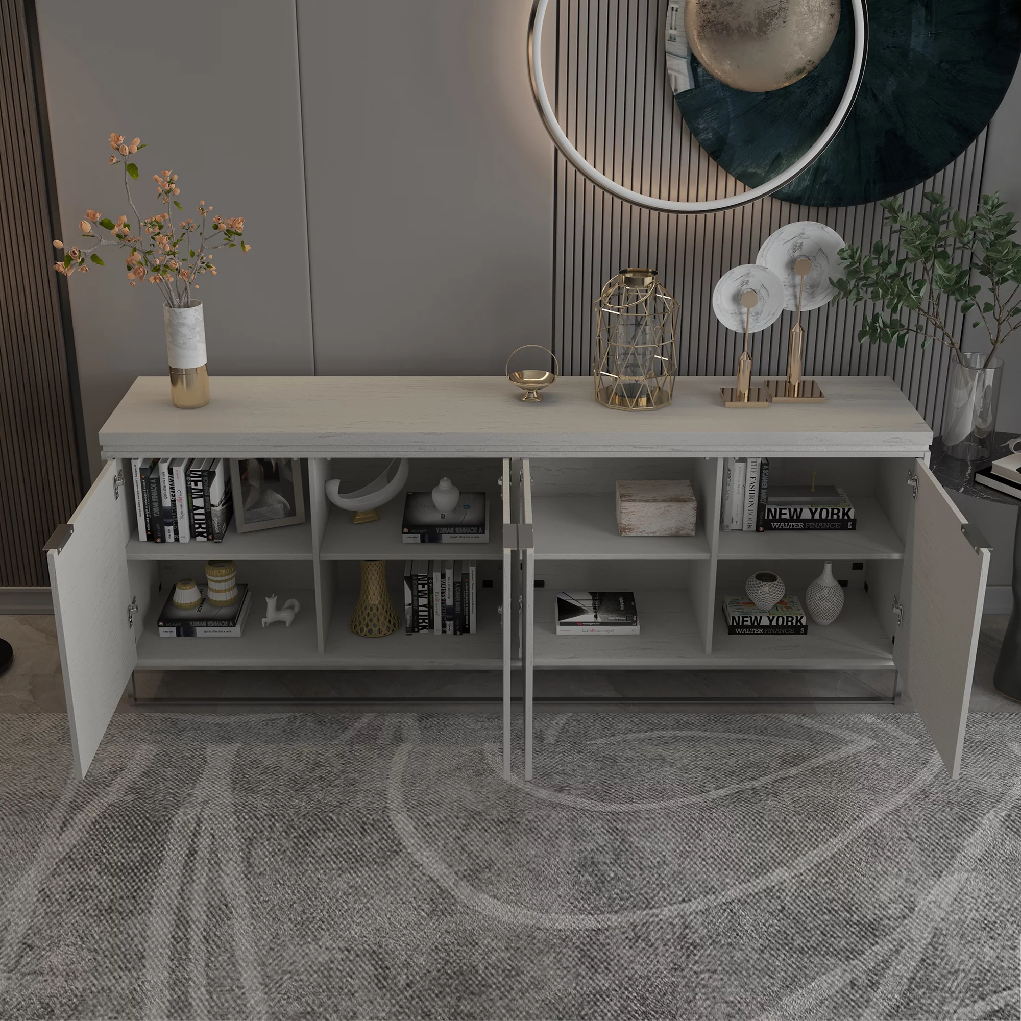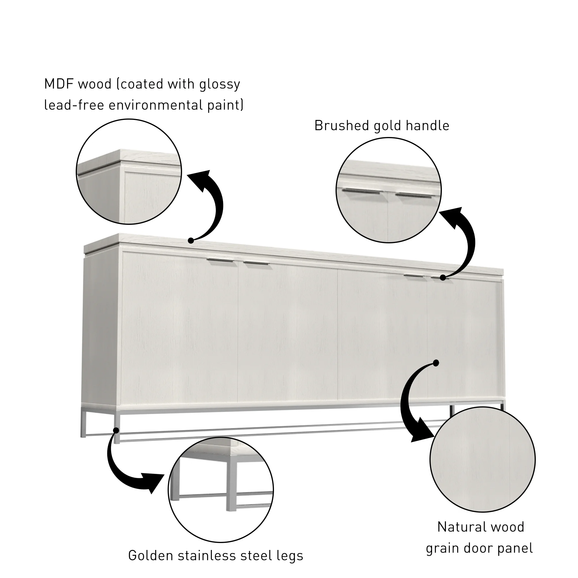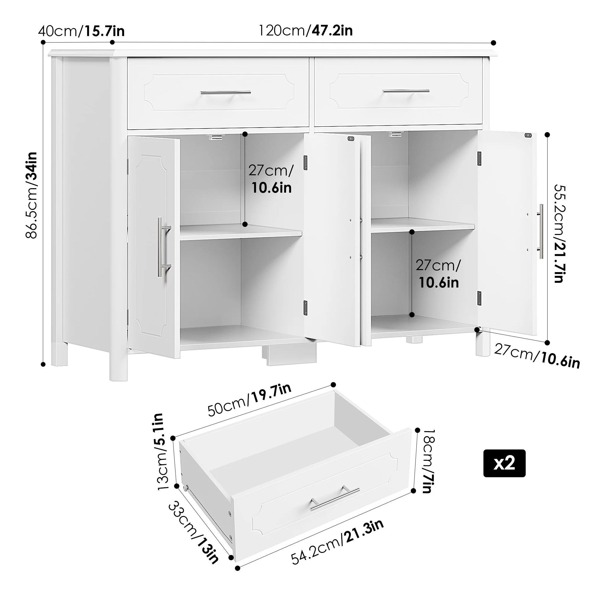 Homfa Kitchen Sideboard Buffet Cabinet with 2 Drawers & 4 Doors, Modern Coffee Bar Cabinet for Living Room, White