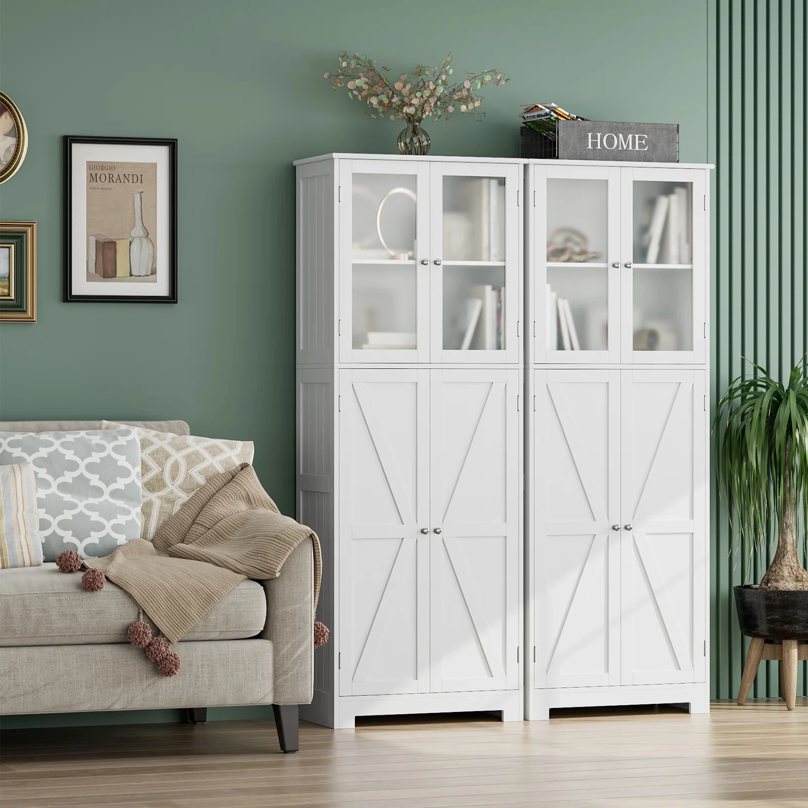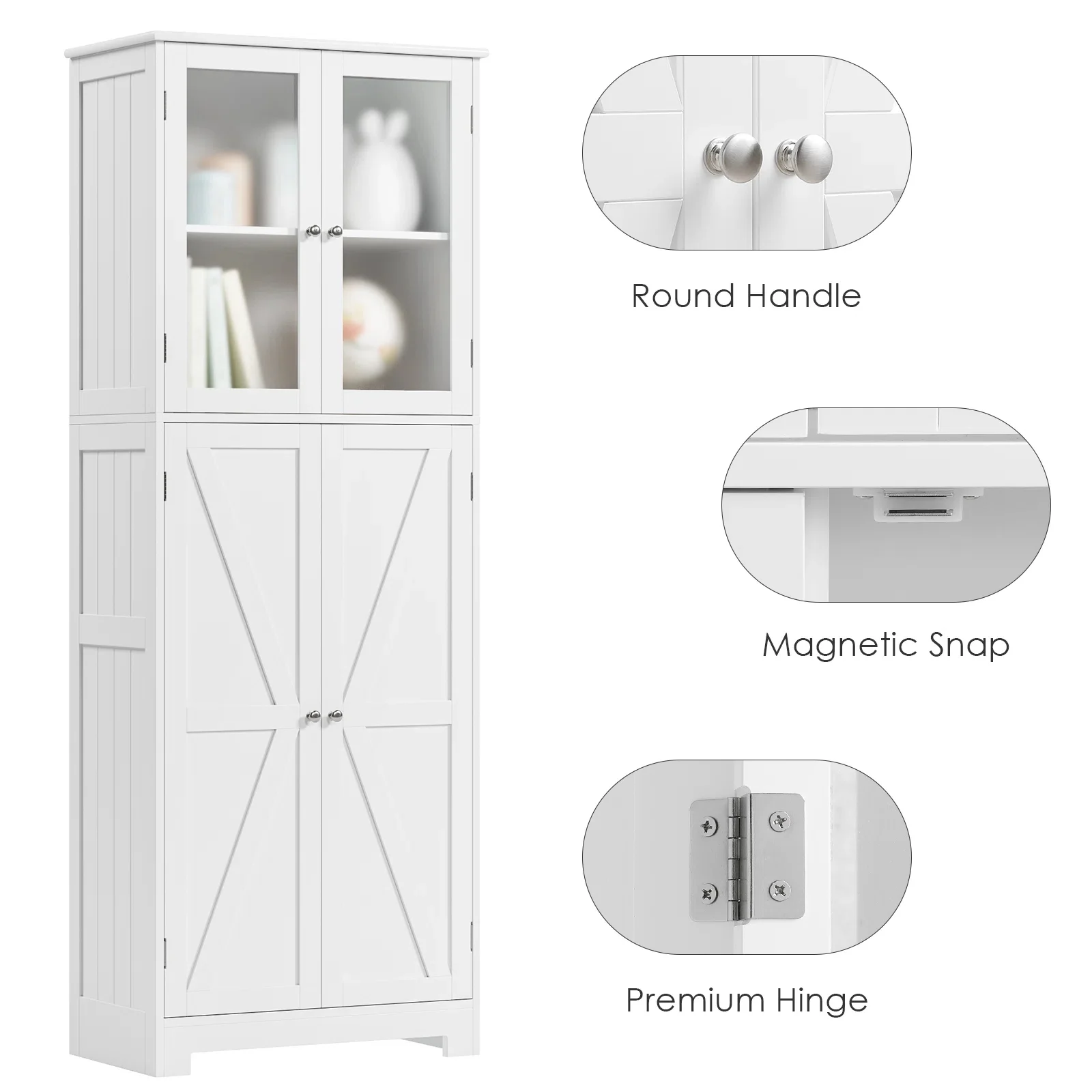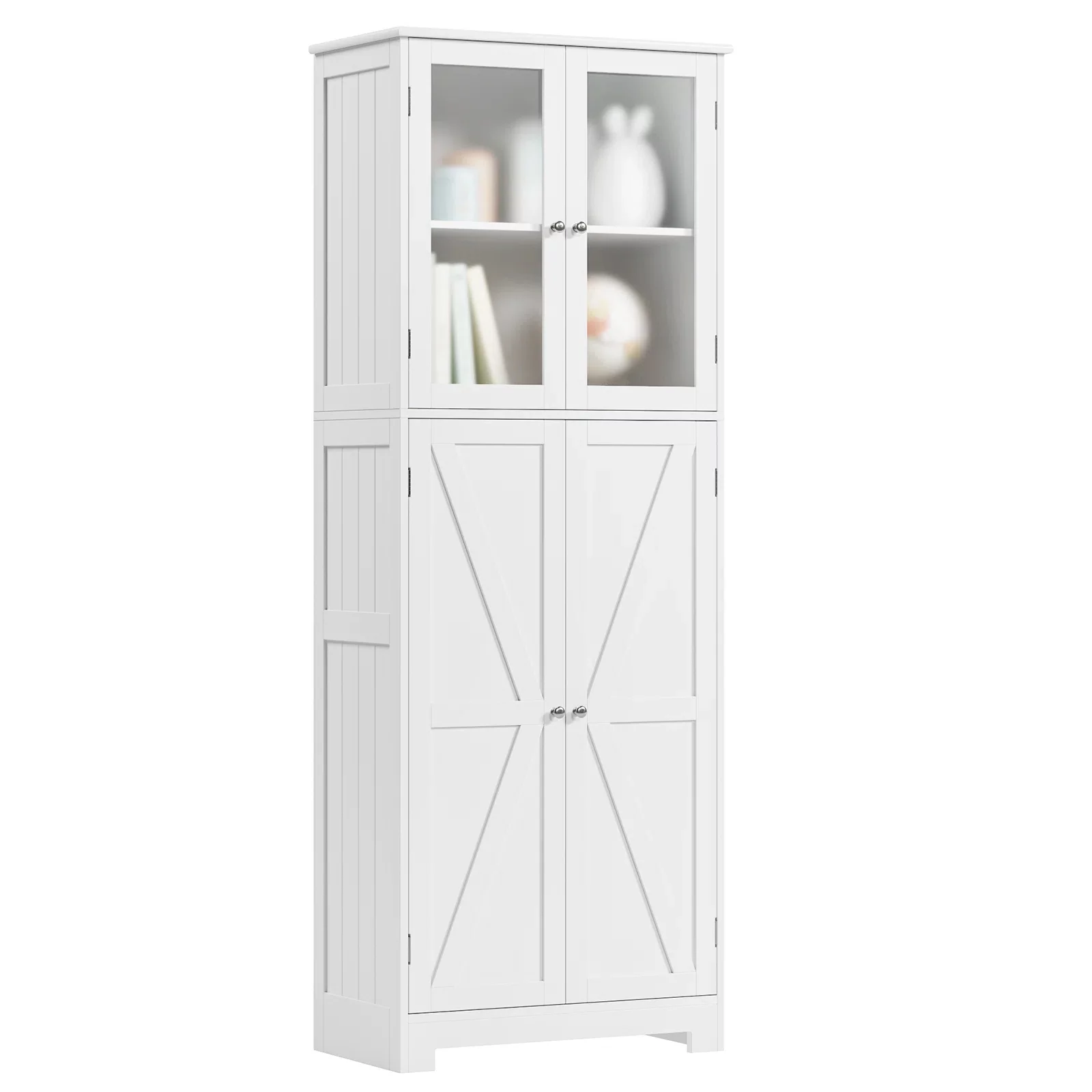 Homfa 76" Tall Kitchen Pantry, Free-standing Wood Storage Cabinet with Farmhouse Barn Doors for Dining Room, White