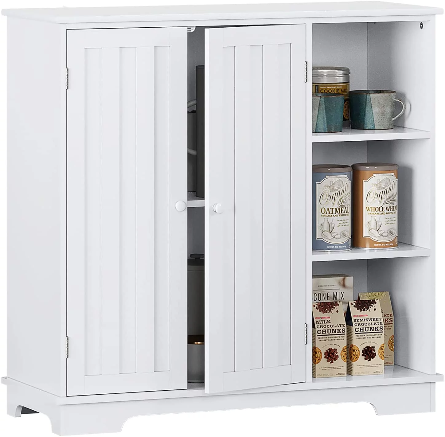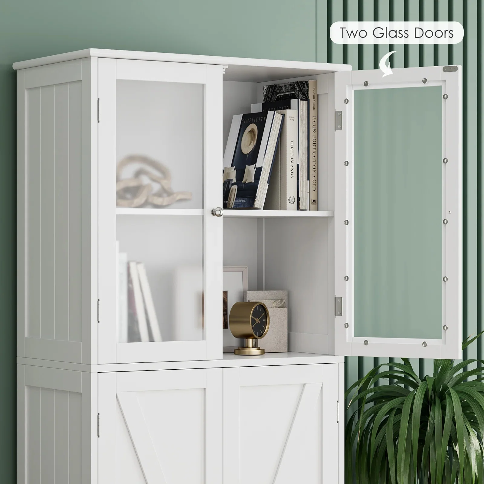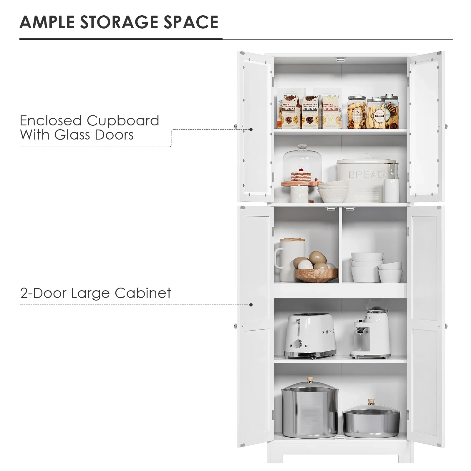 Homfa 76" Tall Kitchen Pantry, Free-standing Wood Storage Cabinet with Farmhouse Barn Doors for Dining Room, White