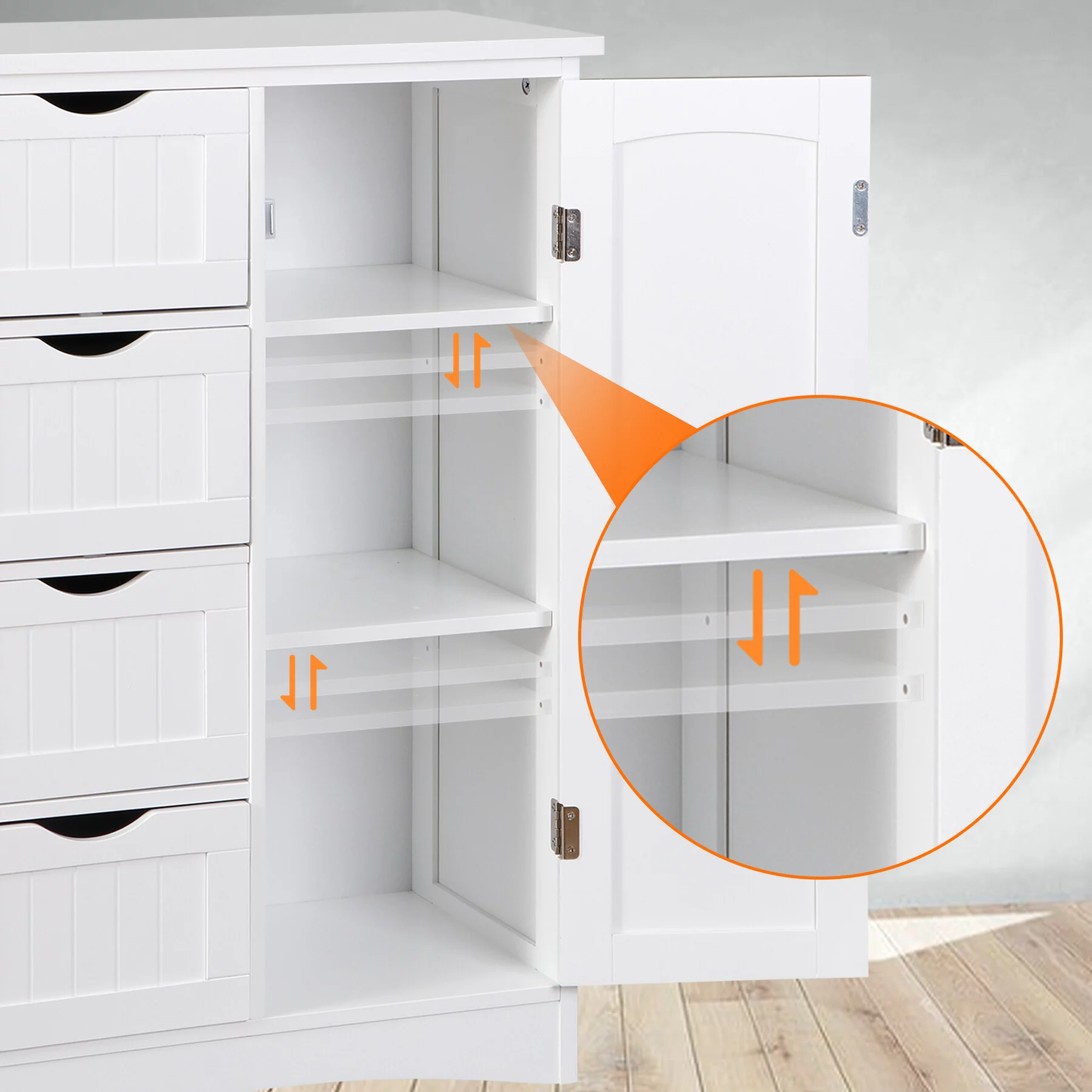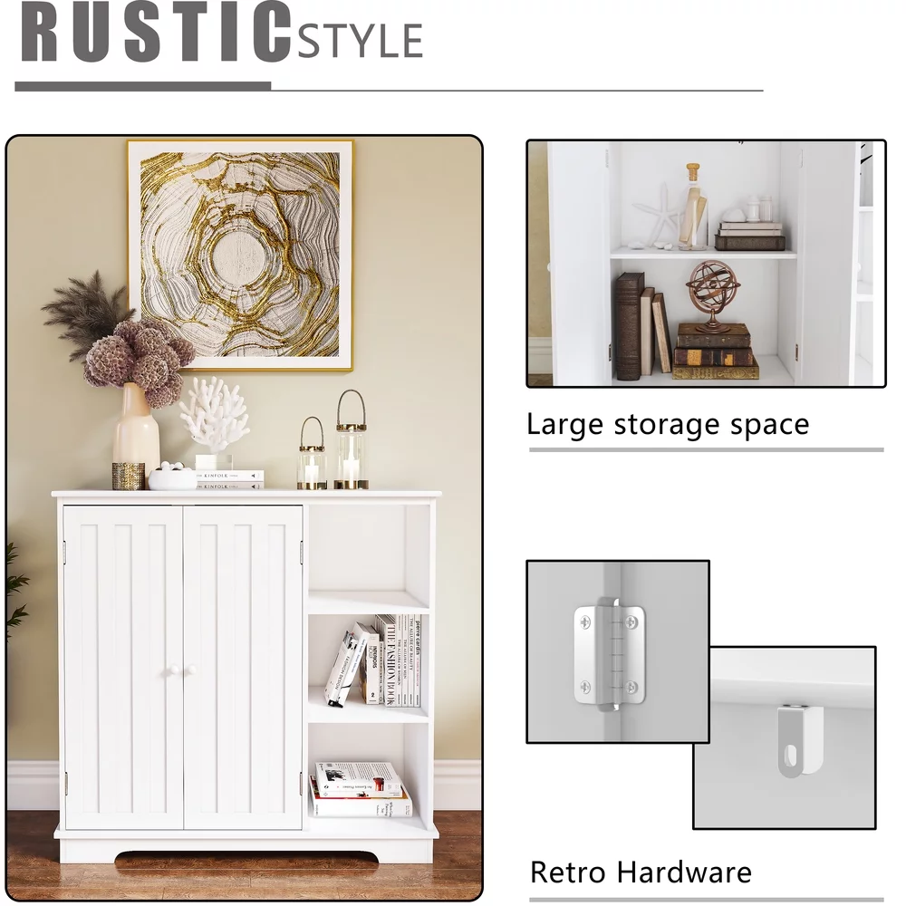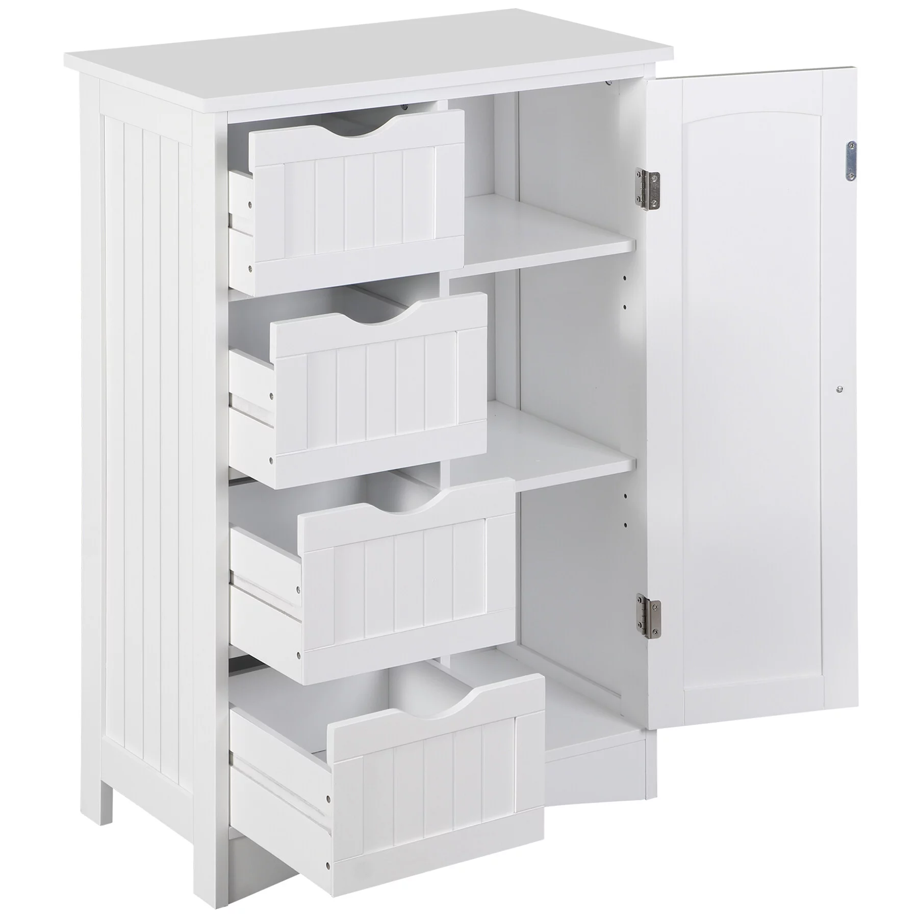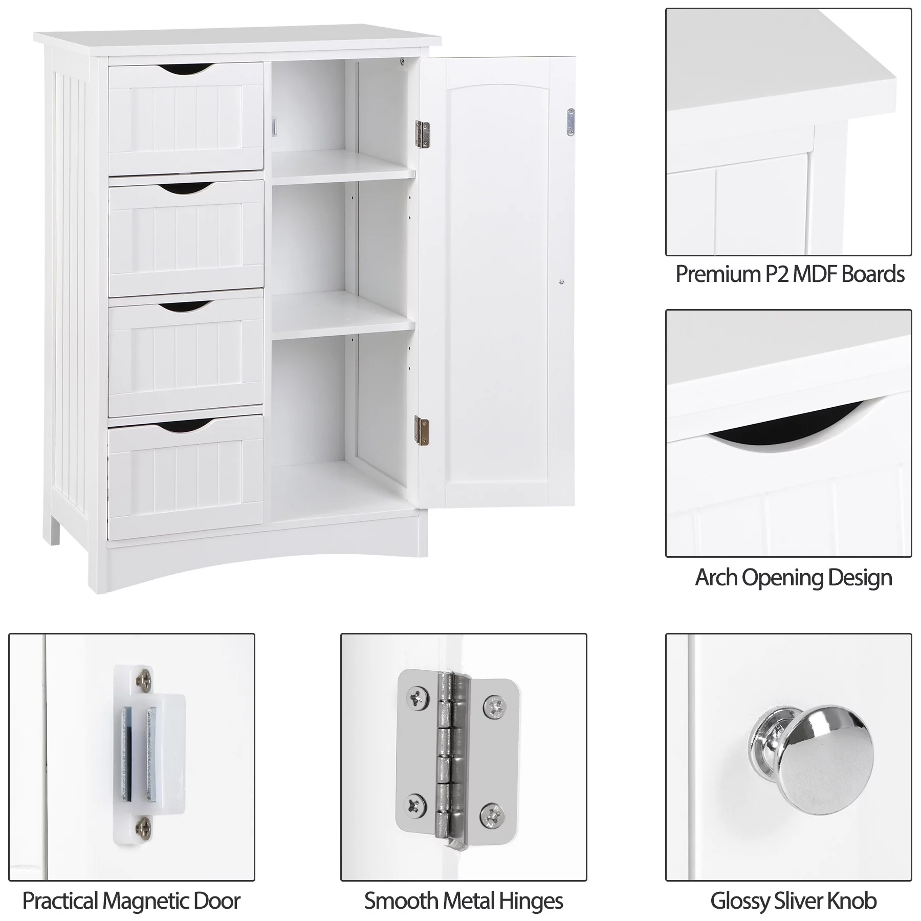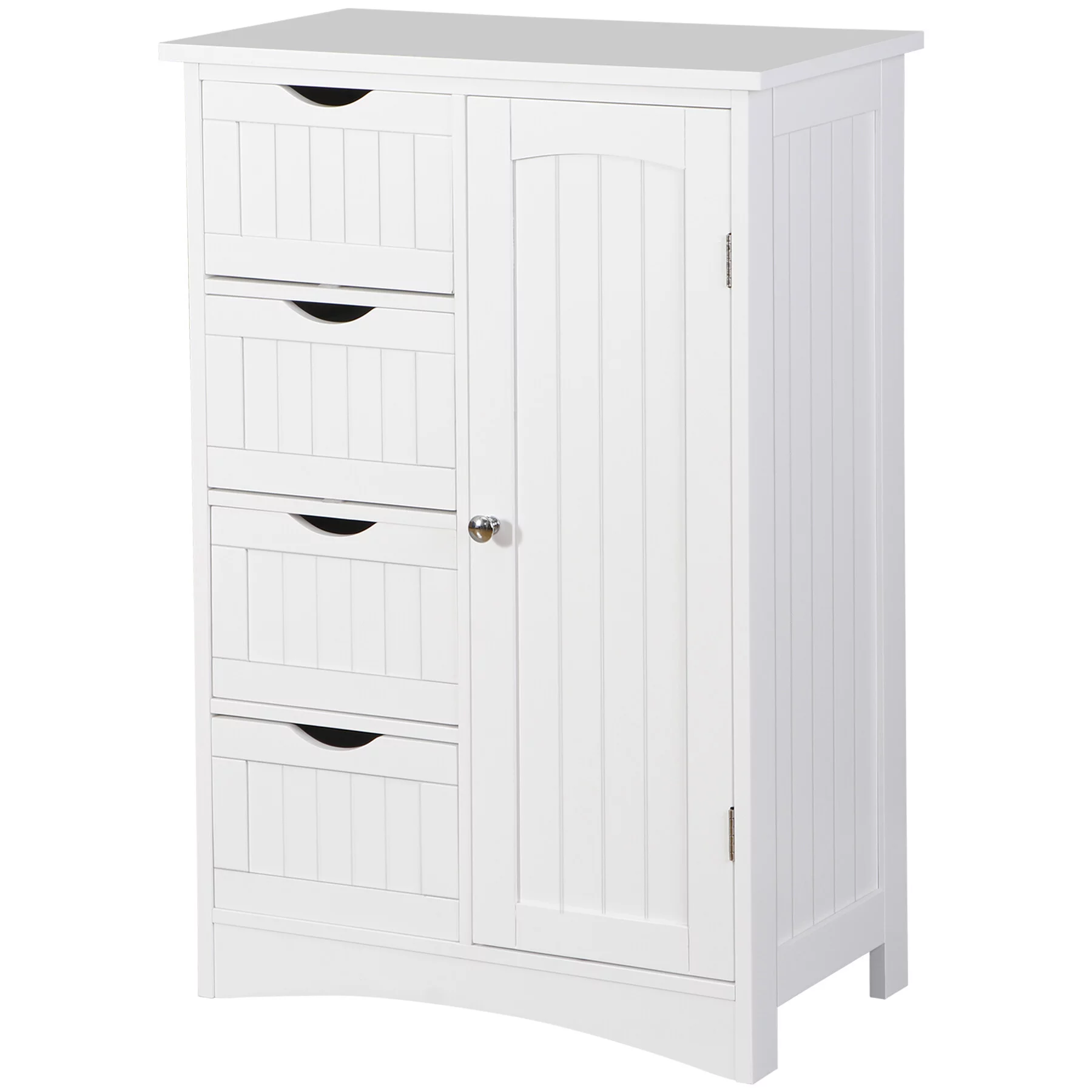 HomGarden Bathroom Floor Cabinet Kitchen Side Storage Organizer W/ 4 Drawers & 1 Cupboard, White