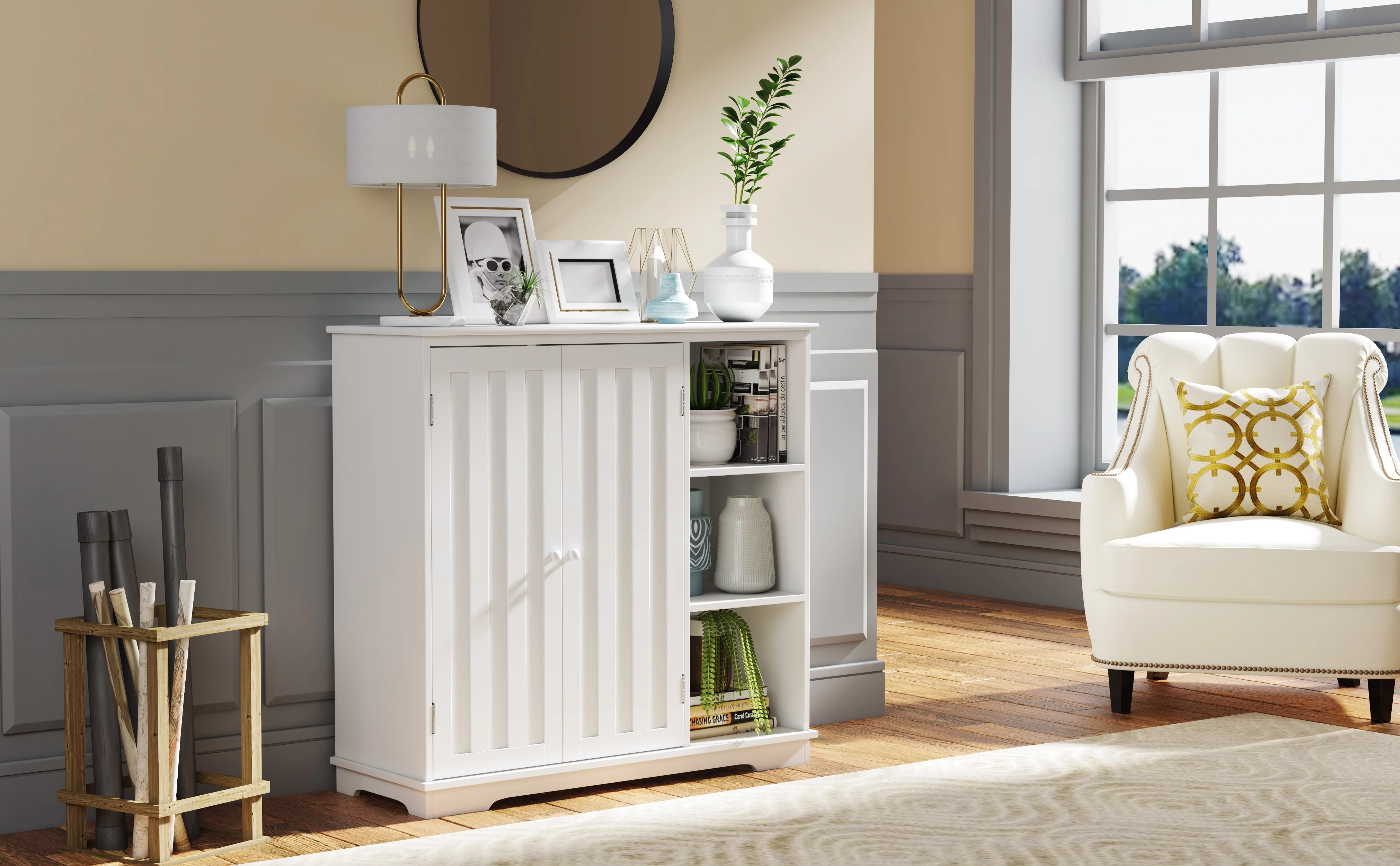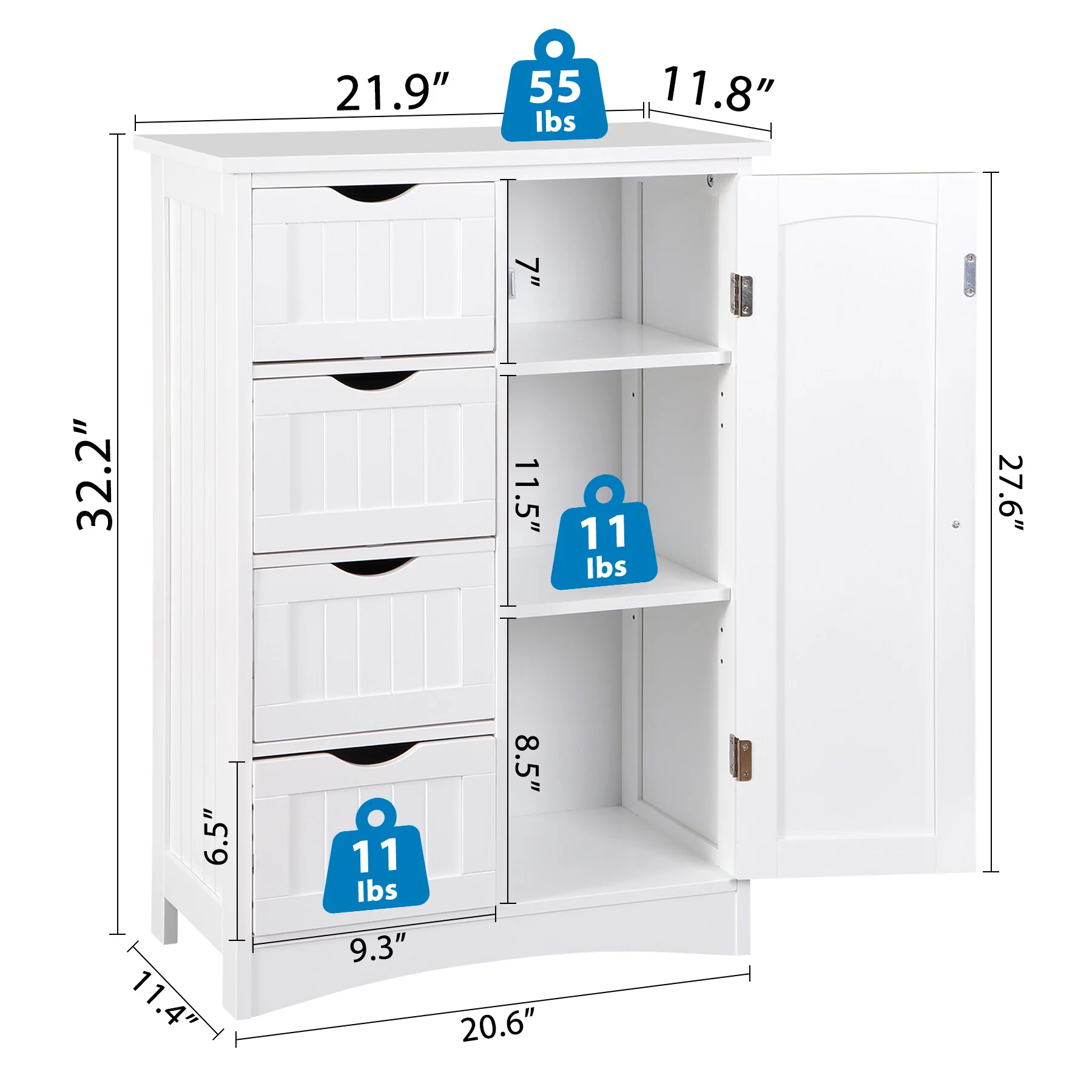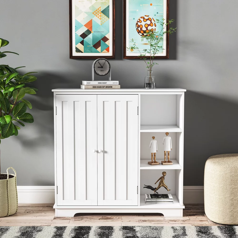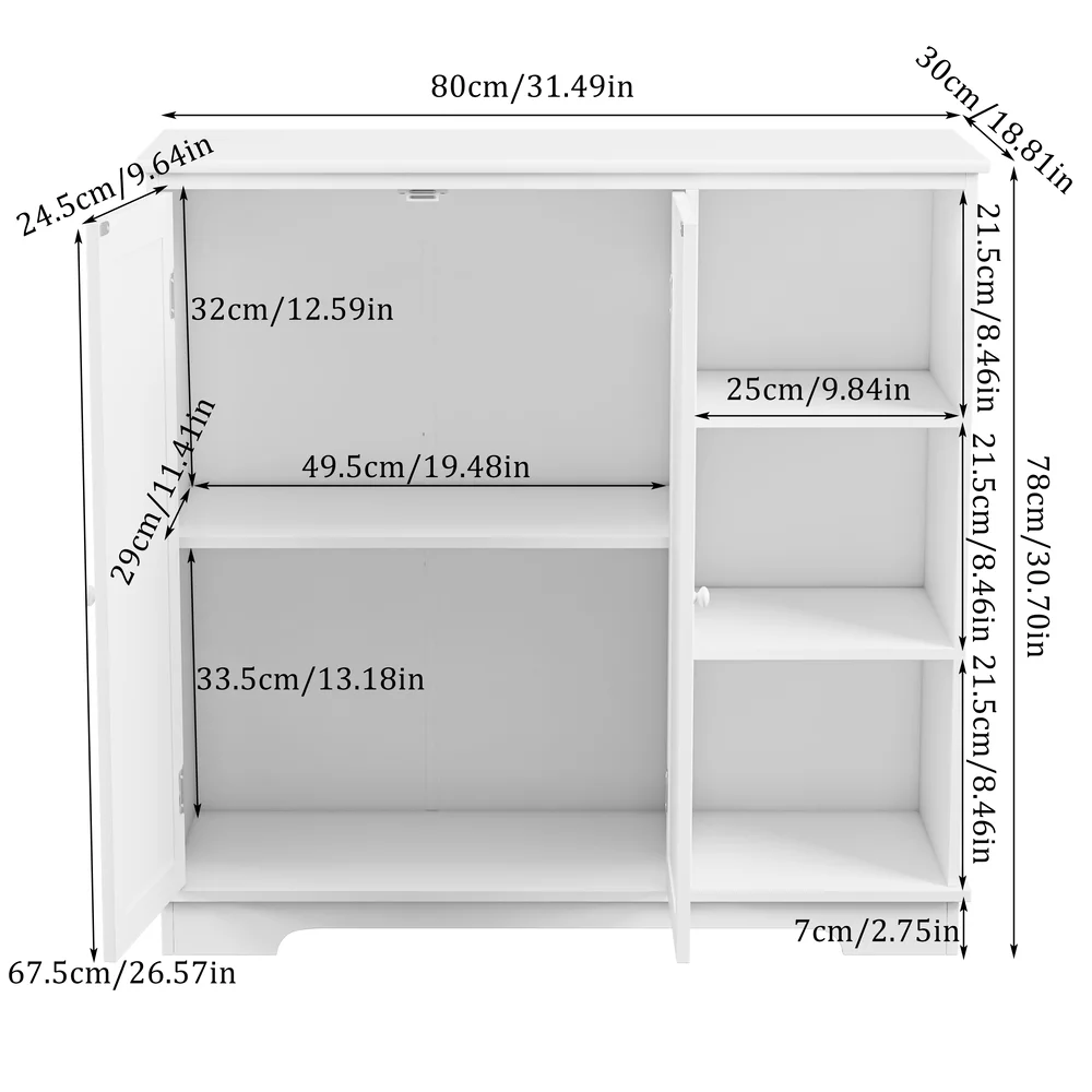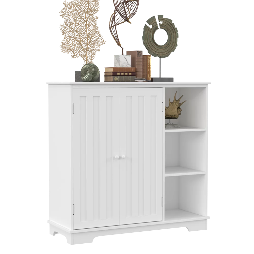 HomGarden Bathroom Floor Cabinet Kitchen Side Storage Organizer W/ 4 Drawers & 1 Cupboard, White