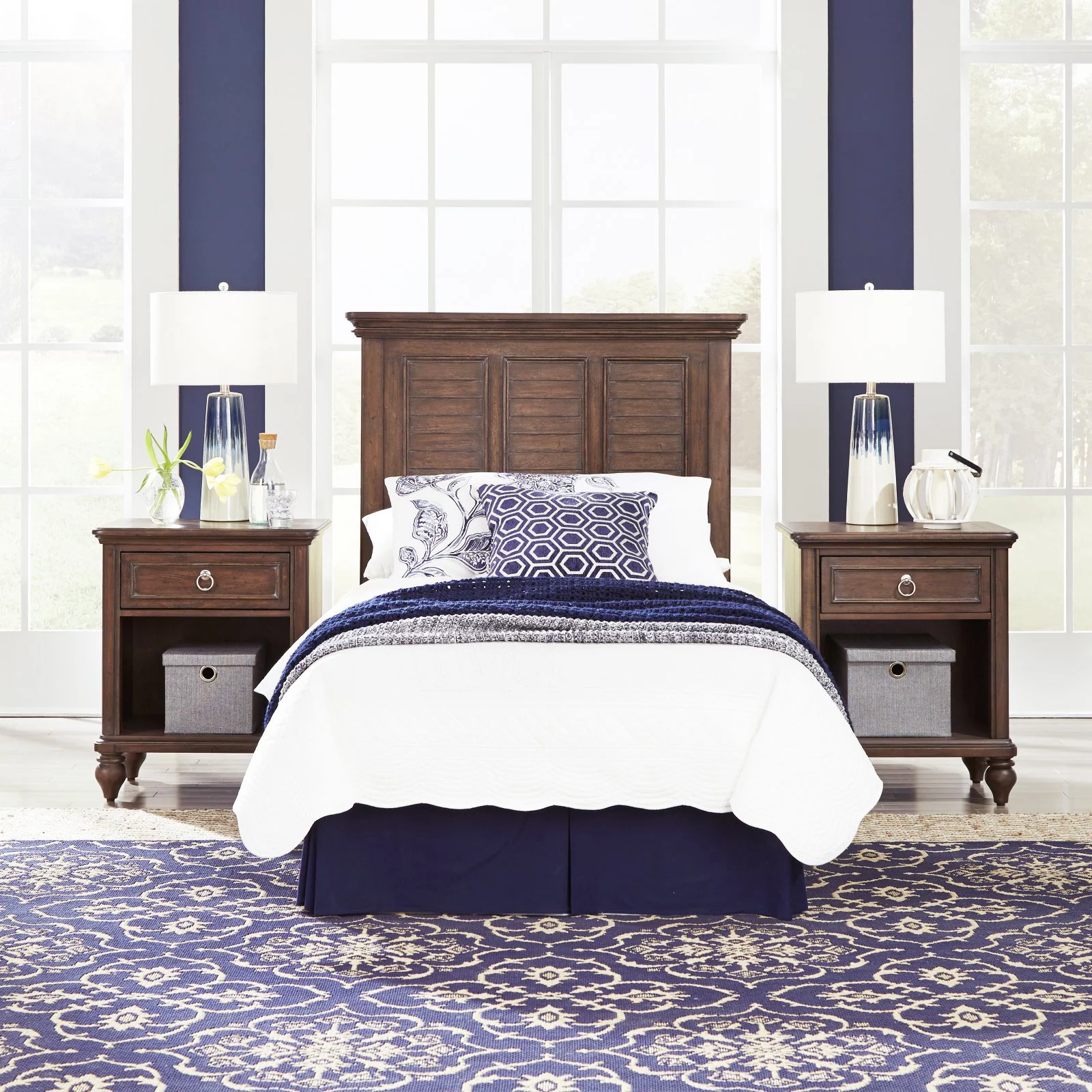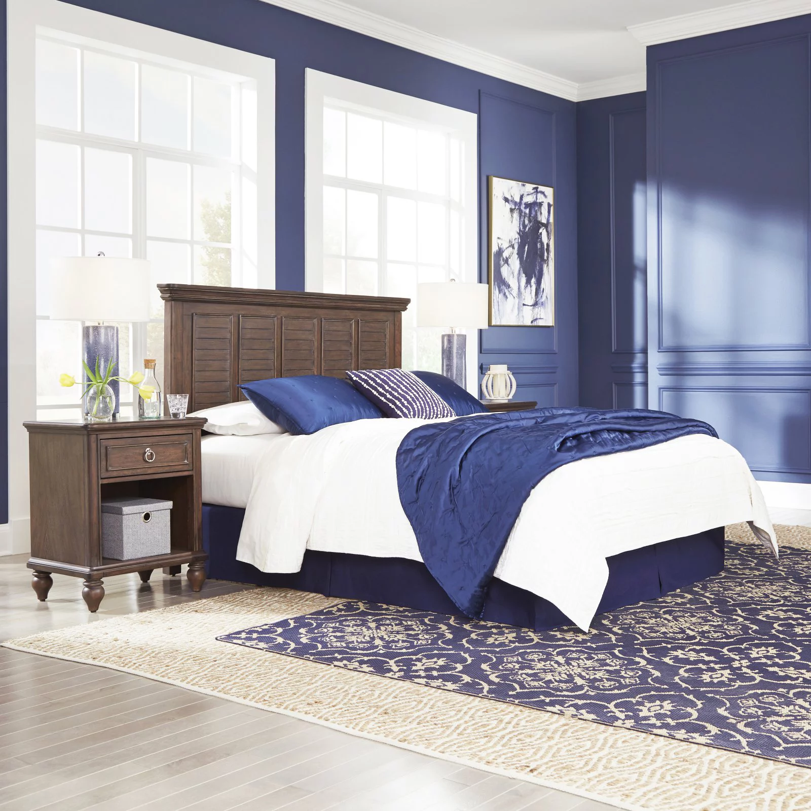 AFI Oxford Farmhouse Wood Panel Headboard with 2 USB Ports, Queen, Espresso