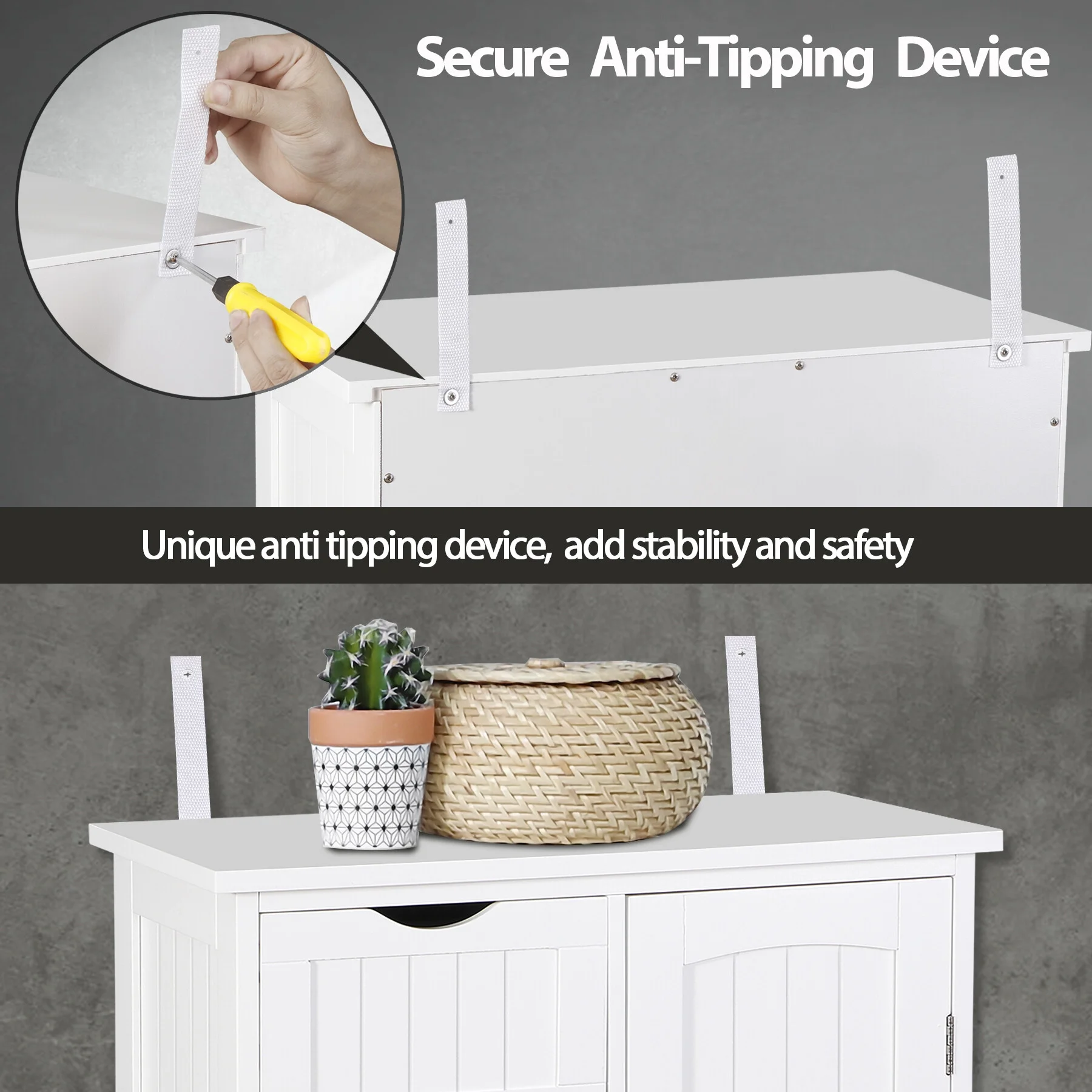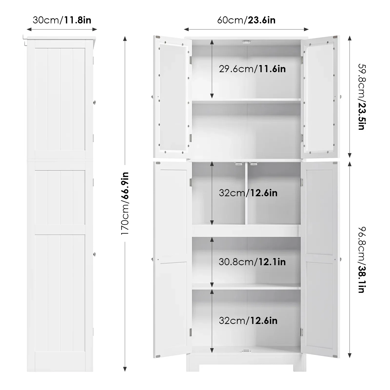 Homfa 67" Tall Bathroom Cabinet, White Linen Cabinet with Doors and Removable Drawers, Kitchen Cupboard