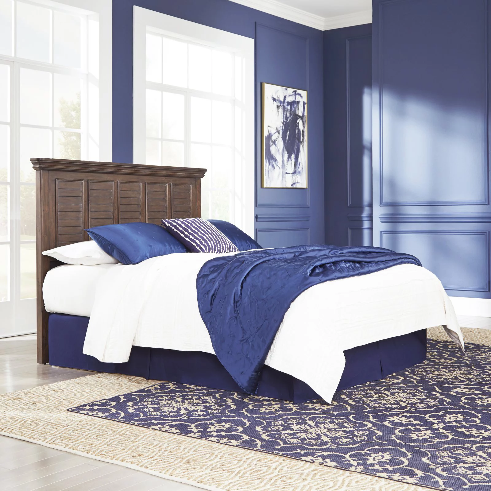 Baxton Studio Akemi Contemporary/Modern Slat Back Support Engineered Wood Headboard, Queen, Ash Walnut