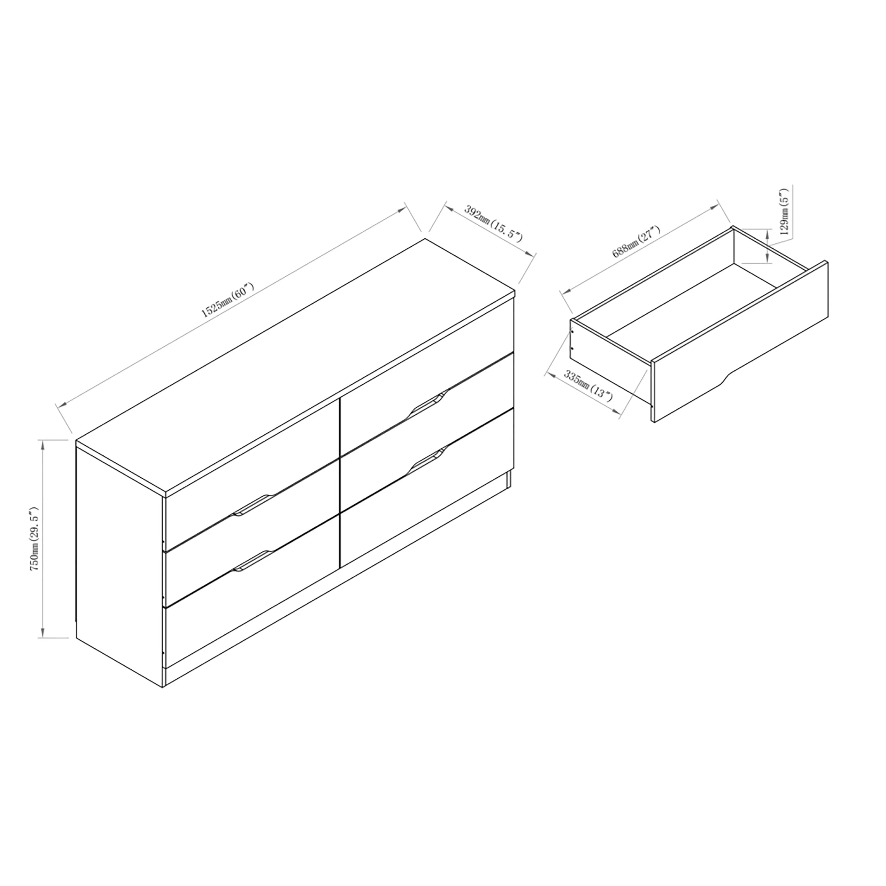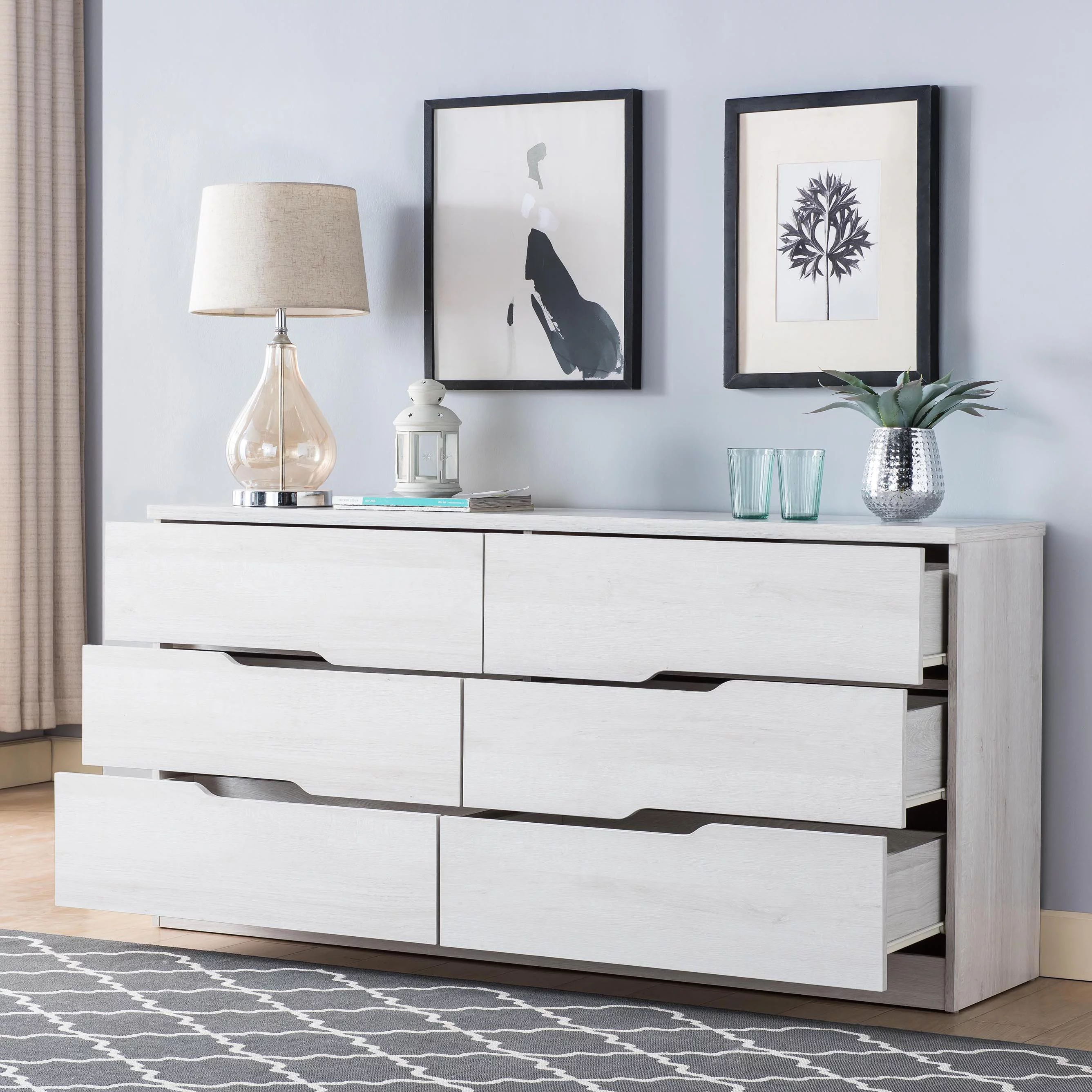 Bigroof Dresser for Bedroom, Storage Organizer 6 Drawer Dresser for Bedroom Hallway, Sturdy Steel Frame Wood Top