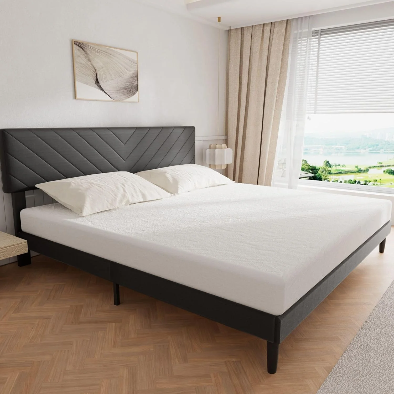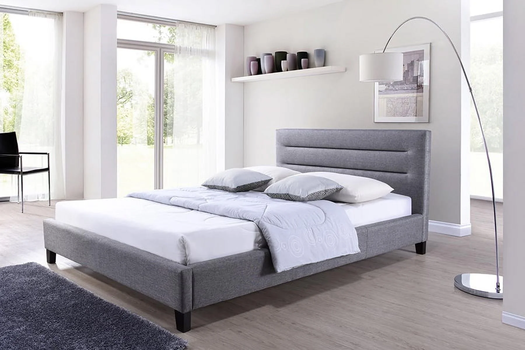 Baxton Studio Hillary Modern and Contemporary Grey Fabric Upholstered Platform Base Bed Frame, multipl sizes