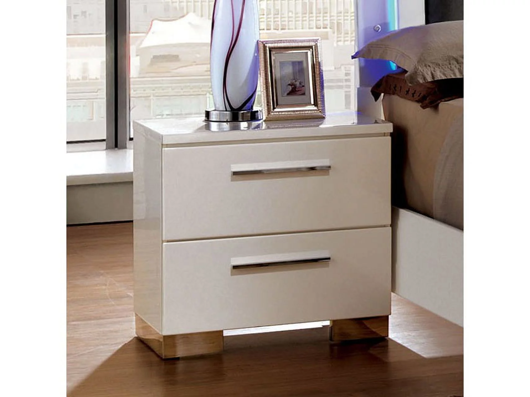 Home Square 2 Piece Bedroom Set with 2 Two Drawer Nightstands in High Gloss