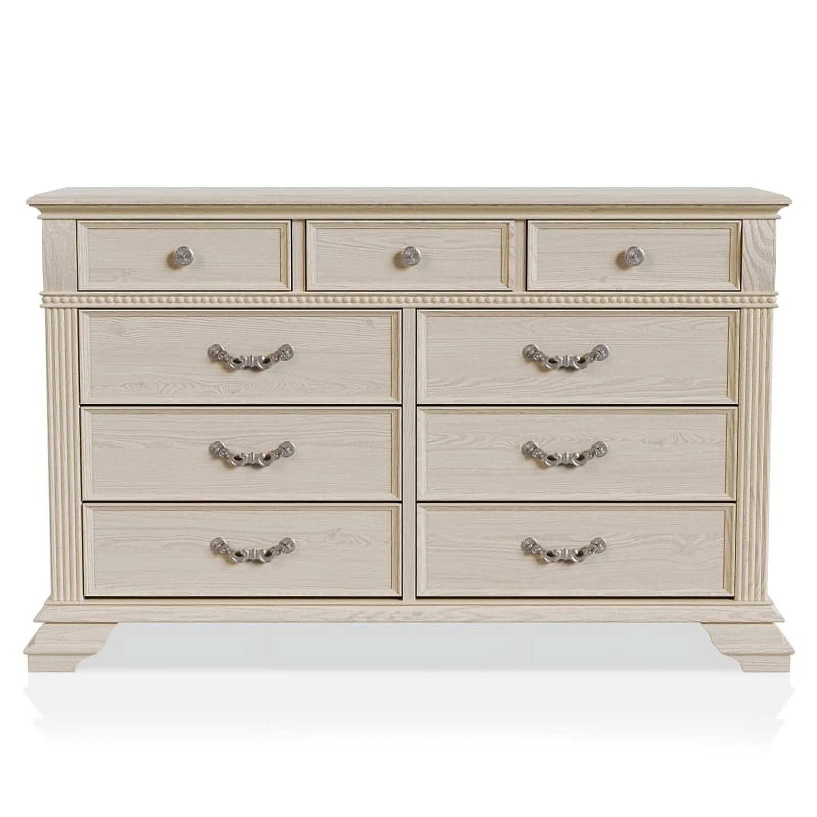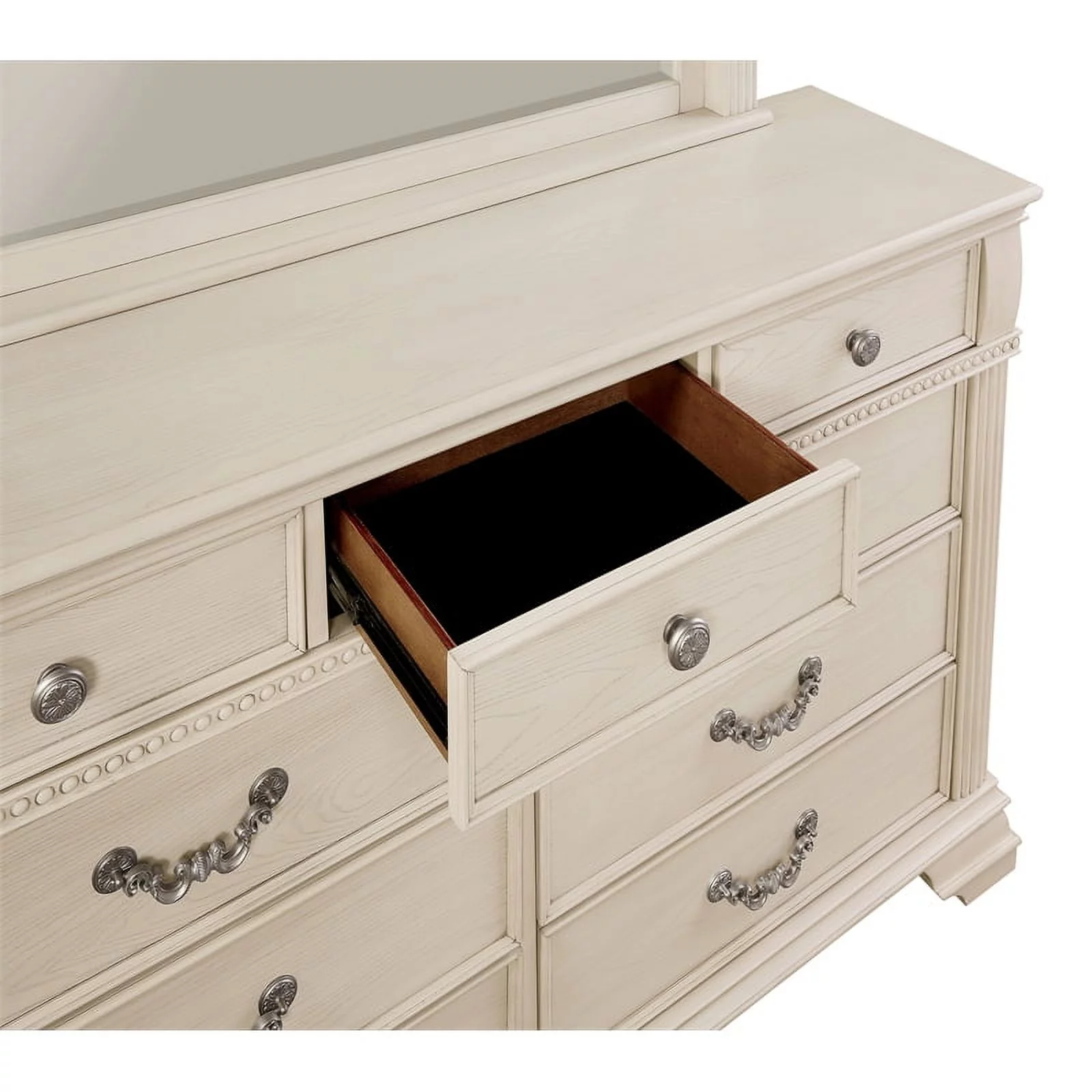 Pantego 4PC E King Bed, Nightstand, Dresser & Mirror Set in White Mahogany