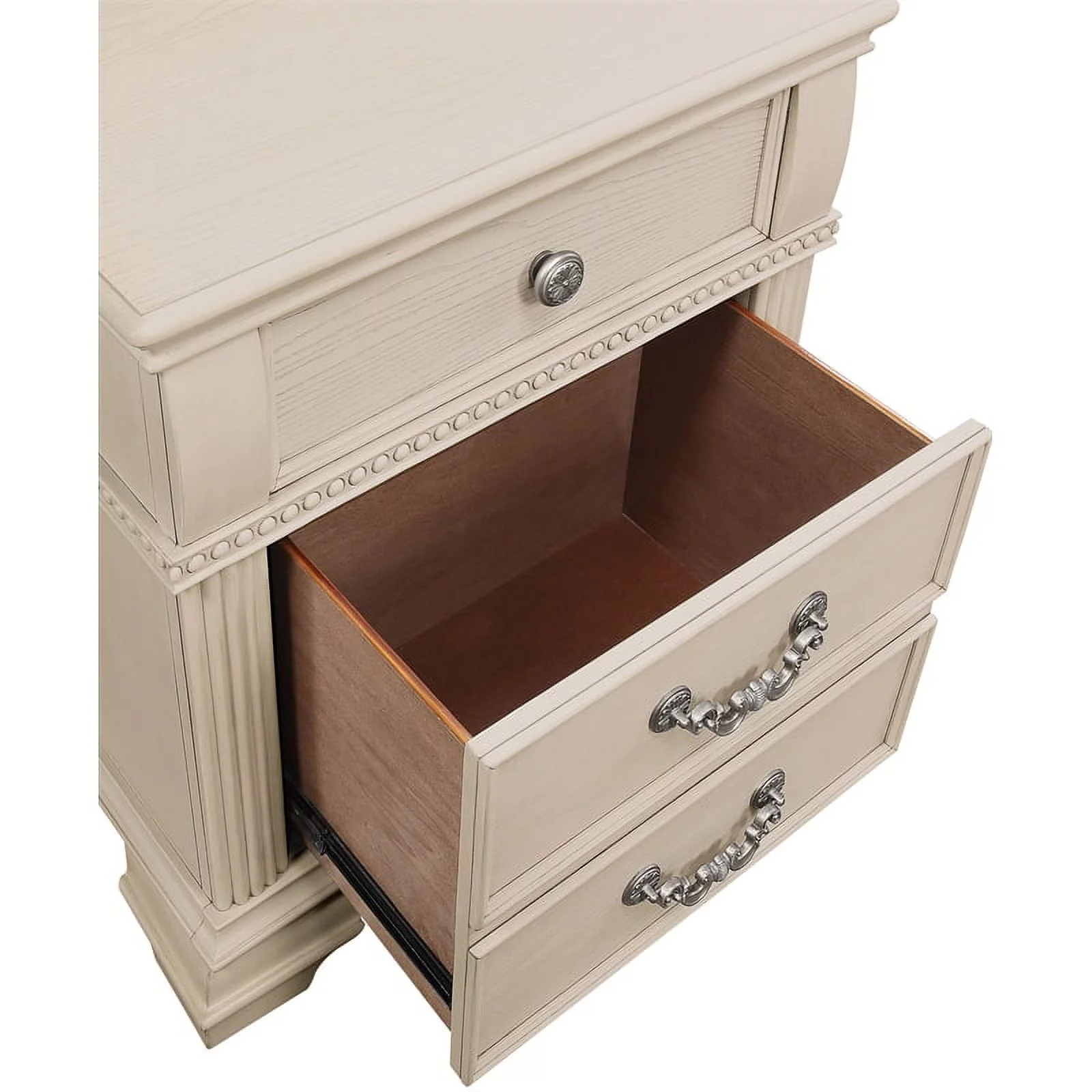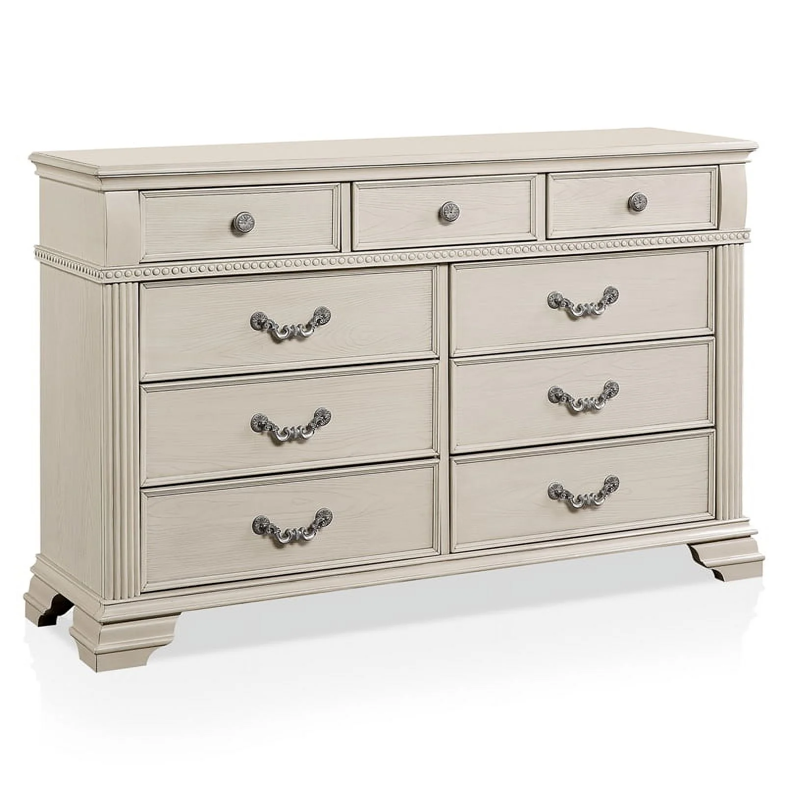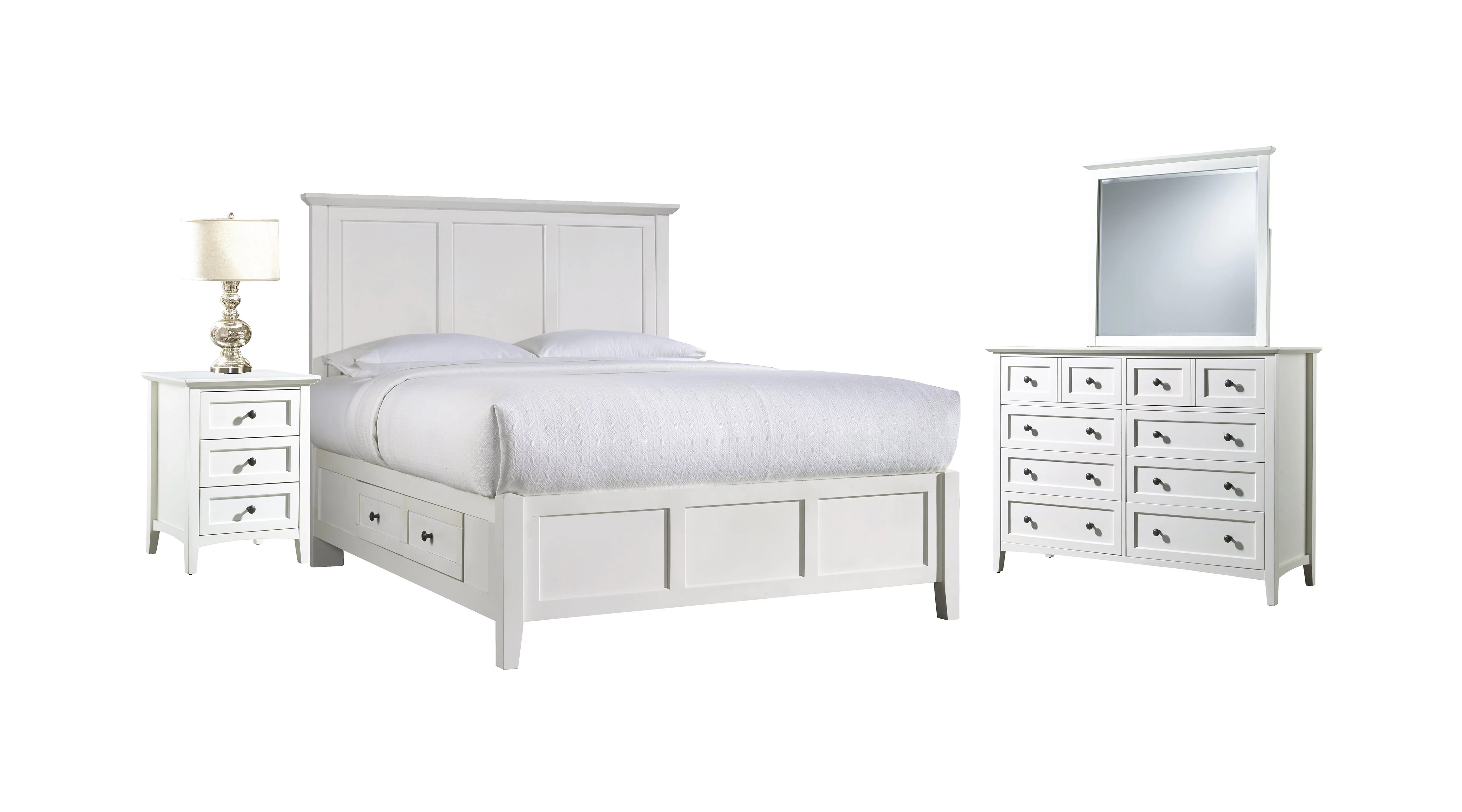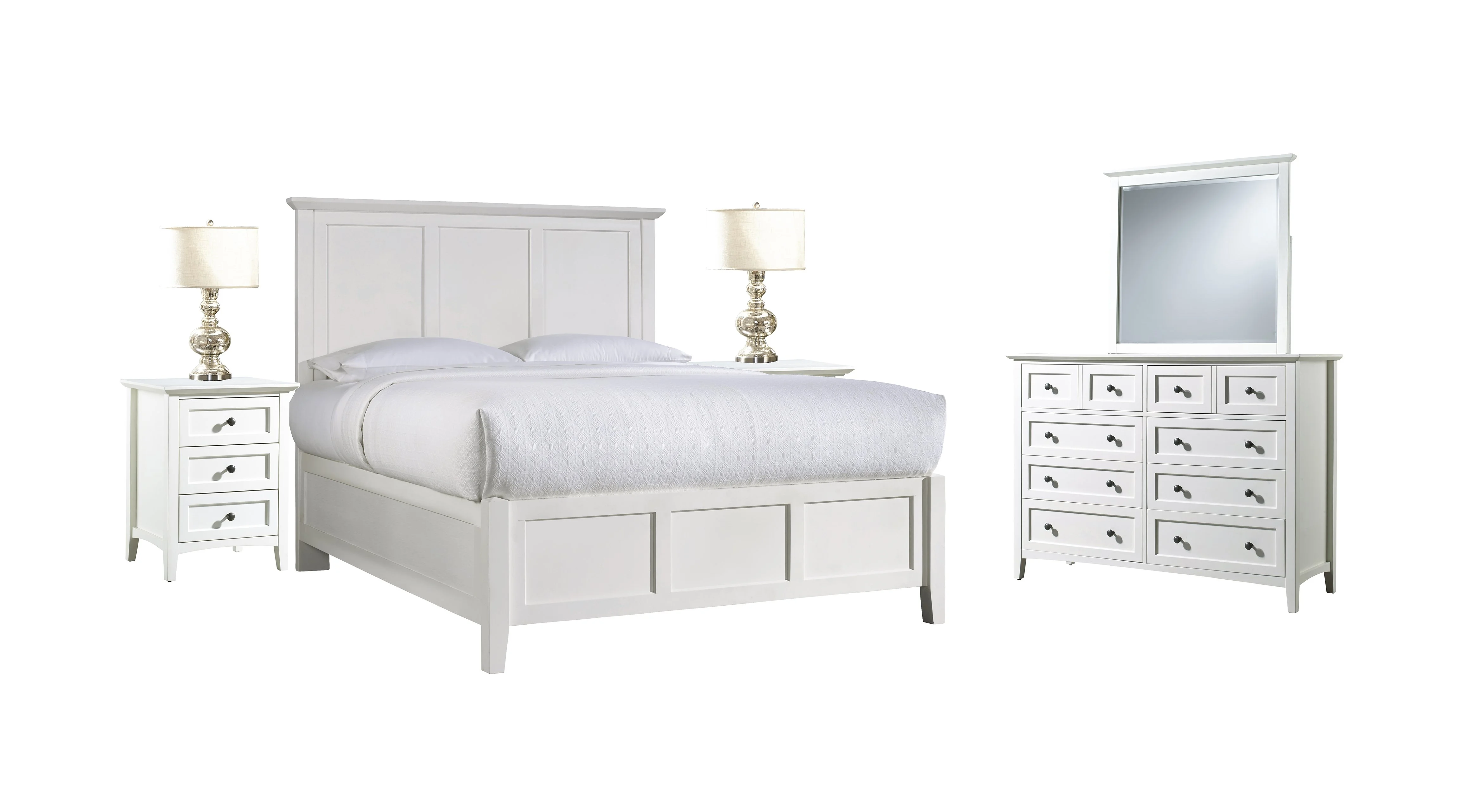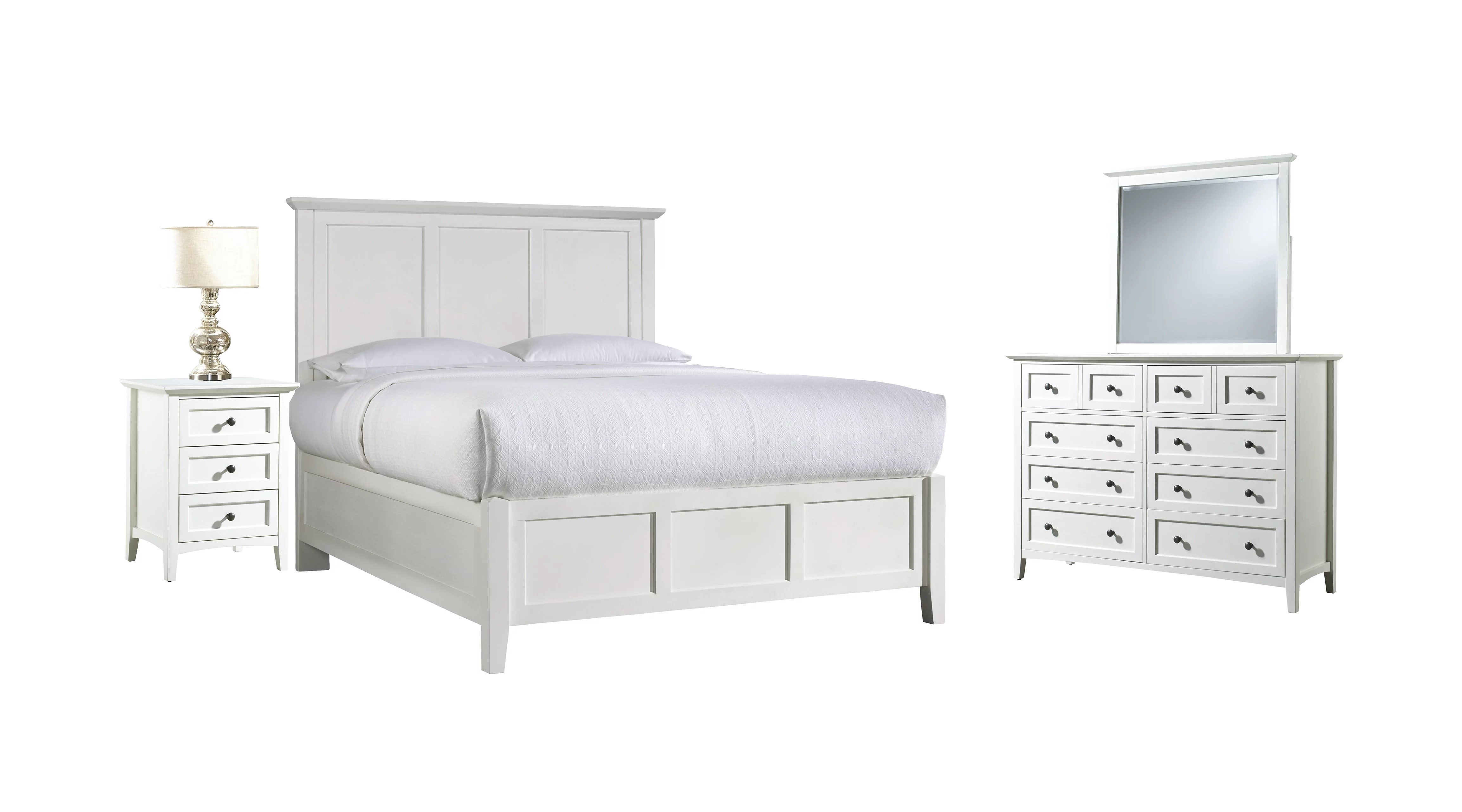 Pantego 4PC Full Bed, Nightstand, Dresser & Mirror Set in White Mahogany