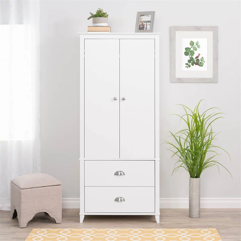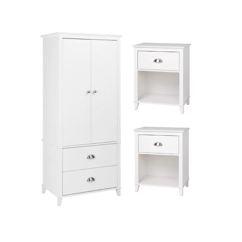 Home Square 3-Piece Set with 2 1-Drawer Nightstands & Wardrobe Armoire in White