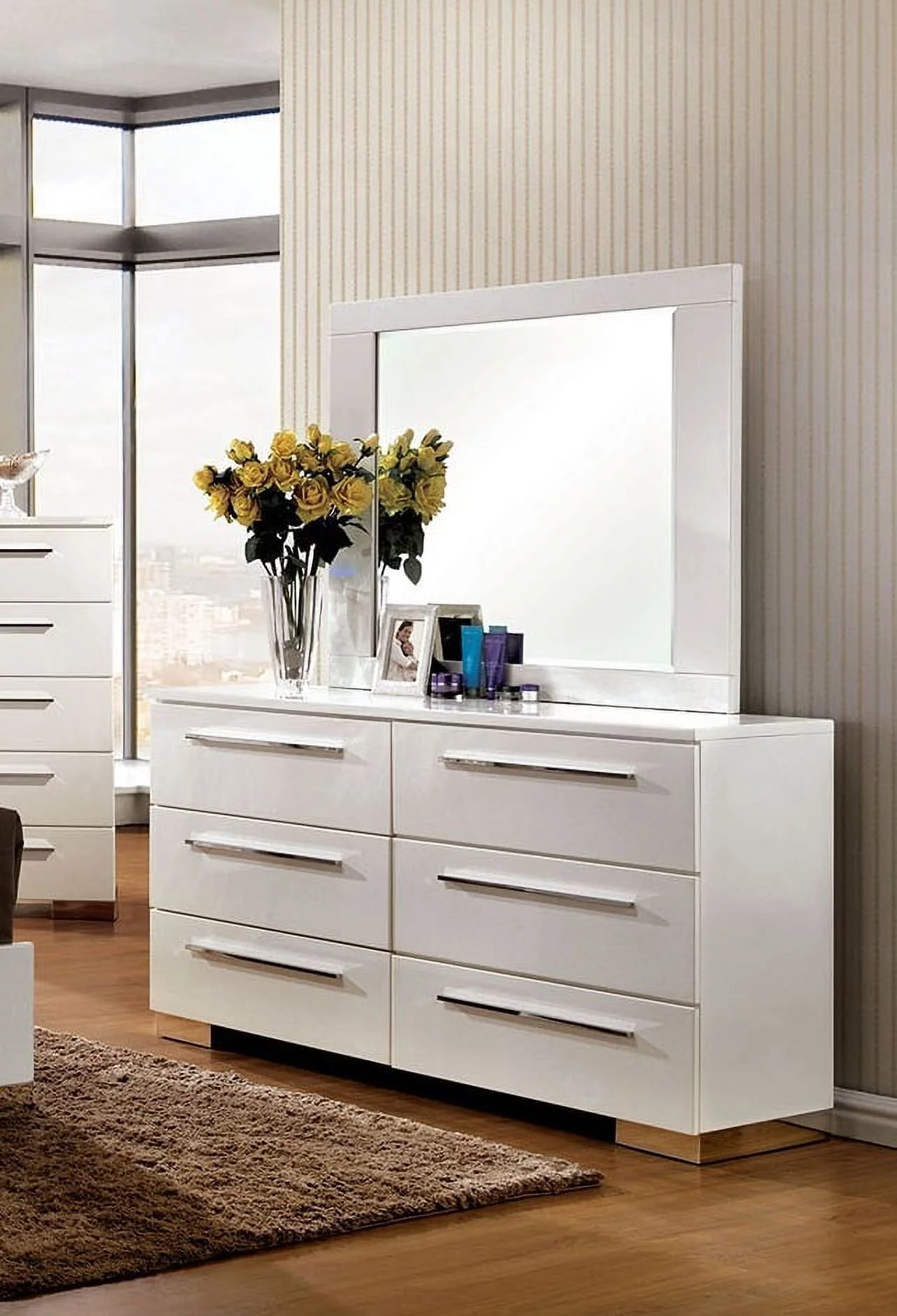 FOA Charo 5pc White Wood Bedroom Set-Cal King + 2 Nightstands + Dresser + Mirror