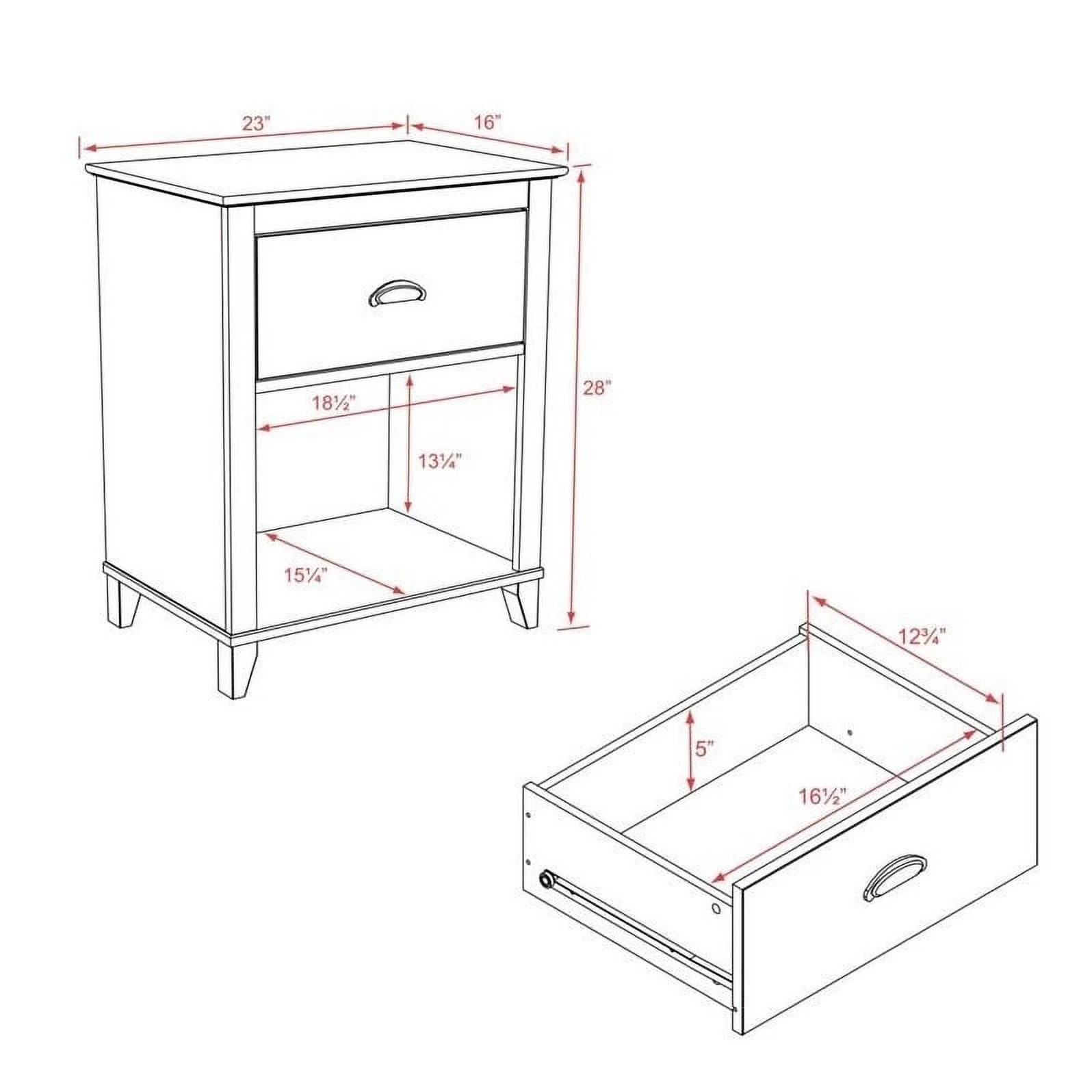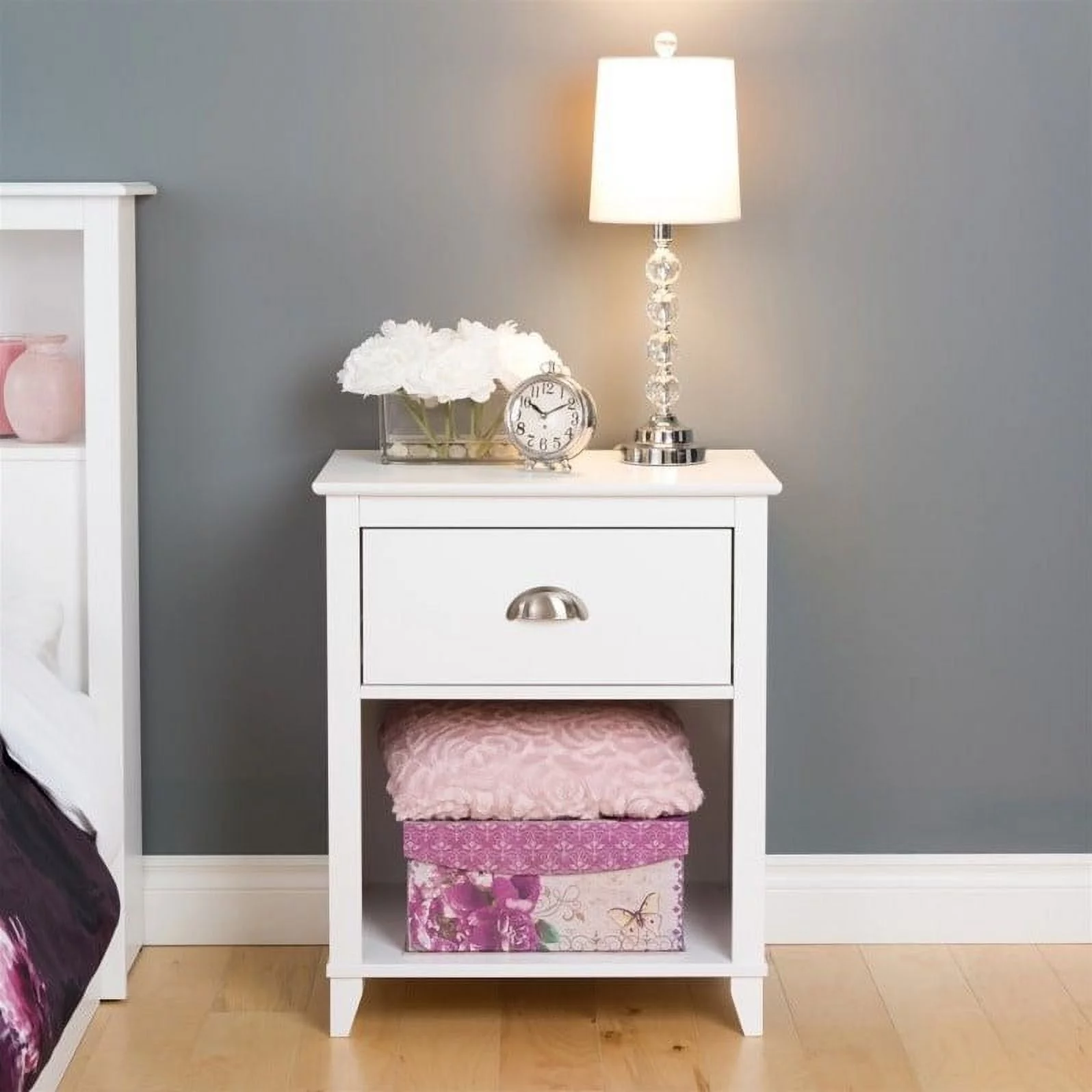 Home Square 2 Piece Bedroom Set with Two 1 Drawer Wood Nightstand in White