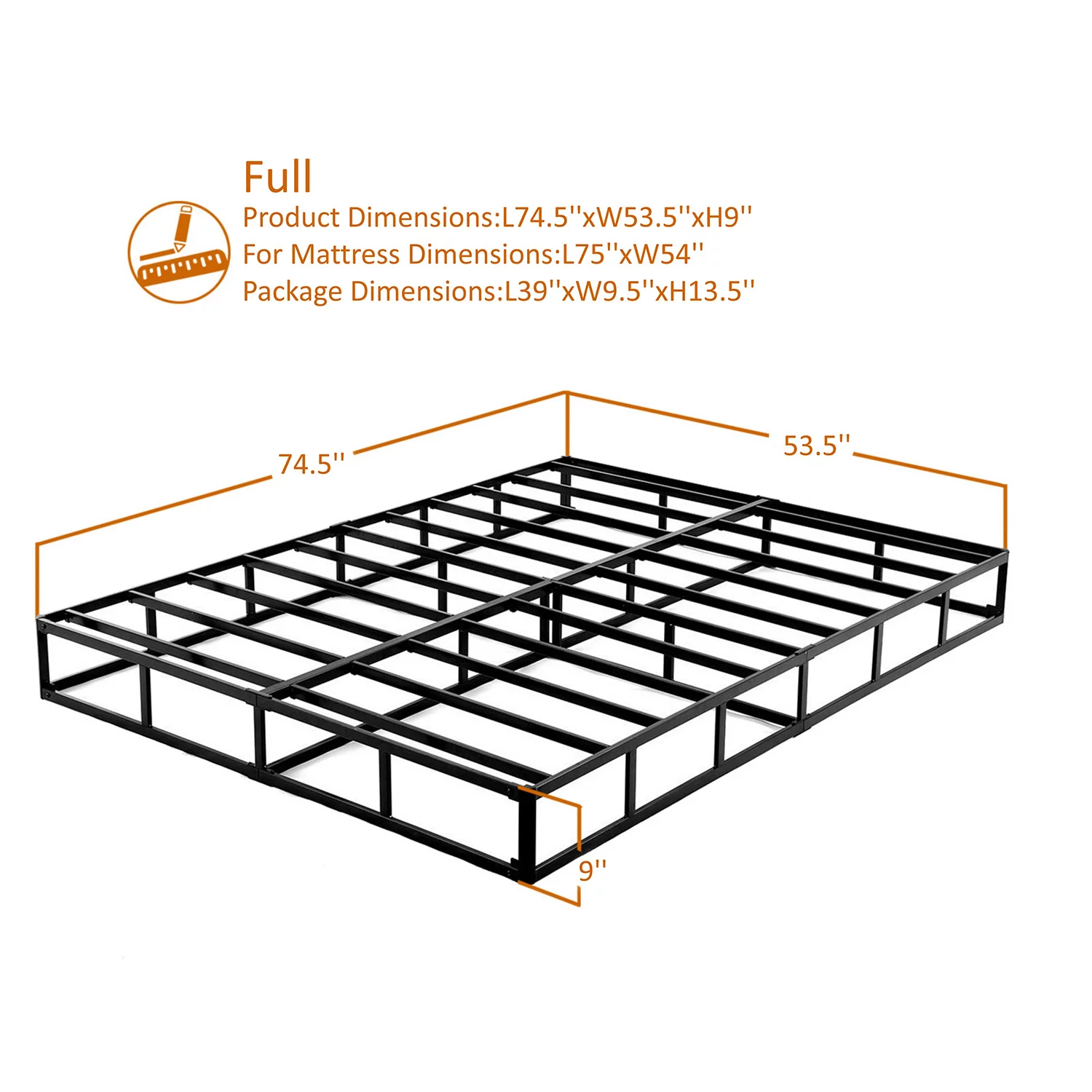 QFTIME 9" Metal Full Box Spring, Mattress Foundation, Heavy-Duty, Easy Assembly (Box Spring Only)