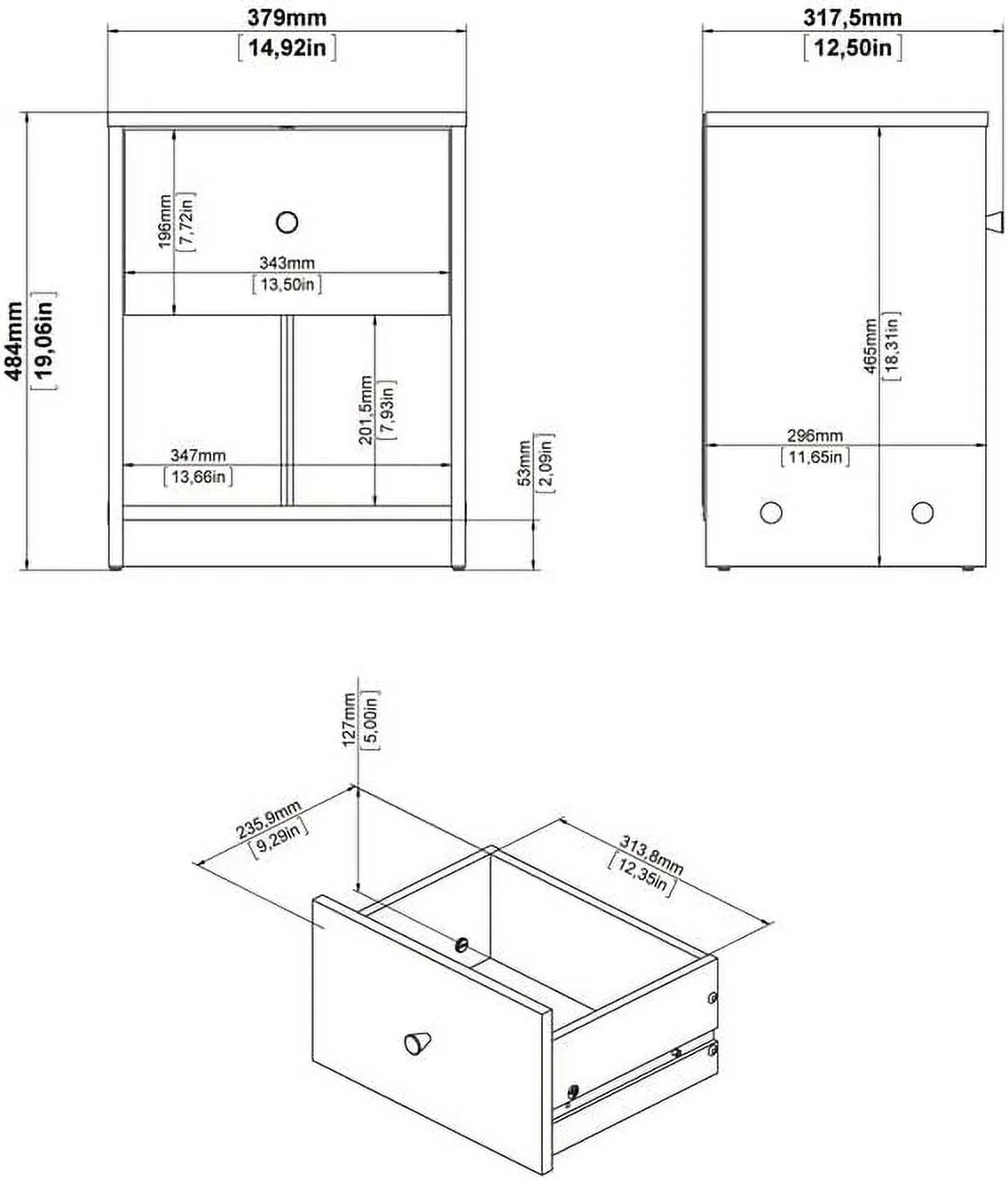 Home Square 2 Piece Bedroom Set with 2 One Drawer Nightstands in White