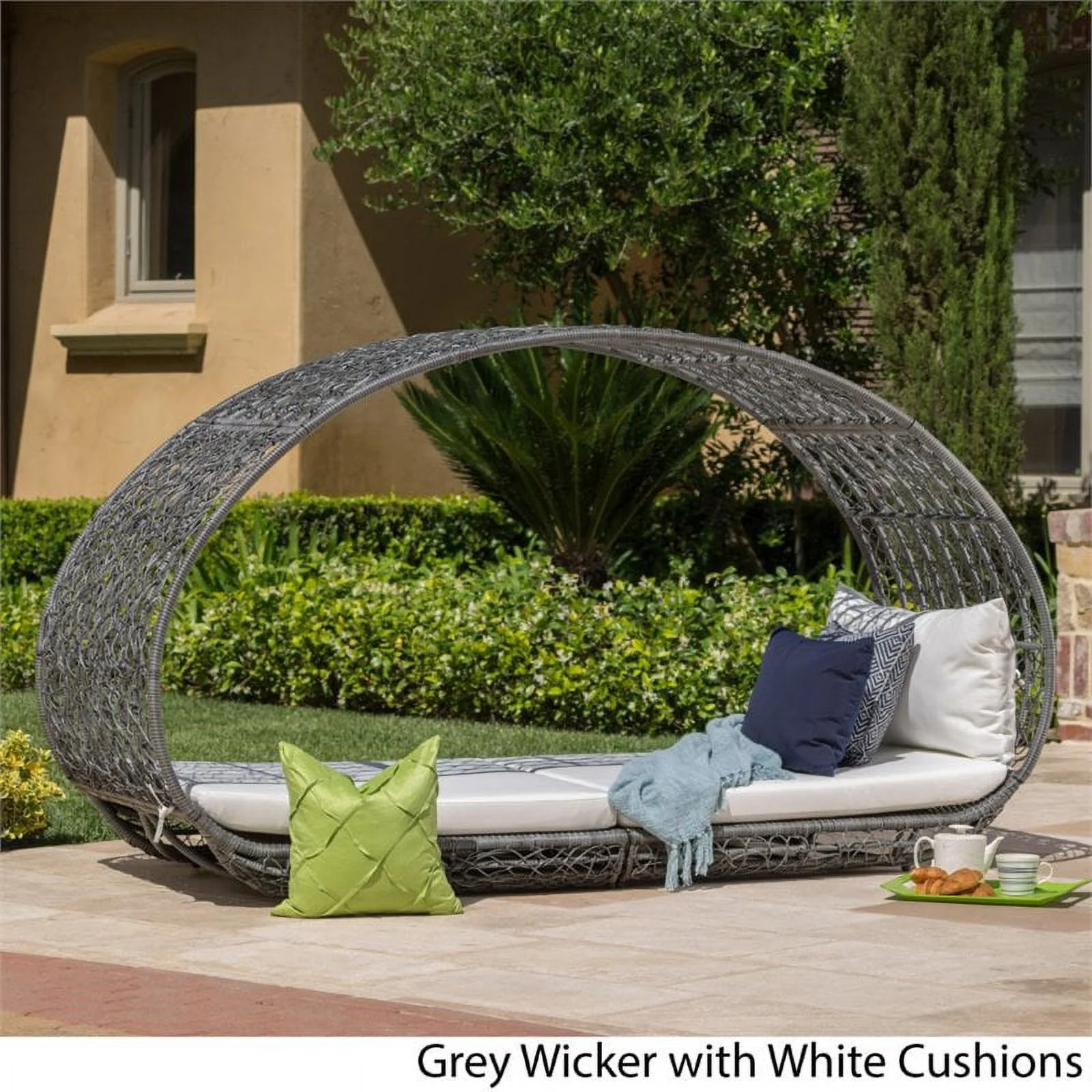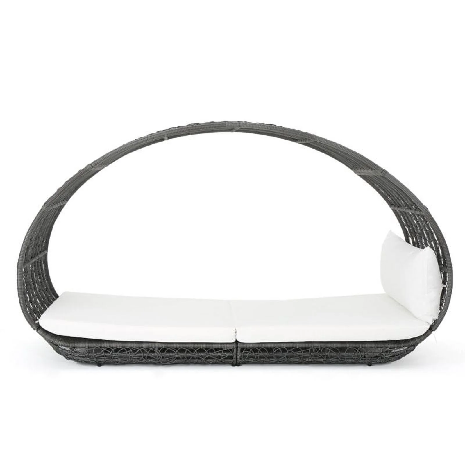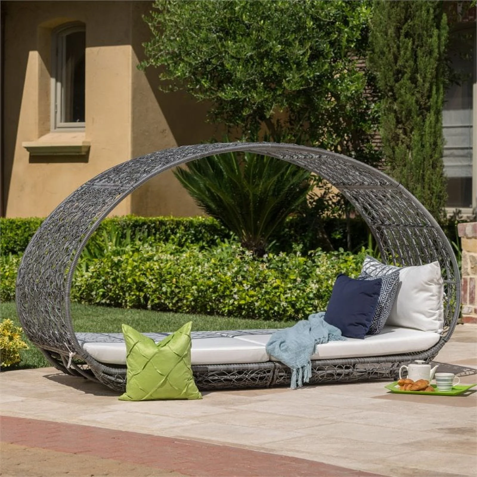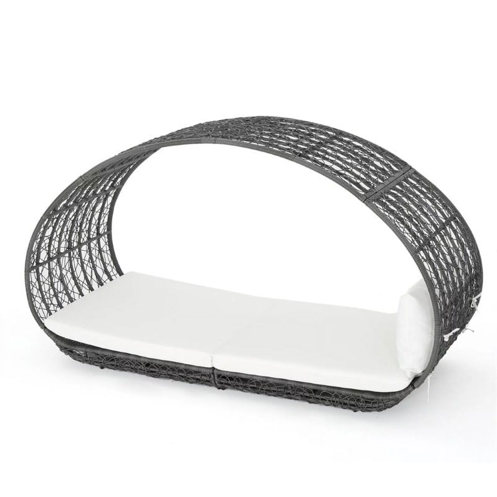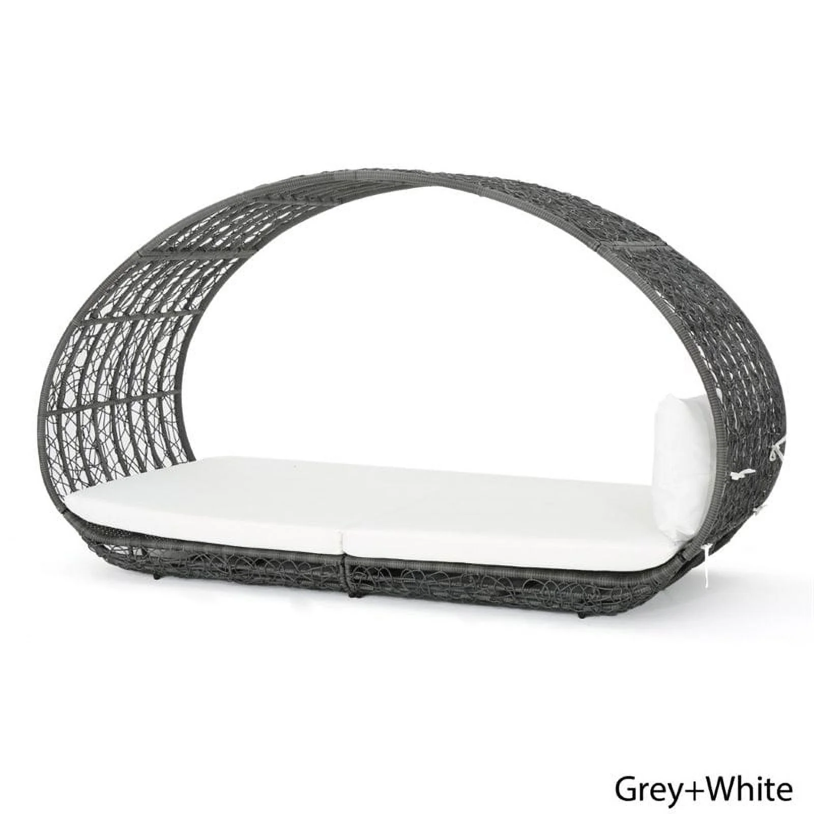 2 Piece Patio Canopy Daybed Set In Beige Fabric And Gray Wicker - Synthetic Wicker, Aluminum, Polyester, Foam