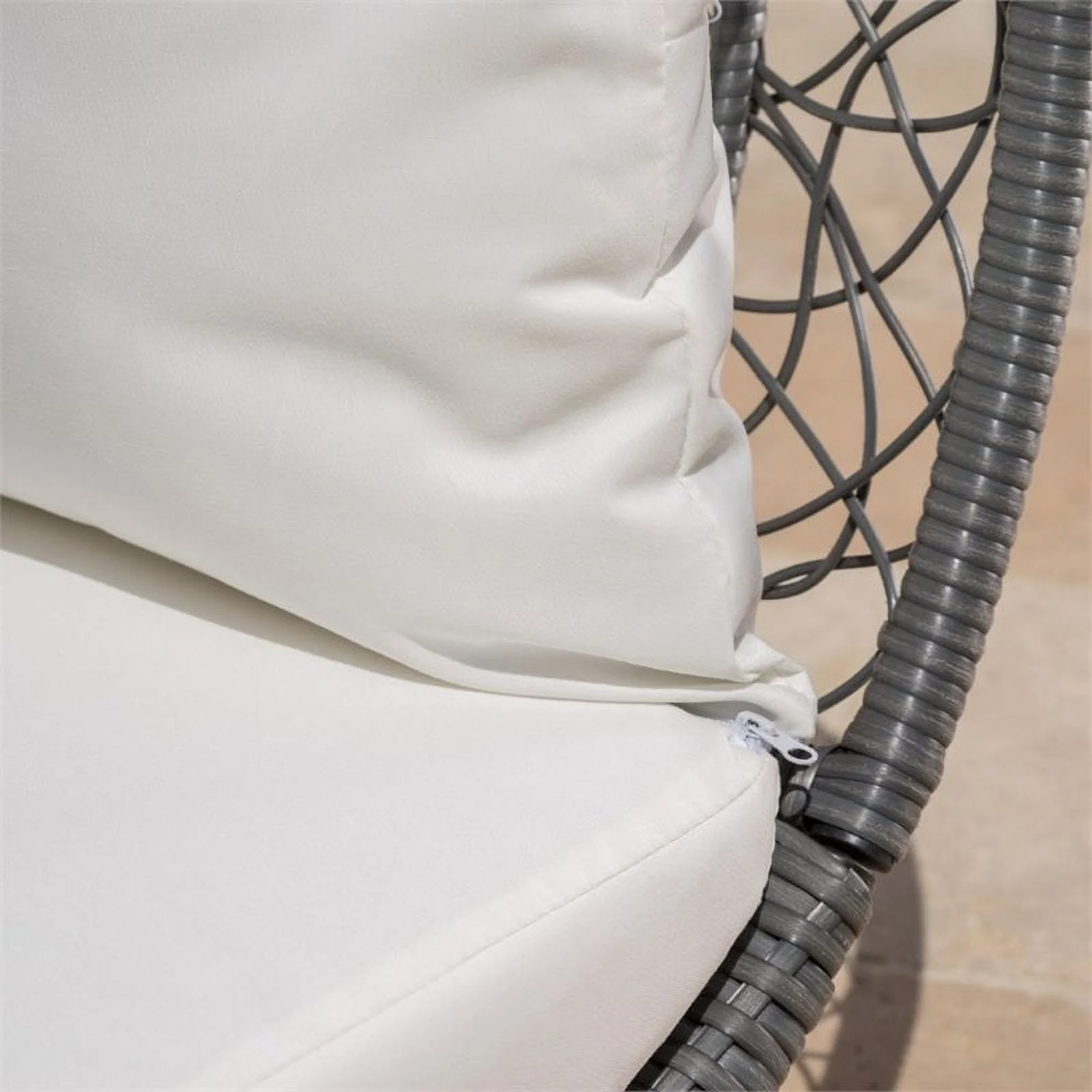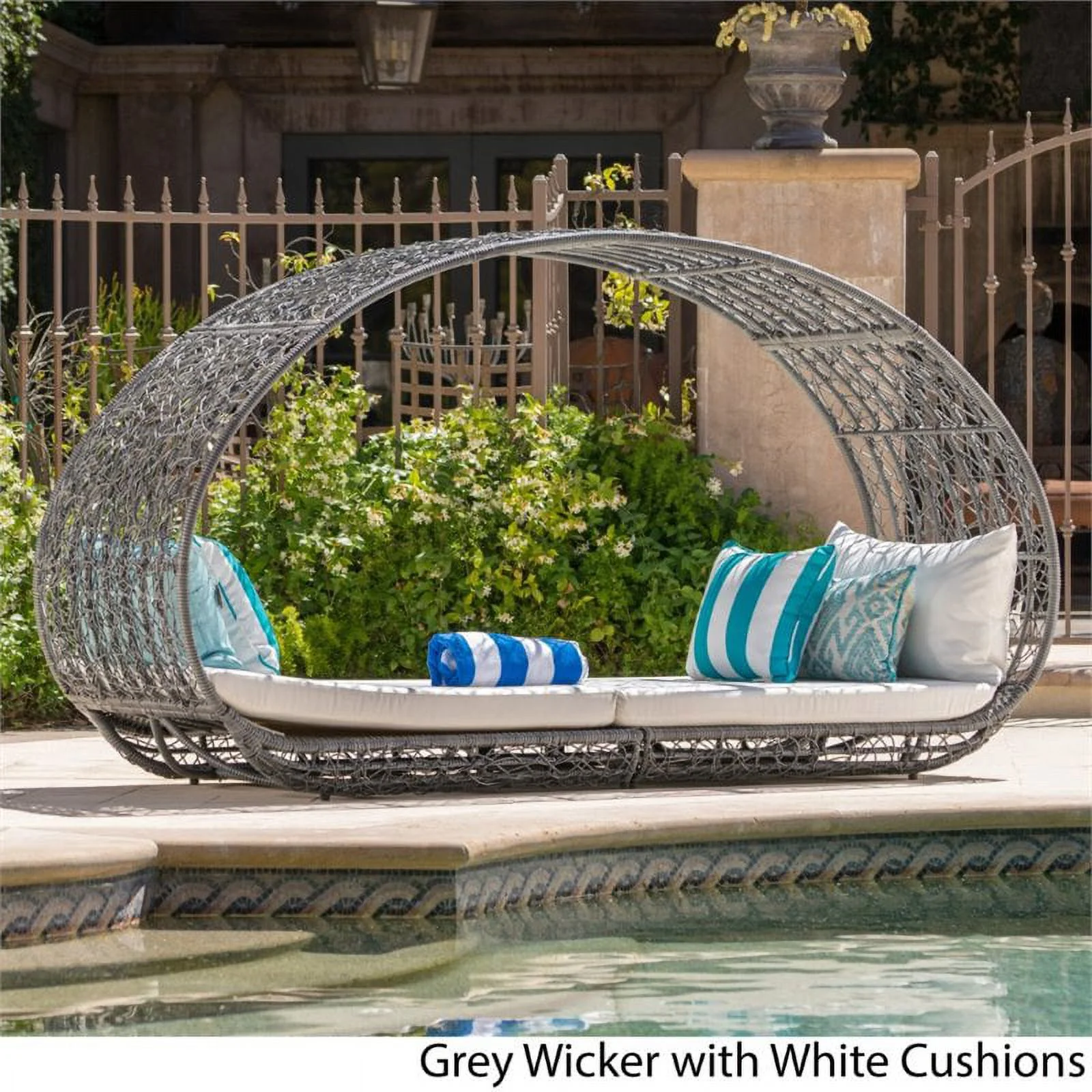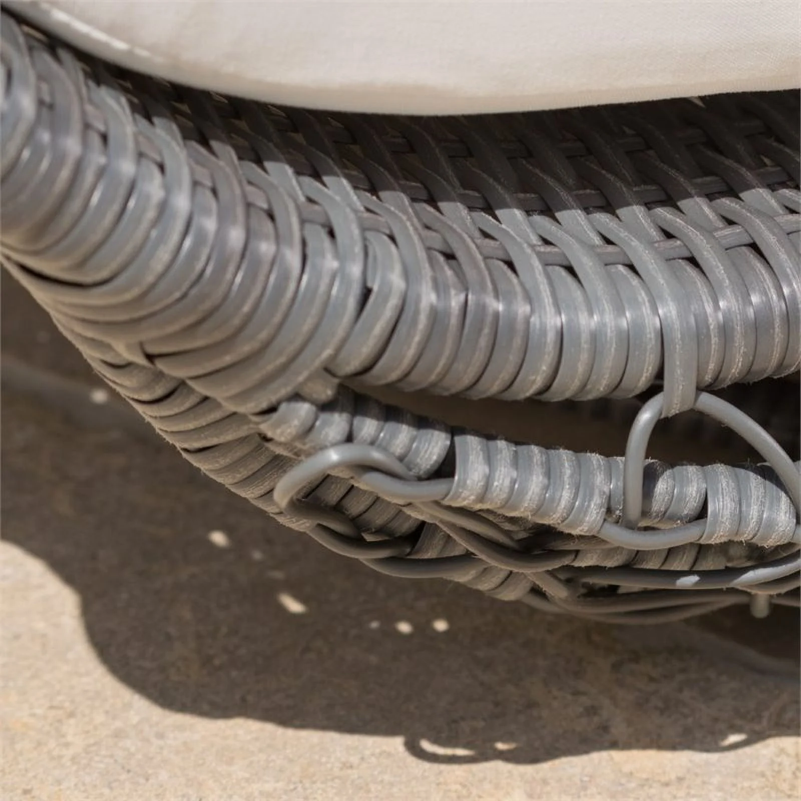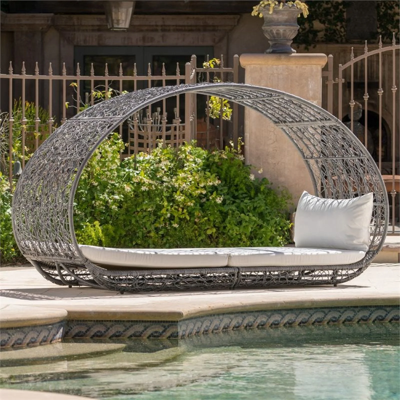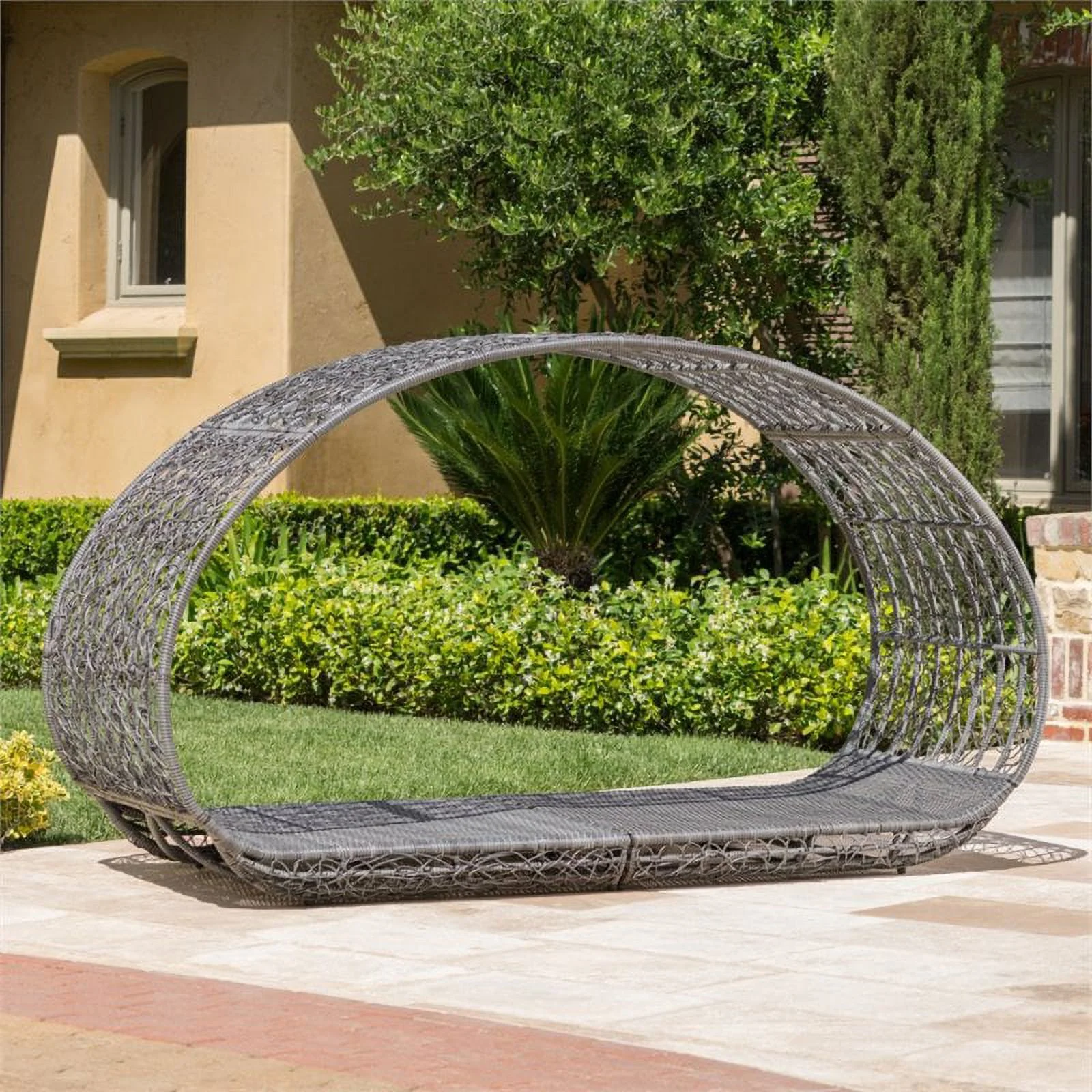 2 Piece Patio Canopy Daybed Set In Beige Fabric And Gray Wicker - Synthetic Wicker, Aluminum, Polyester, Foam