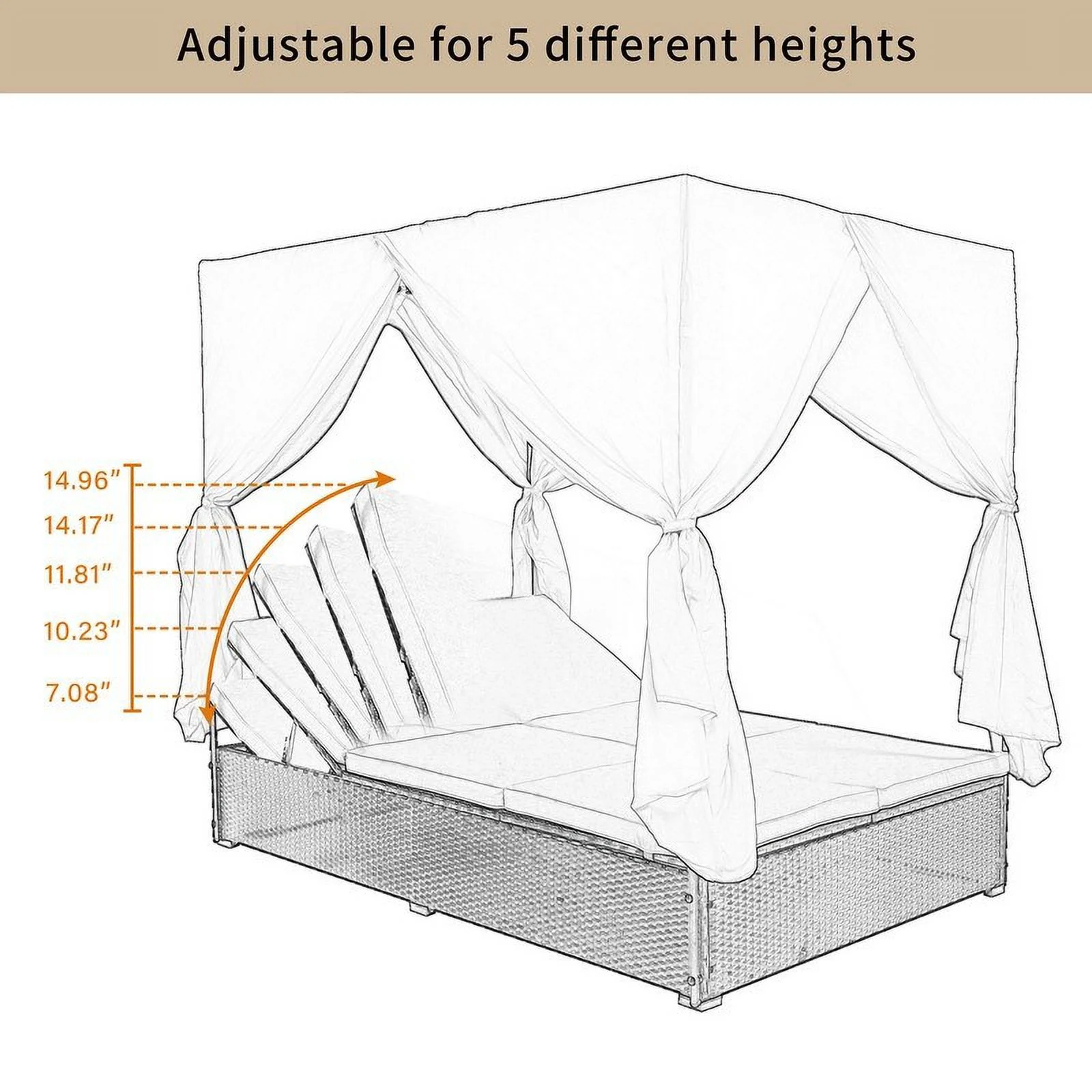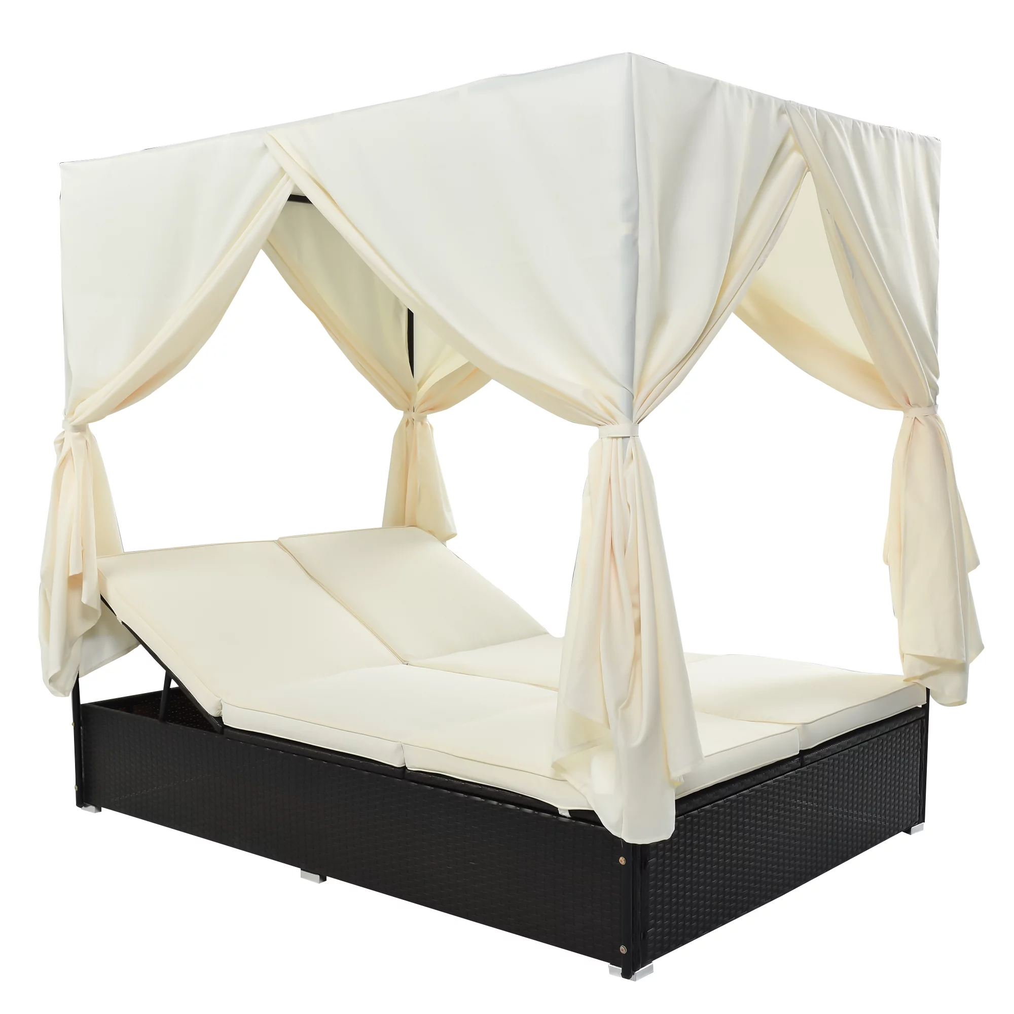 Adjustable Outdoor Wicker Sunbed Daybed with Cushions, Water-resistant Beige