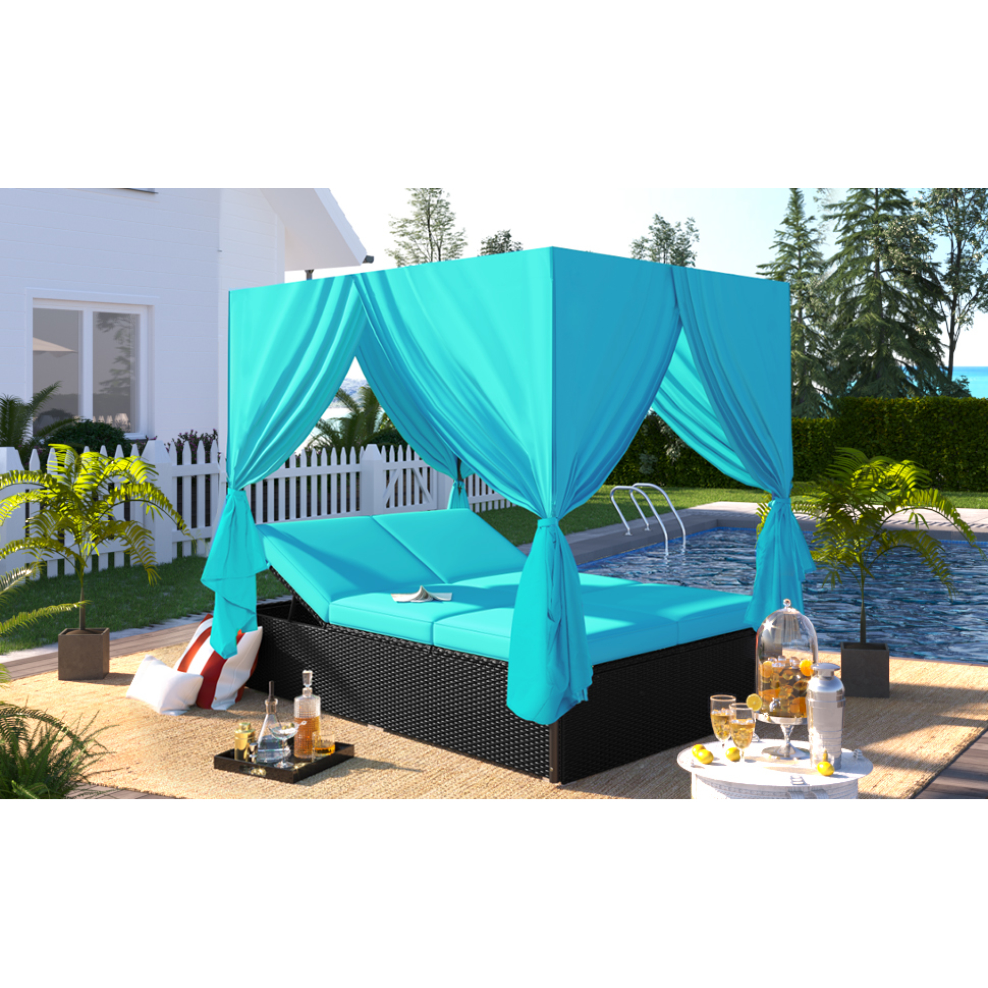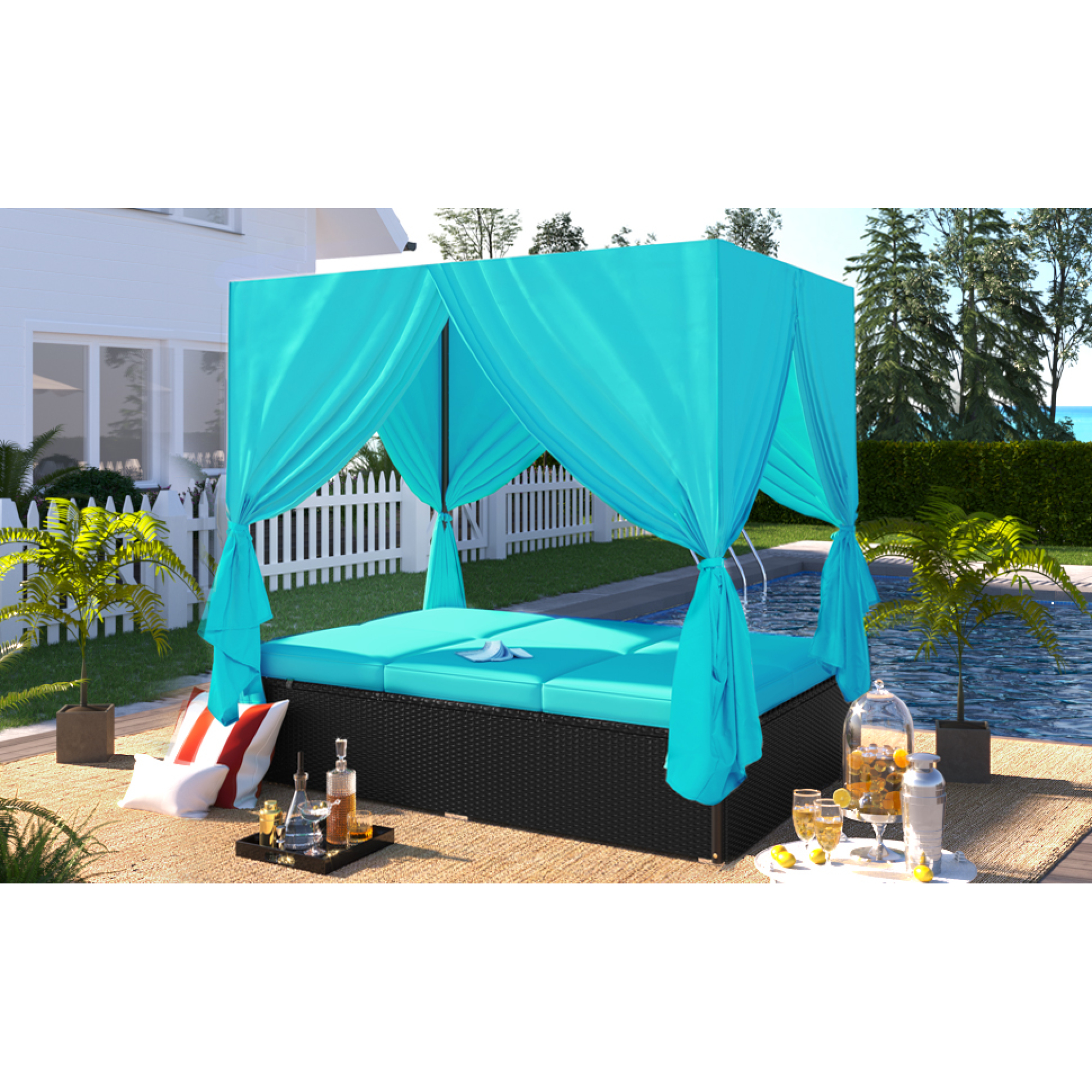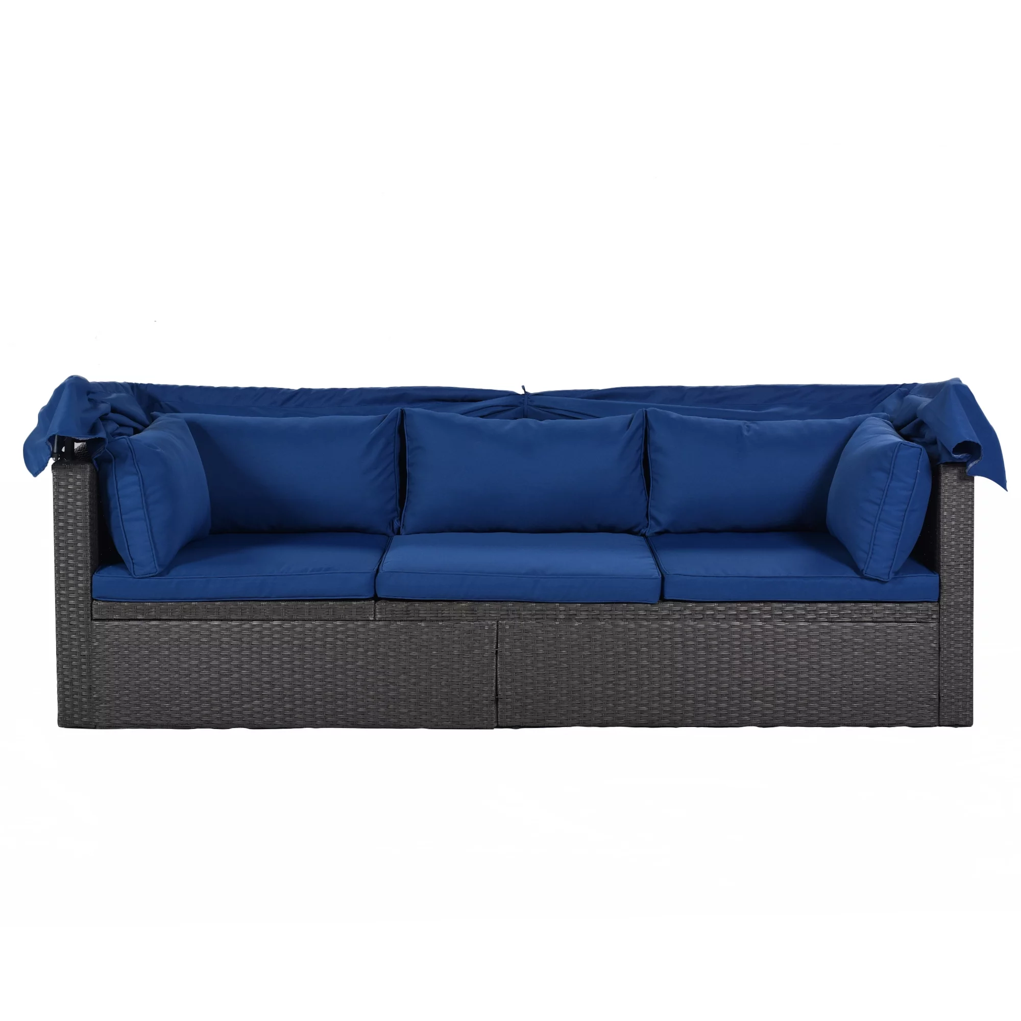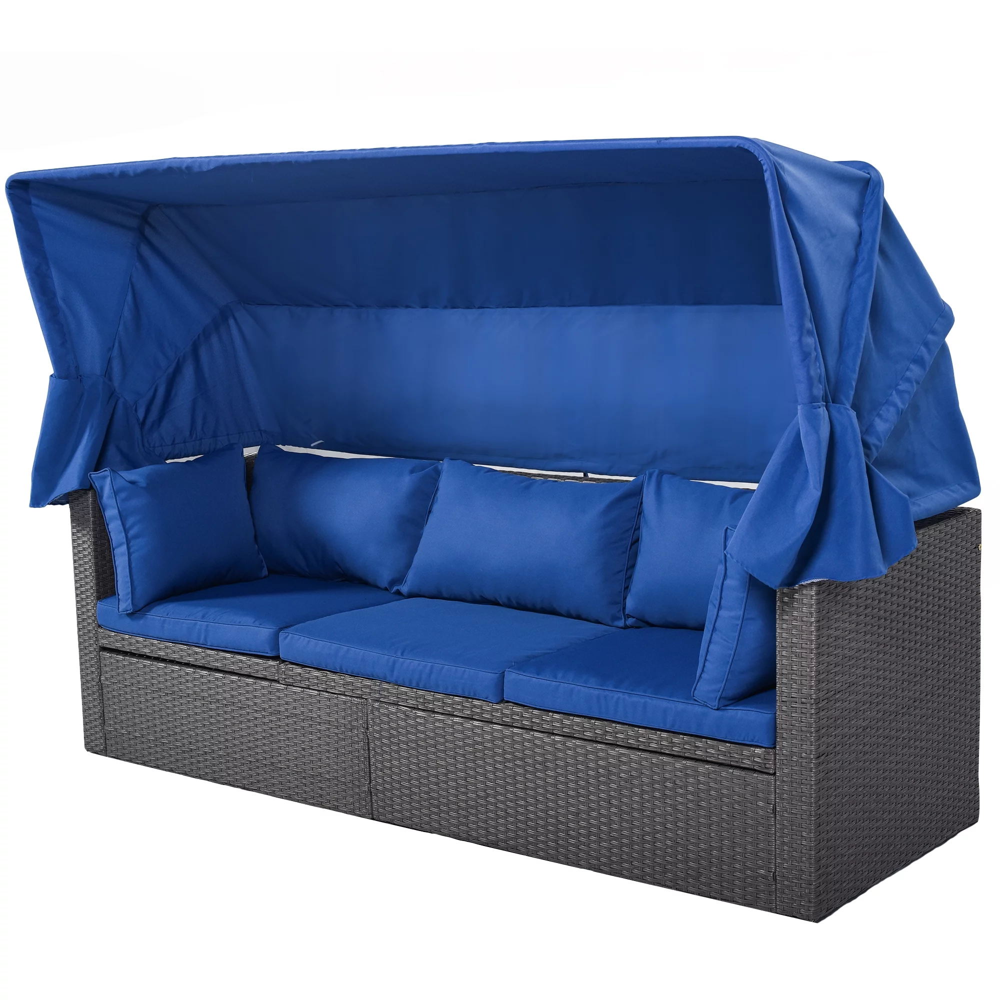 Outdoor Patio Conversation Set Wicker Furniture Daybed w/ Retractable Canopy Blue