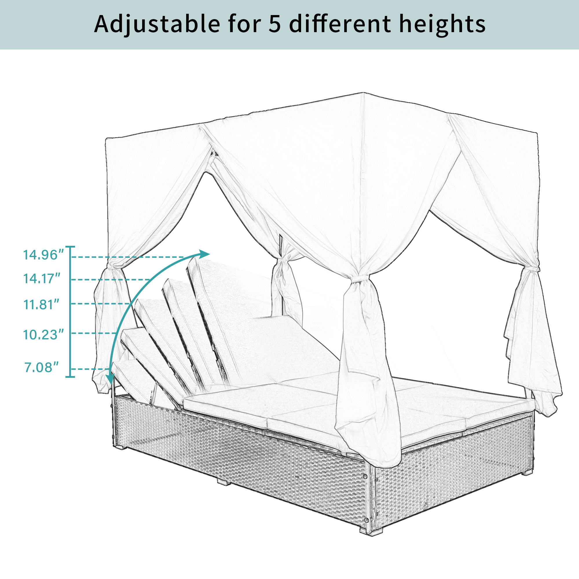 STYLE Outdoor Patio Wicker Sunbed Daybed with Cushions, Adjustable Seats