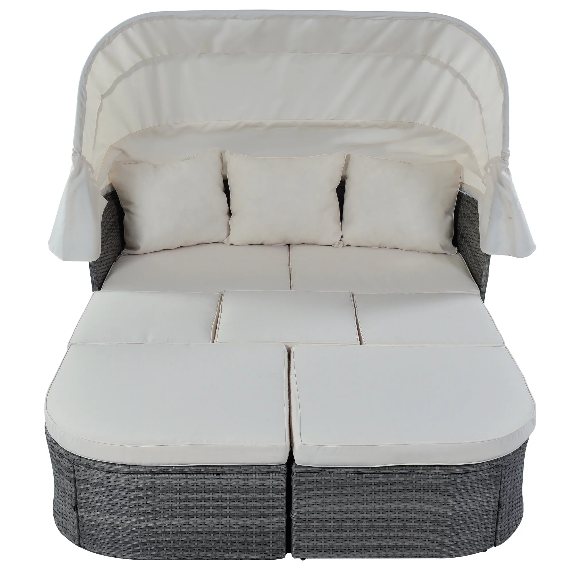 Outdoor Patio Furniture Set Daybed Sunbed with Retractable Canopy Conversation Set Wicker Furniture Sofa Set