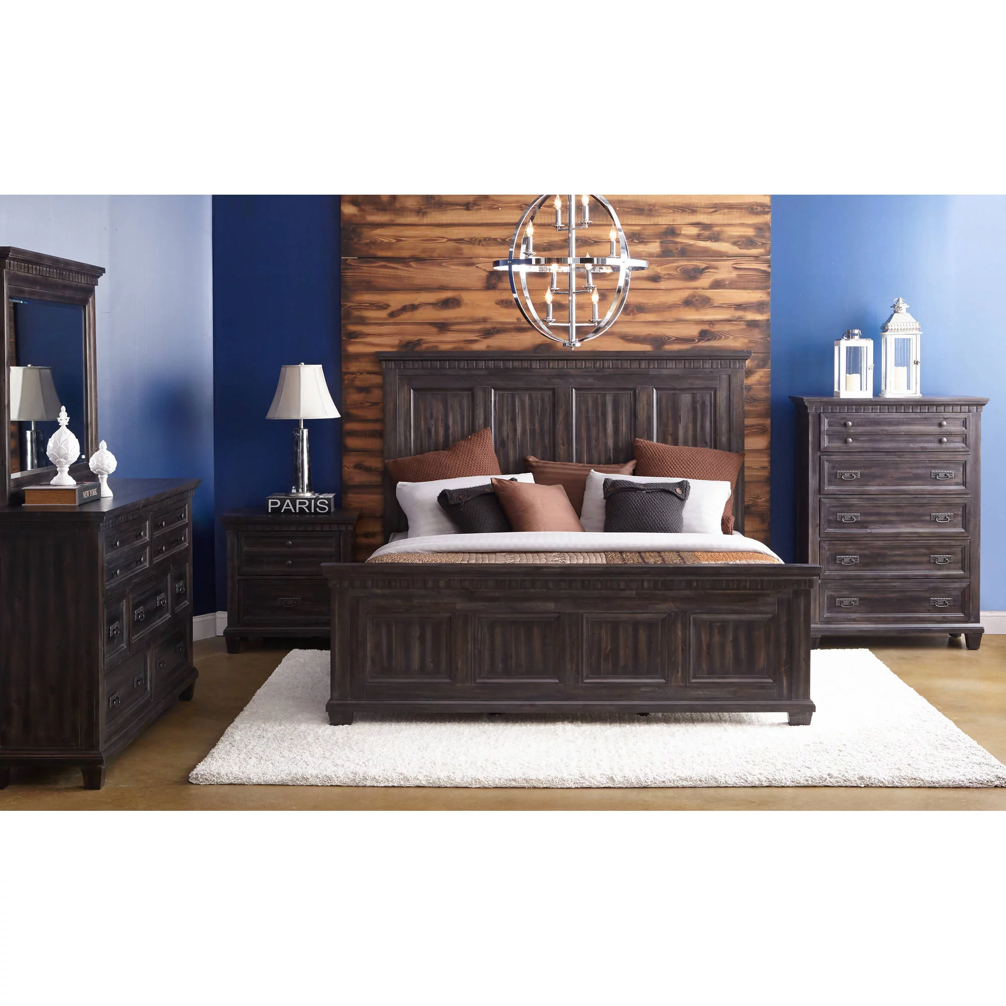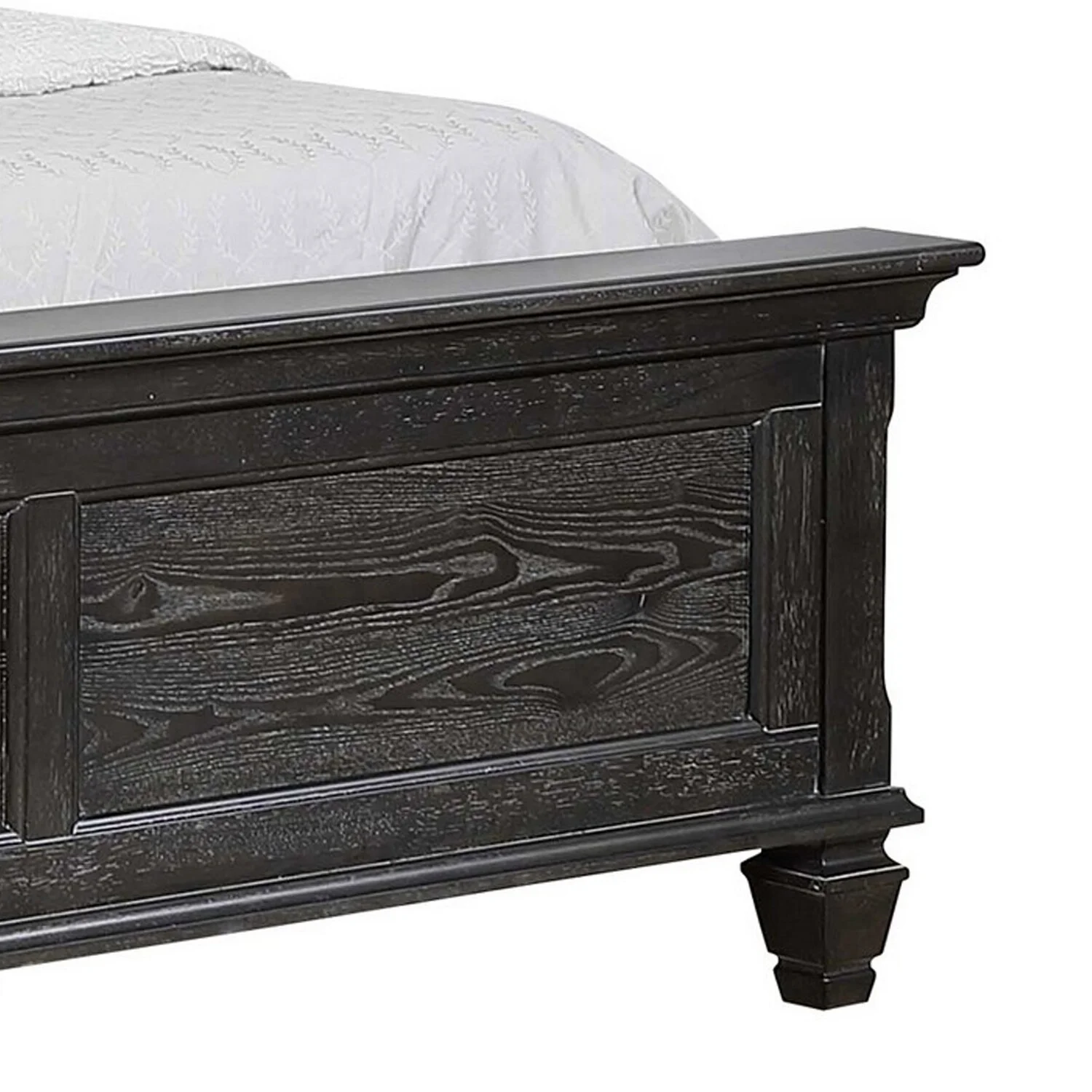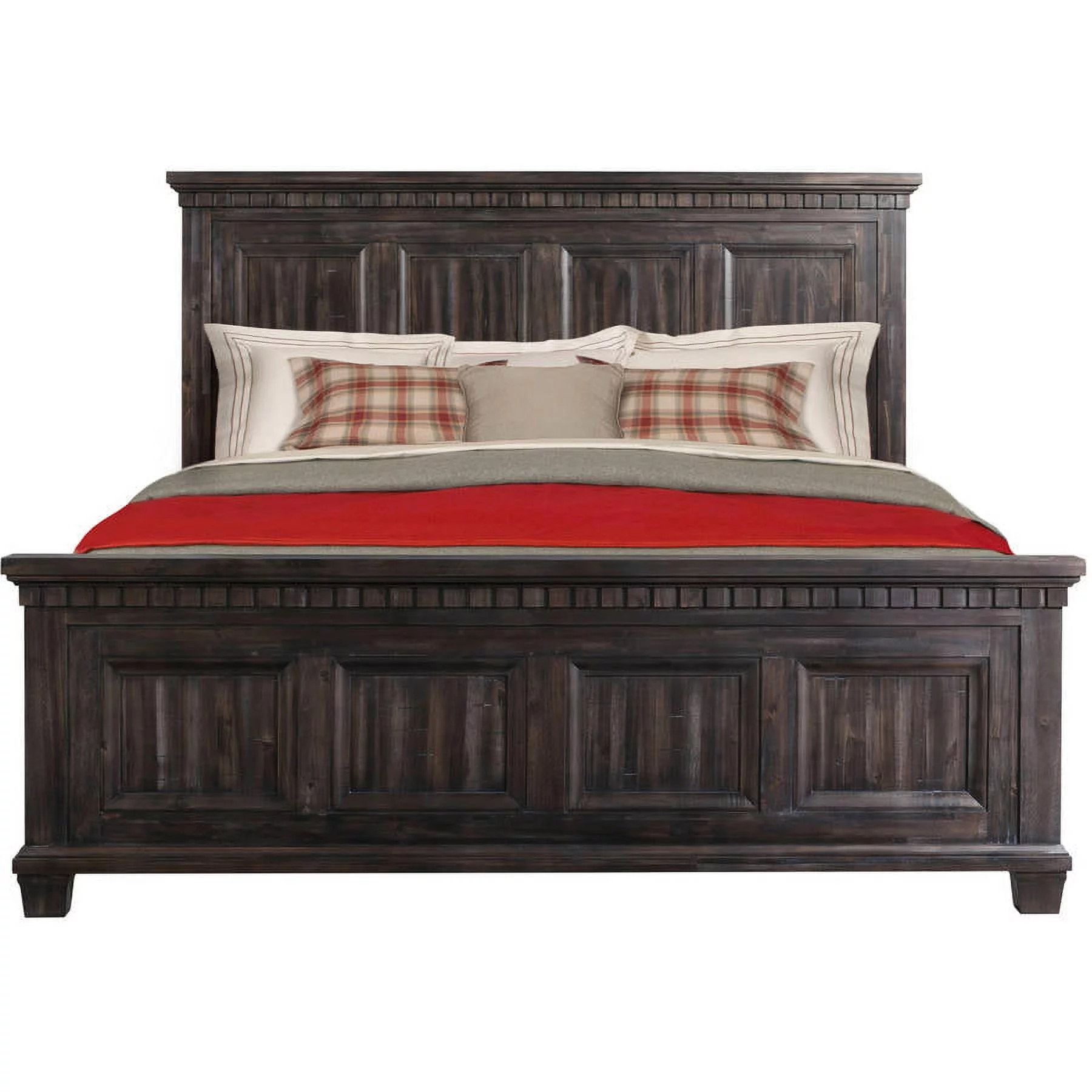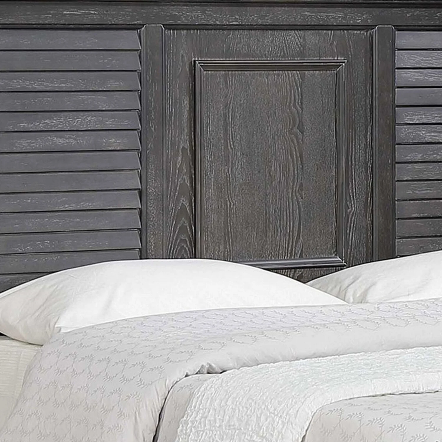 Benjara BM302886 Molded Trim Shutter Headboard Eli King Size Panel Bed, Weathered Gray Brown