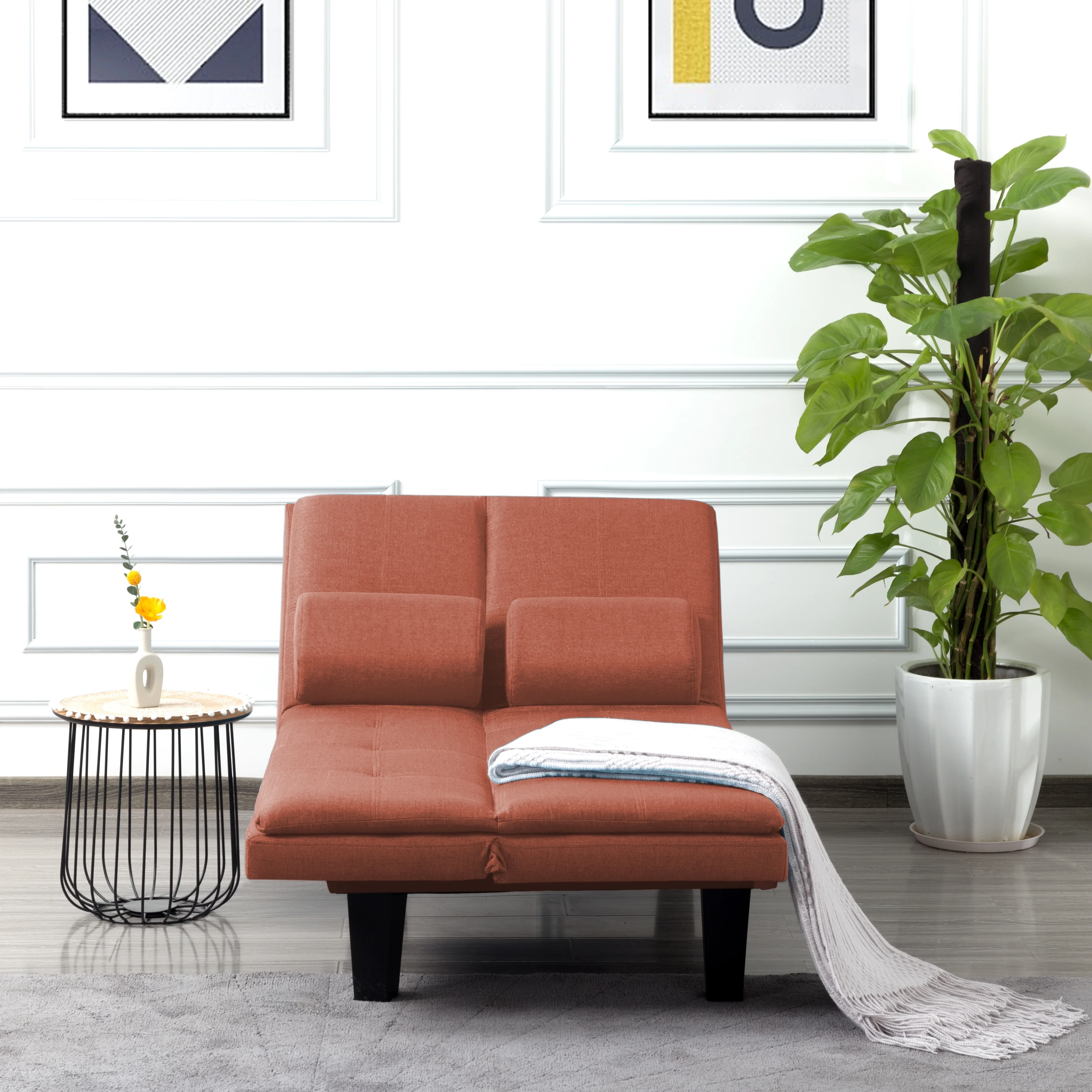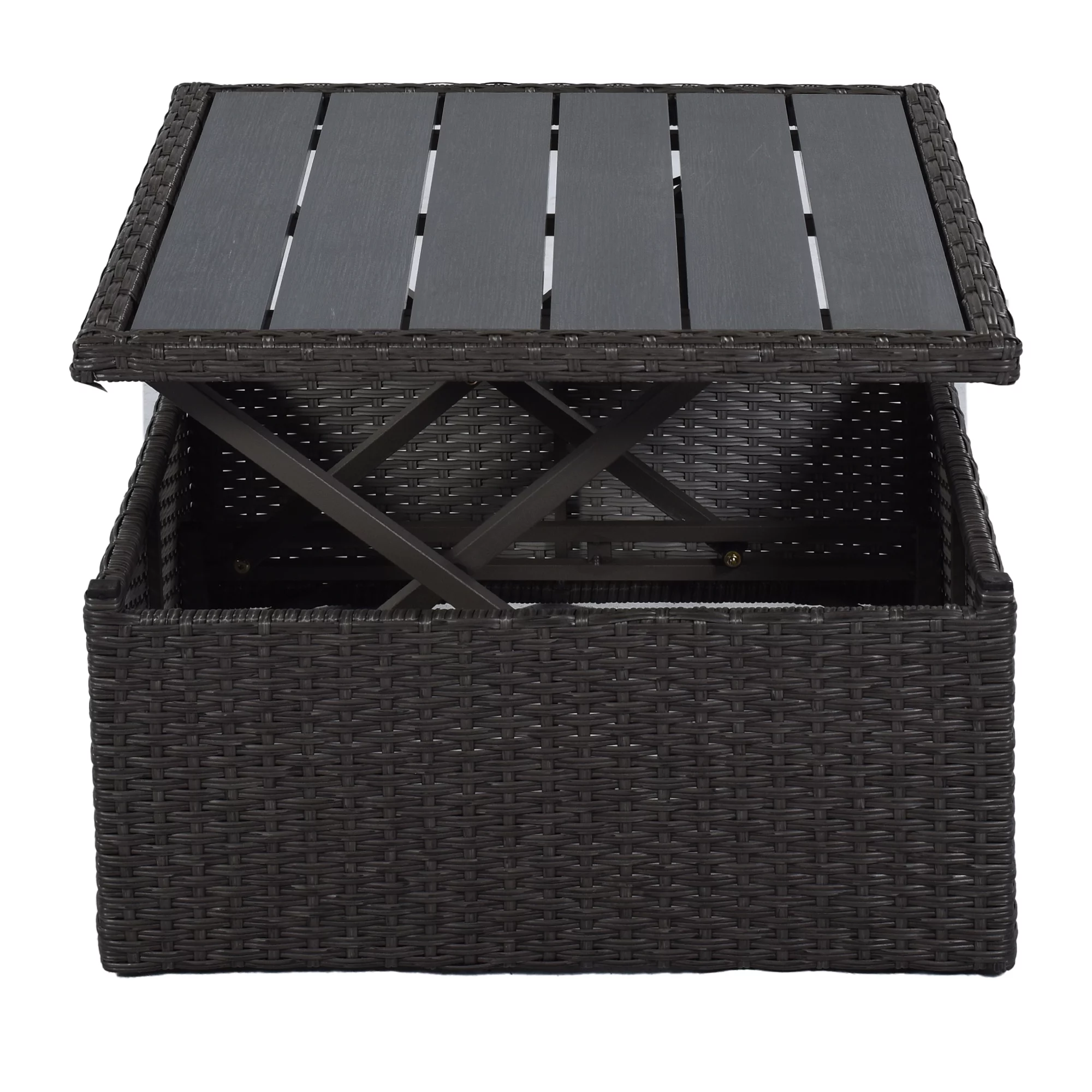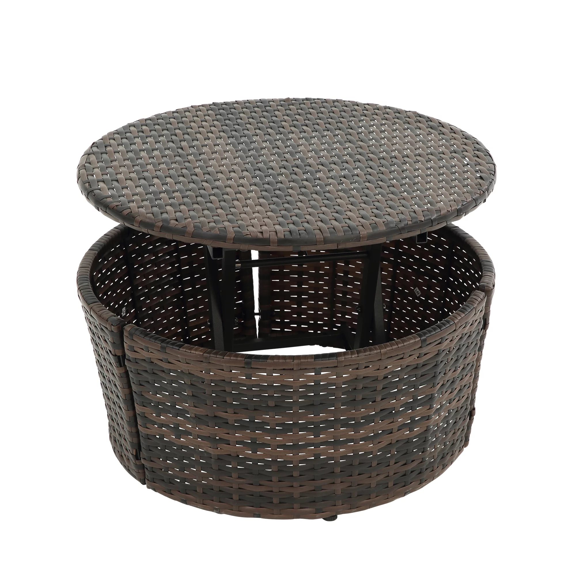 2 Piece Patio Furniture Set with Canopy Patio Daybed and End Table in Espresso Wicker