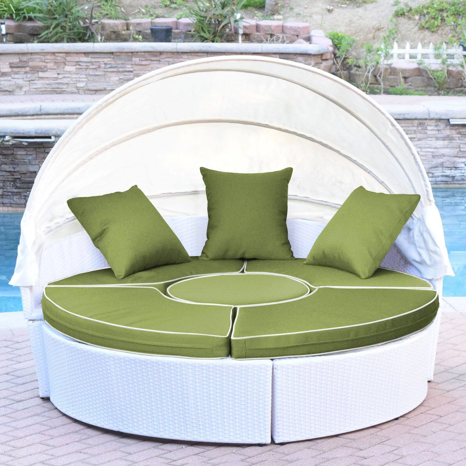 Oaks Aura Outdoor Patio Rectangle Daybed with Retractable Canopy, Wicker Furniture Sectional Seating with Washable Cushions