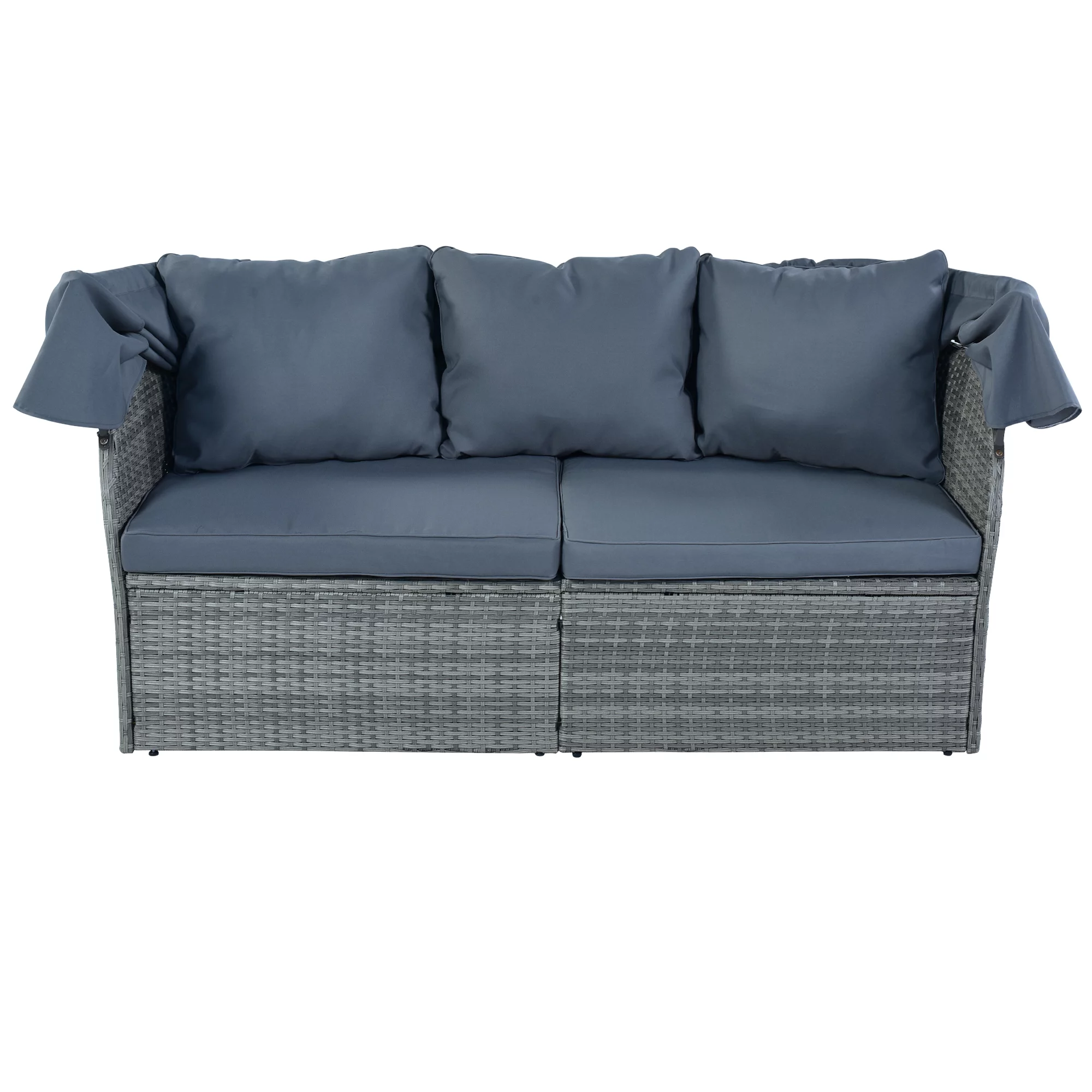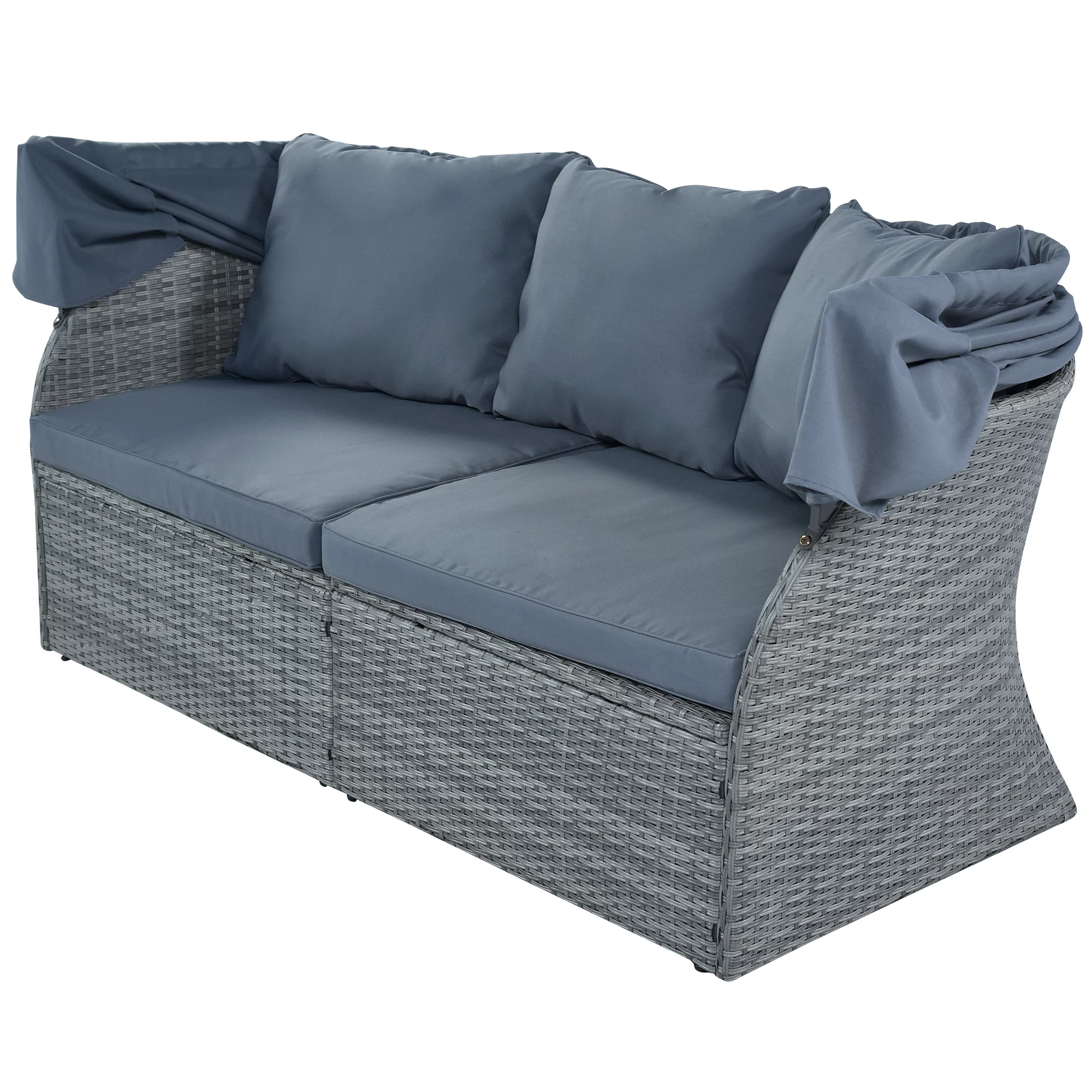 Holaki Outdoor Patio Furniture Set Daybed Sunbed with Retractable Canopy Conversation Set Wicker Furniture Sofa Set, Gray