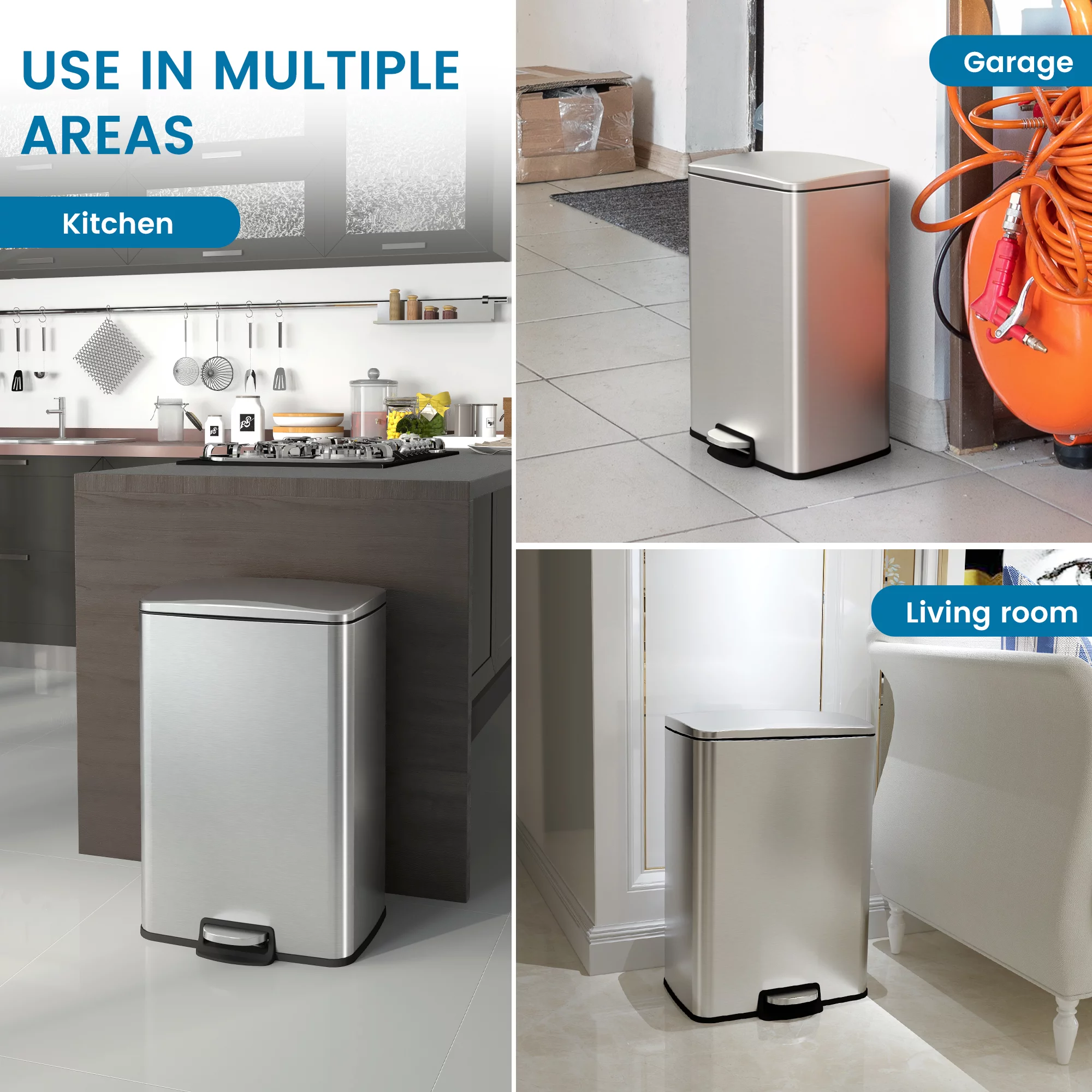 Innovaze 13.2 Gallon Trash Can, Stainless Steel Step On Kitchen Garbage Can, Silver