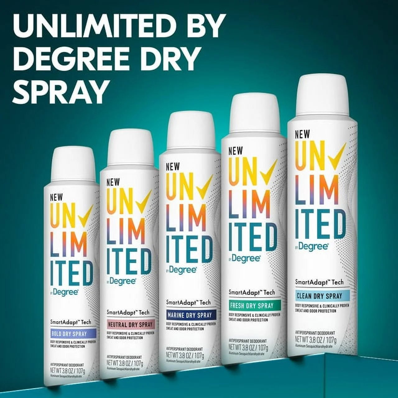 2 Pack! Degree Unlimited Long Lasting Antiperspirant Deodorant Dry Spray, Clean, 3.8 oz