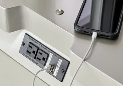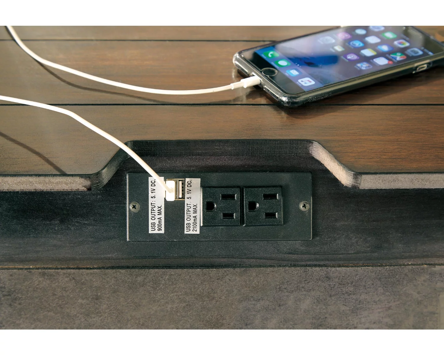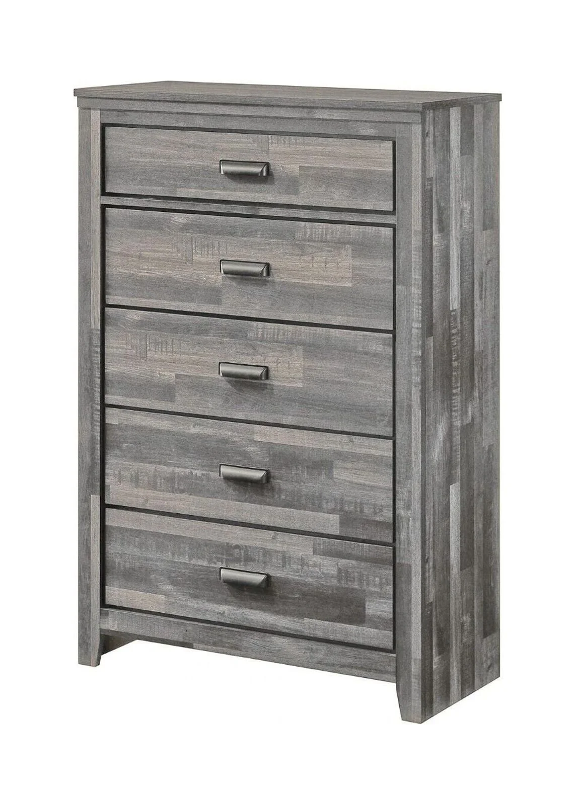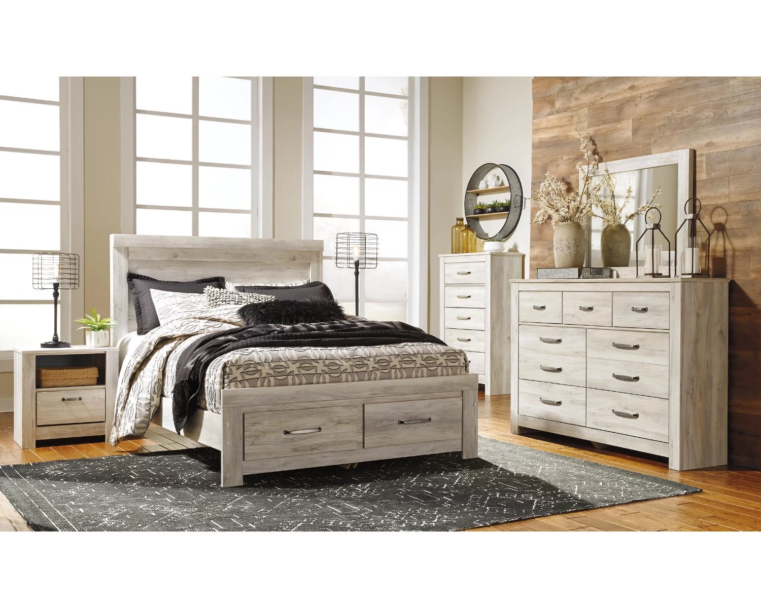 Rustic Gray 6Pc Built in Sconce Light Lamps Platform King Bed Dresser Mirror Nightstands Chest Set Bedroom Furniture
