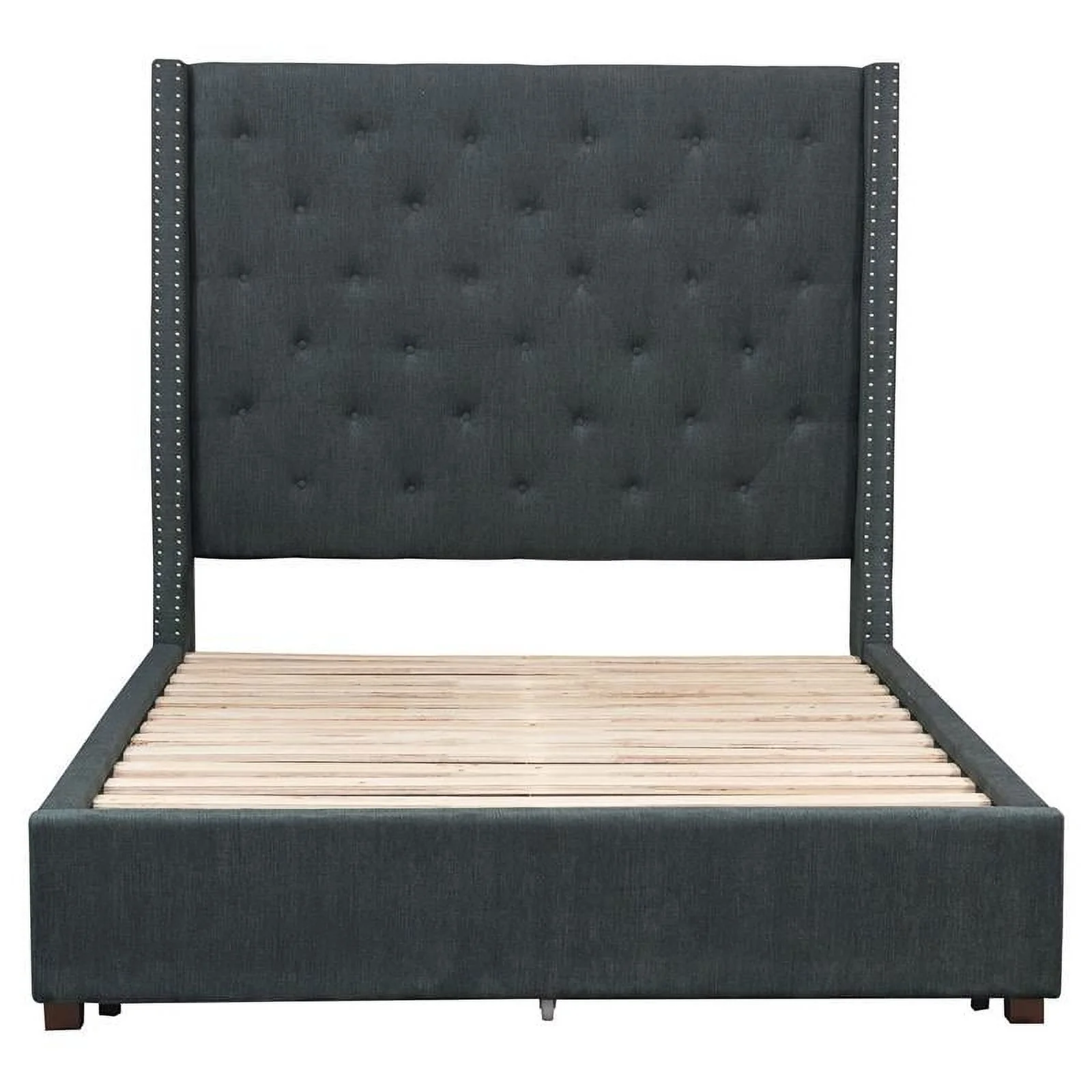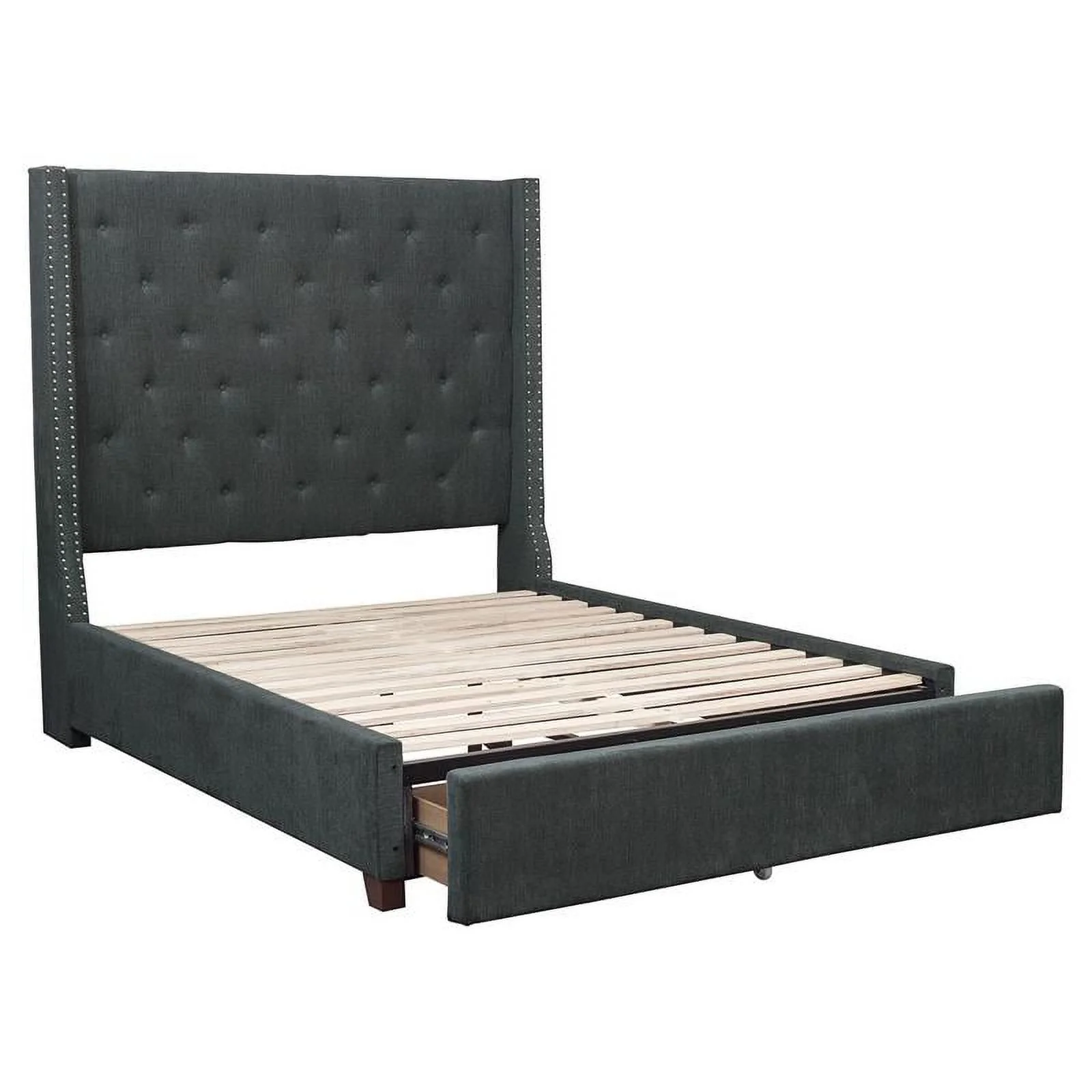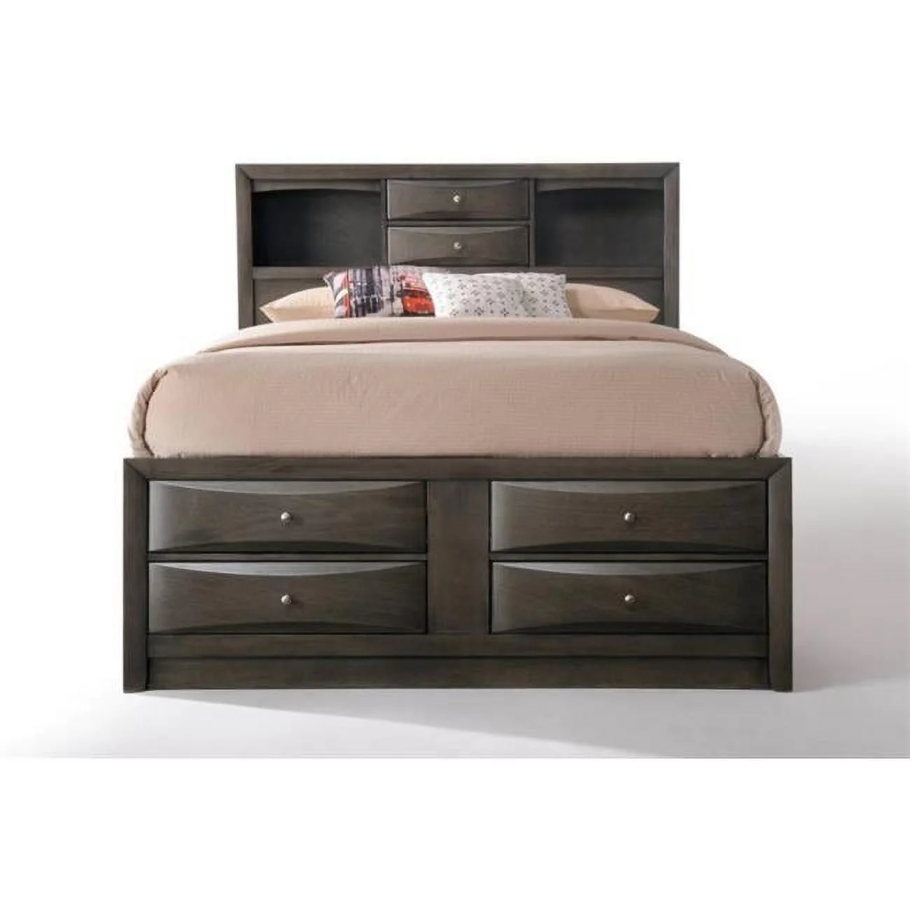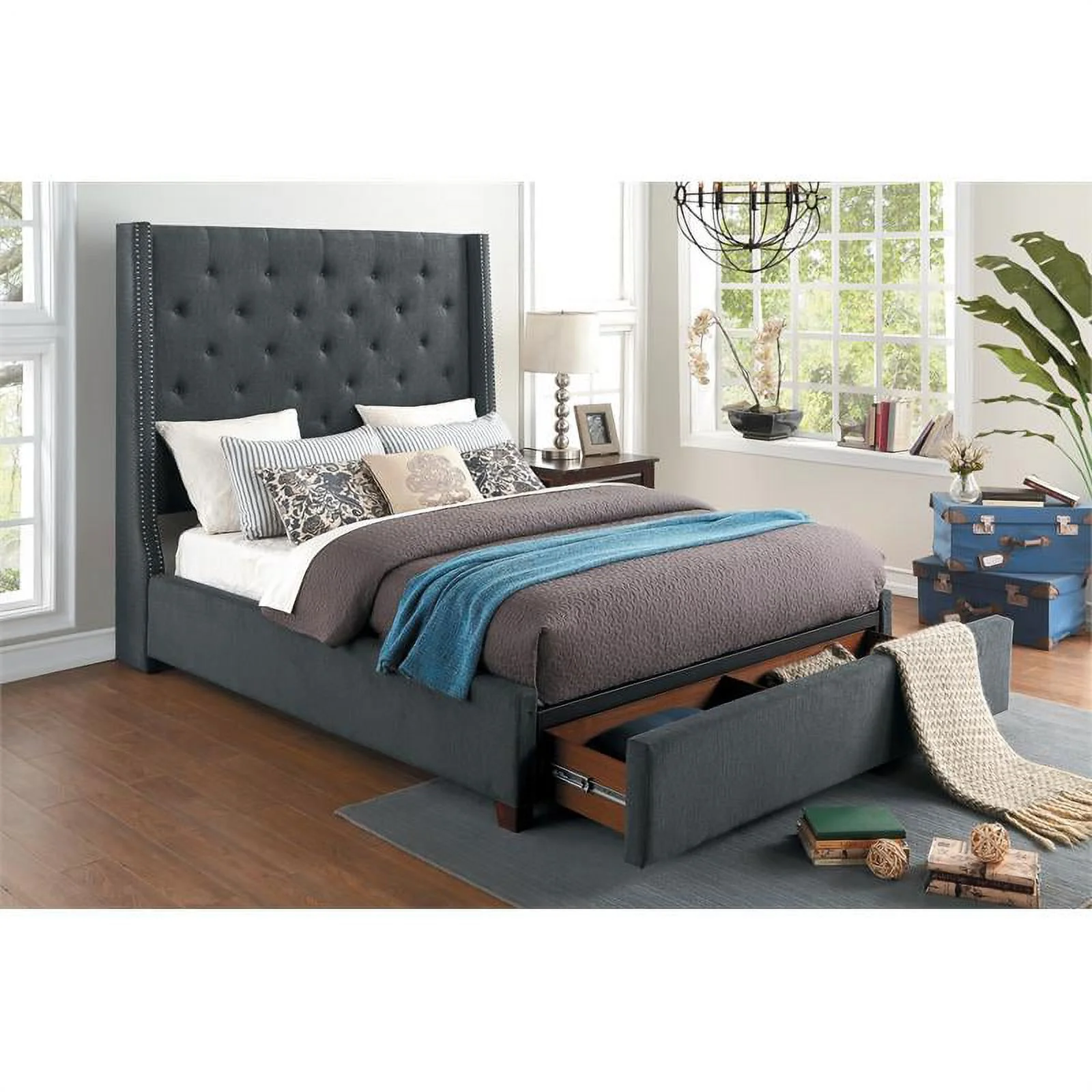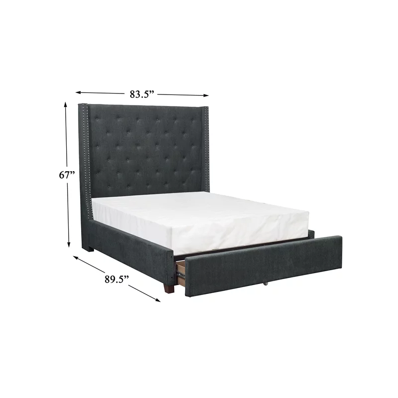 Pemberly Row Transitional Fabric Eastern King Bed with Storage Drawers in Gray