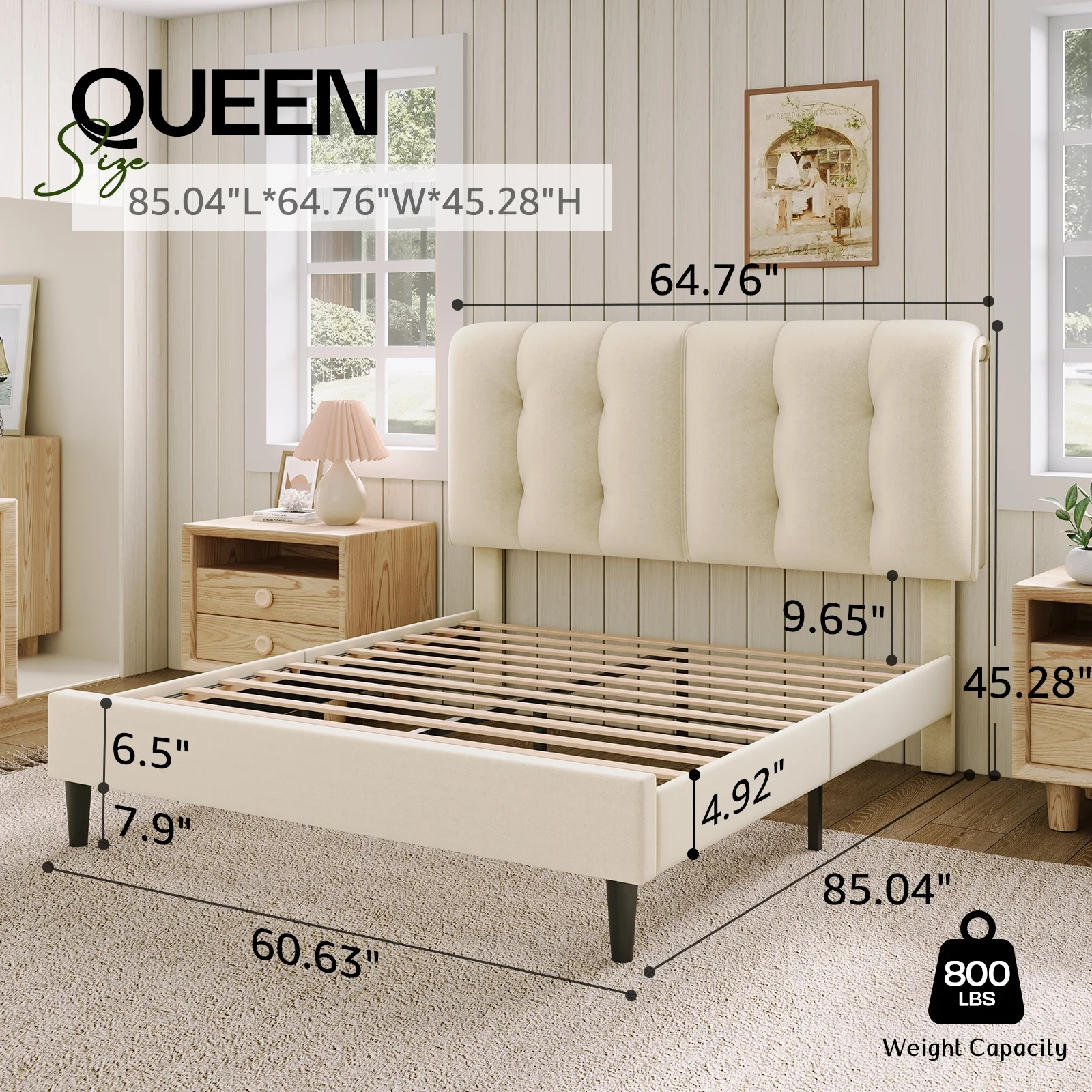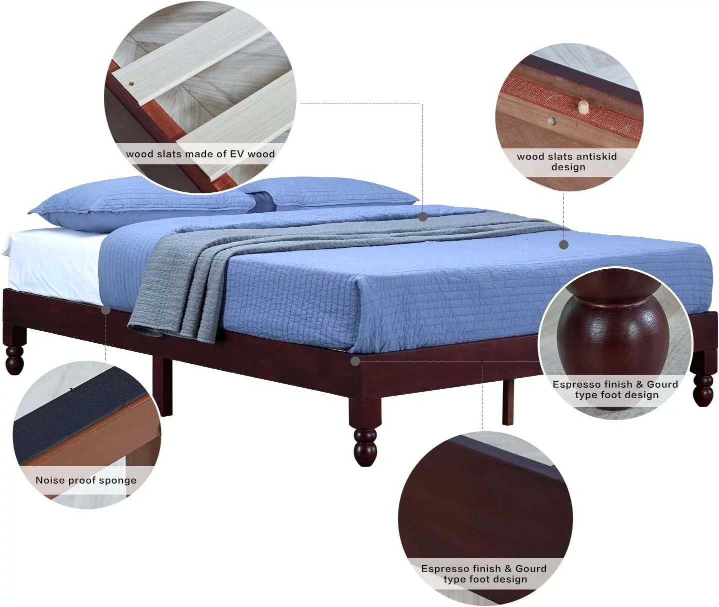MUSEHOMEINC 12 Inch Wood Bed Frame Elegant Style Eliminates Not Boxspring Needed Espresso Finish