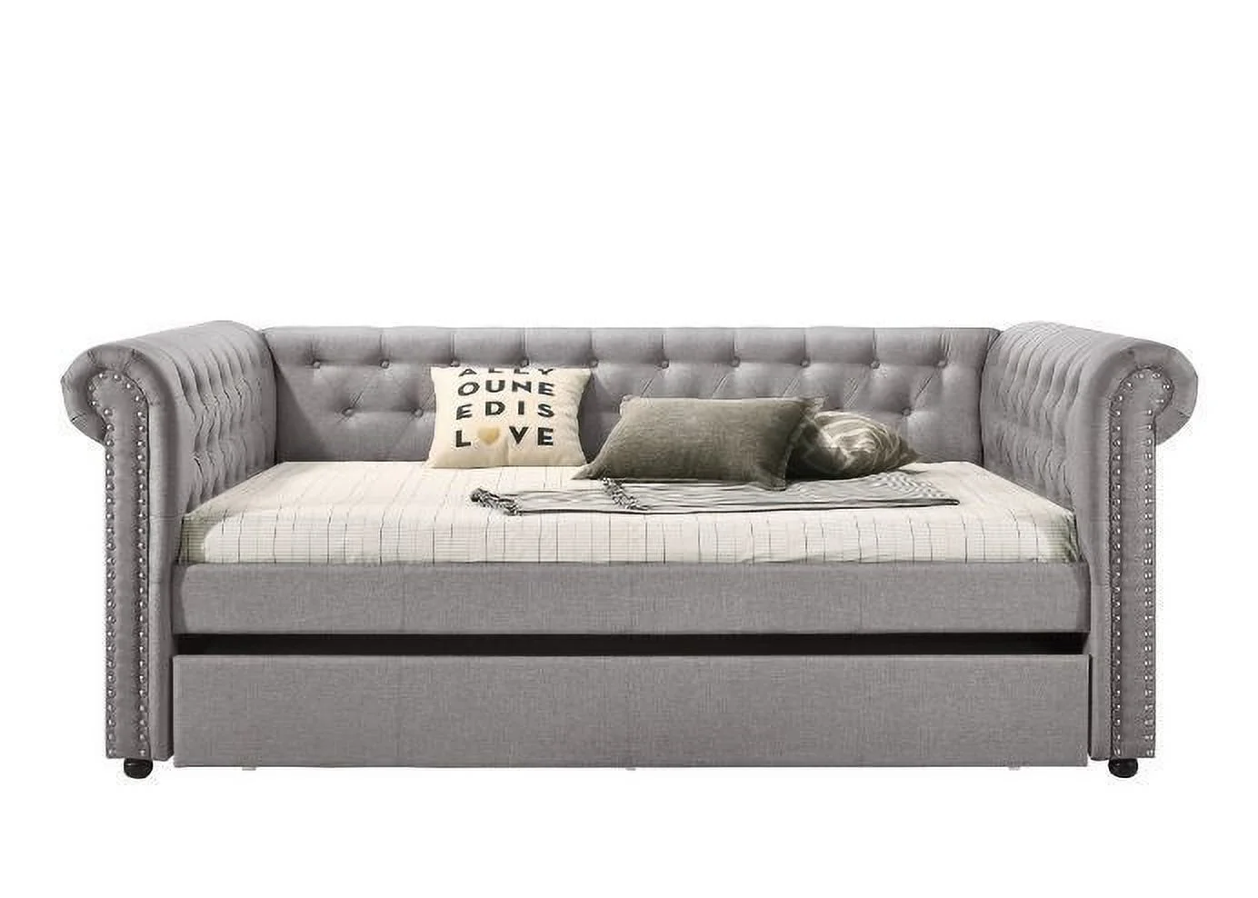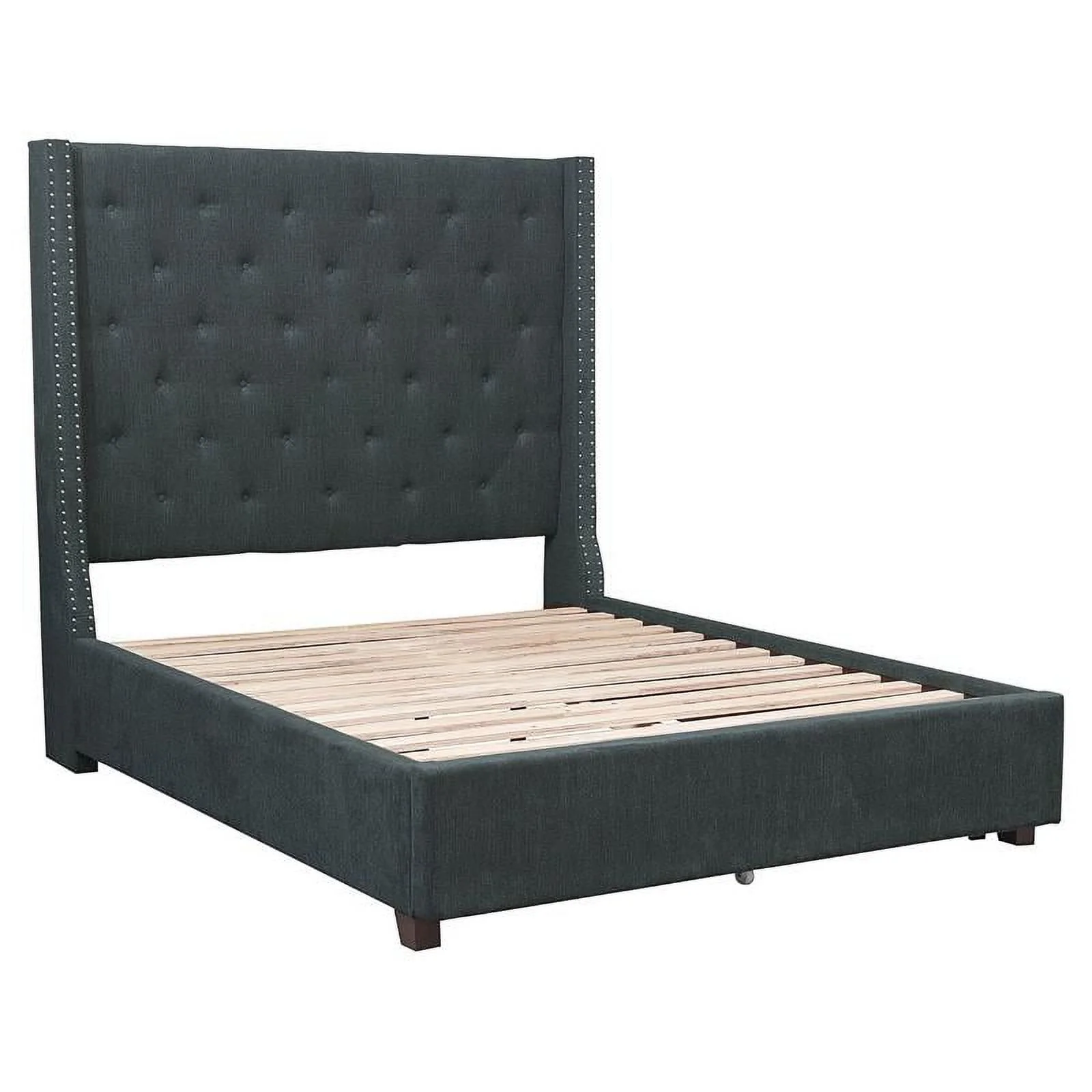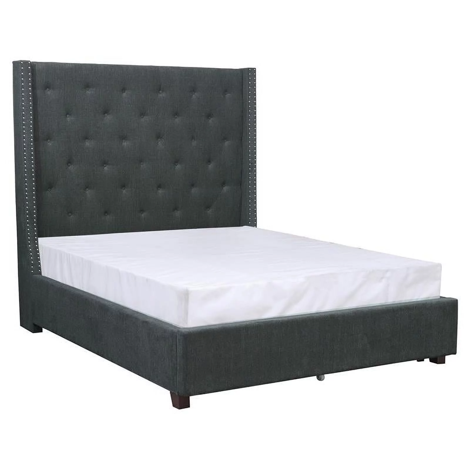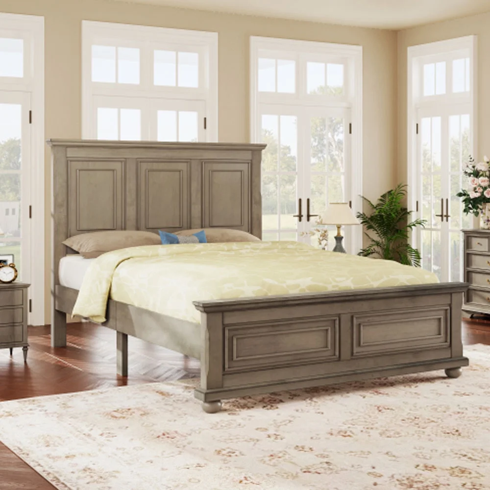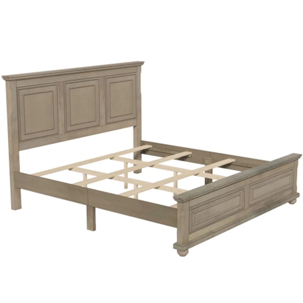 Traditional Town and Country Style Pinewood Vintage King Bed, Stone Gray