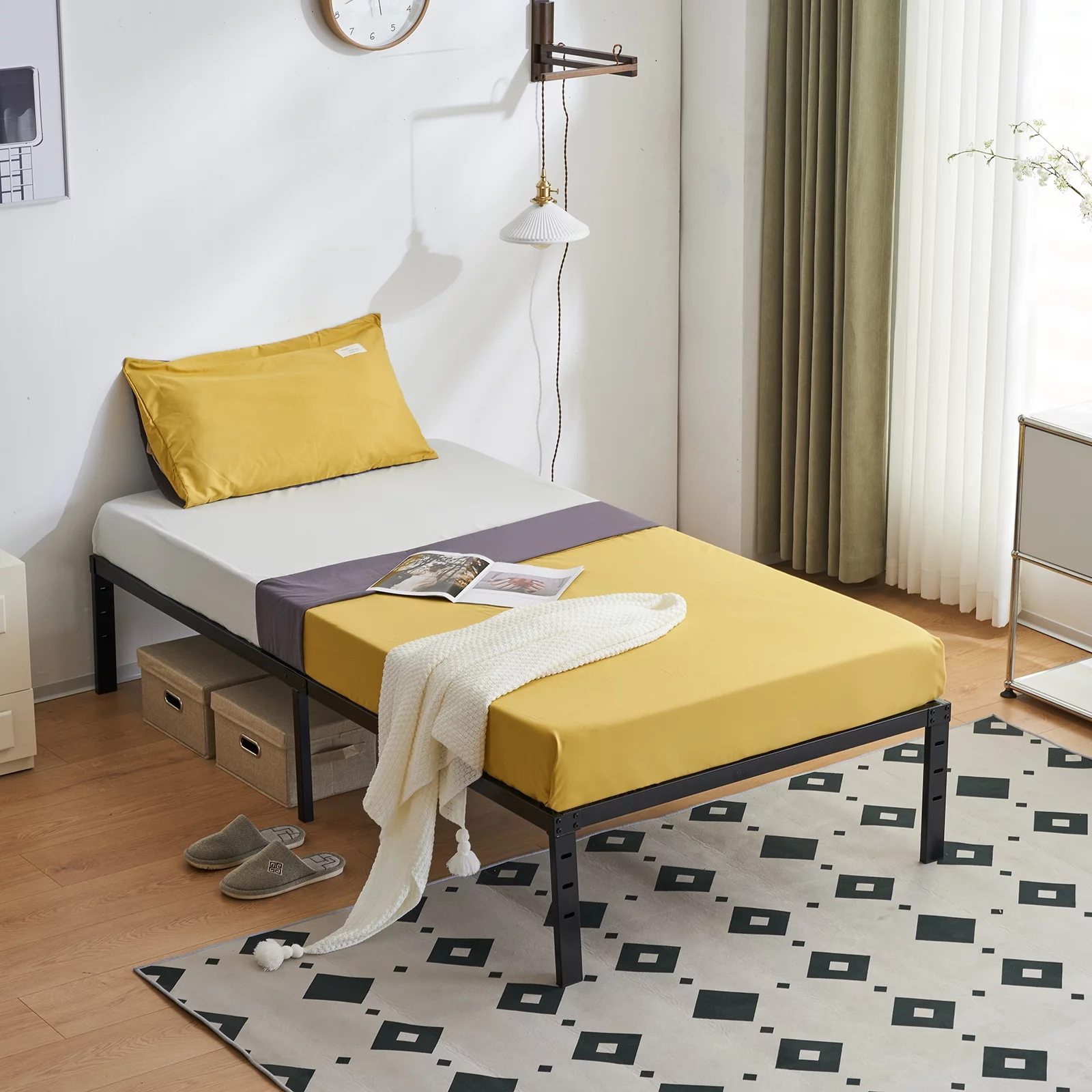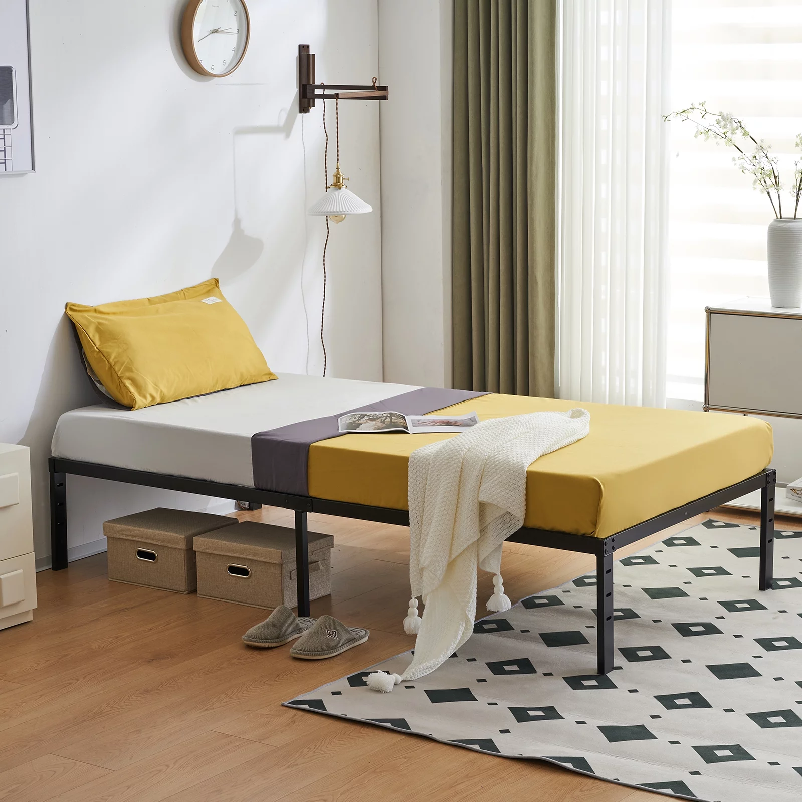 Fithood 208*101.5*35.5cm Bed Height 14" Simple Basic Iron Bed Frame Iron Bed Black