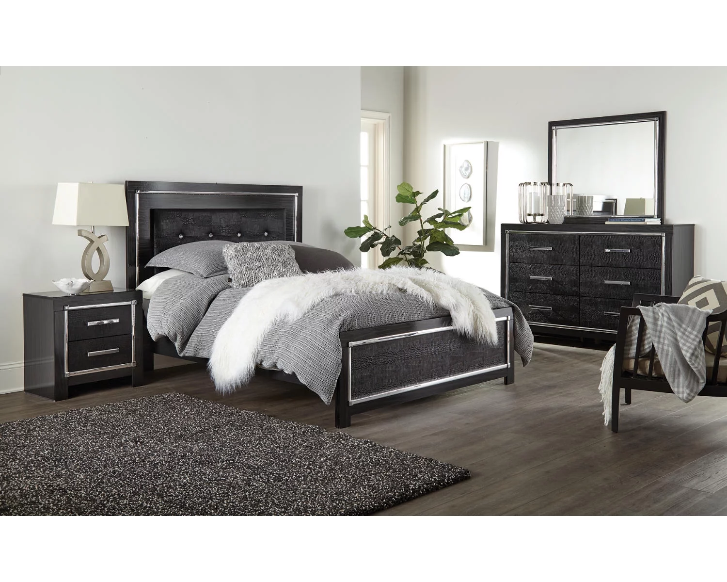 Signature Design by Ashley Contemporary Kaydell 2 Drawer Nightstand, Black