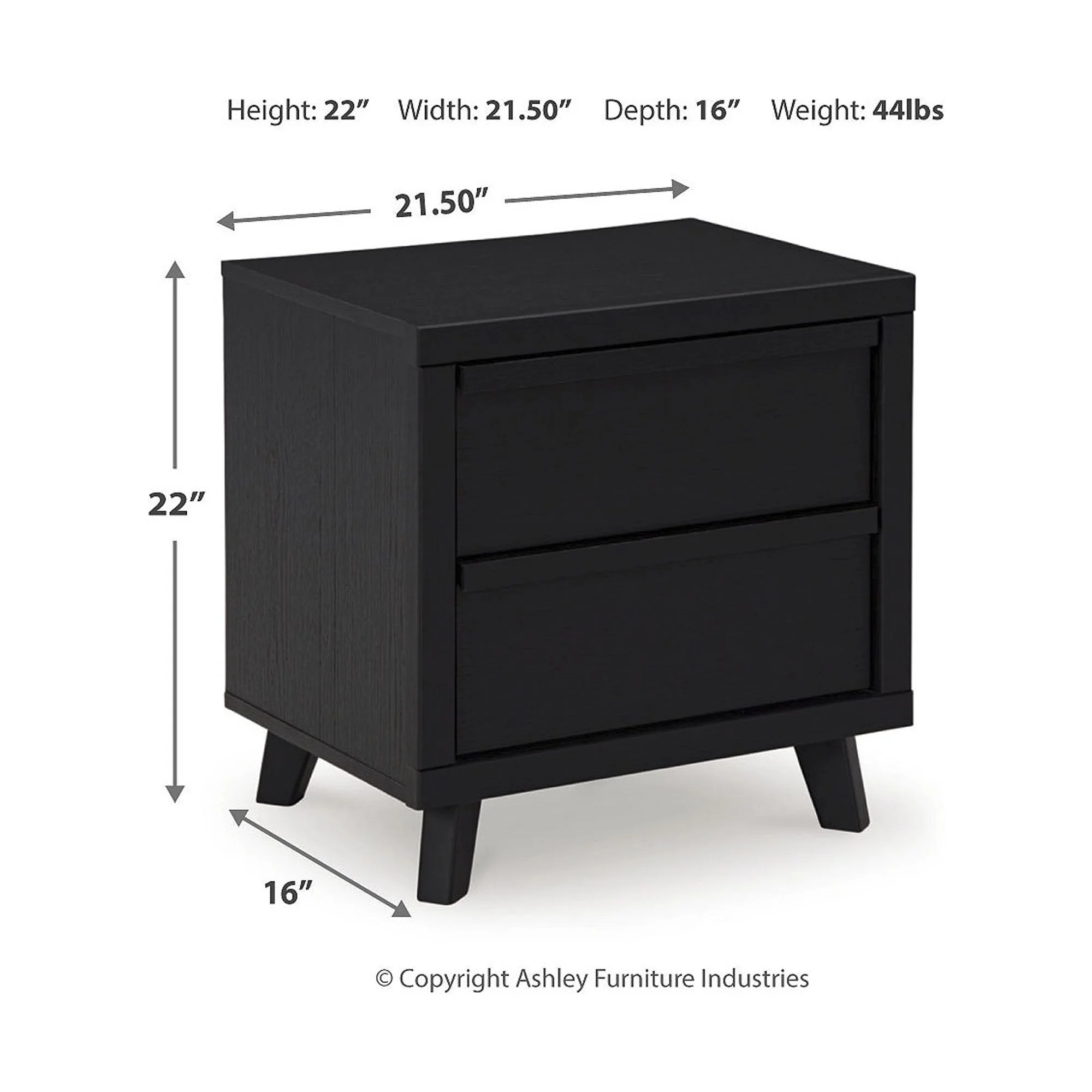 Signature Design by Ashley Danziar Modern 21.97" 2 Drawers Nightstand with USB & Qi Charging Options, Black