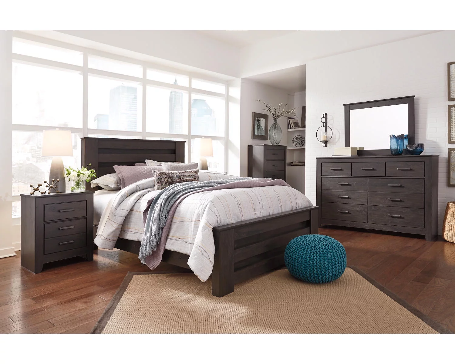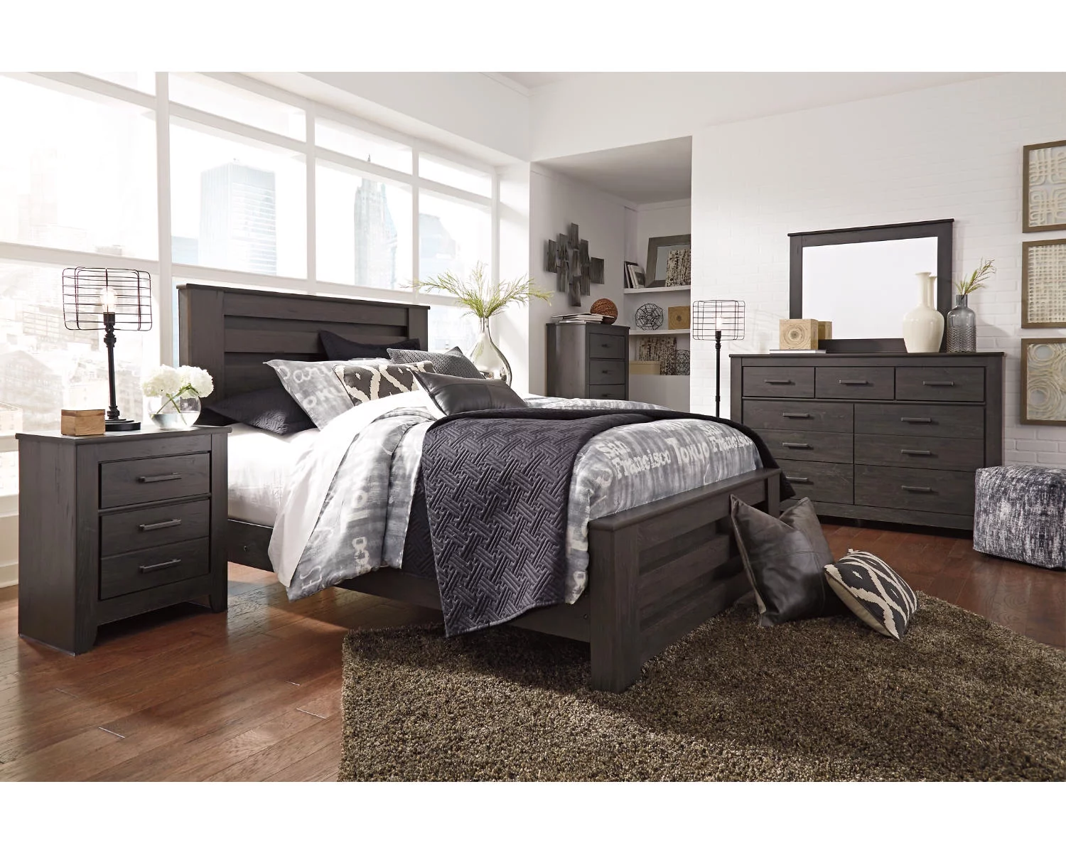 Signature Design by Ashley Casual Brinxton 2 Drawer Nightstand, Charcoal