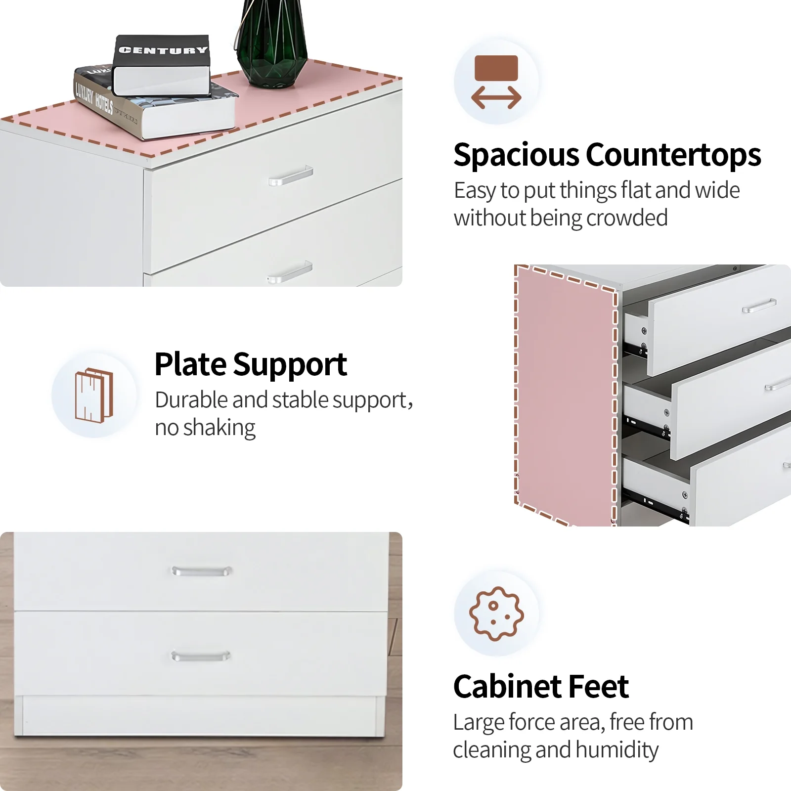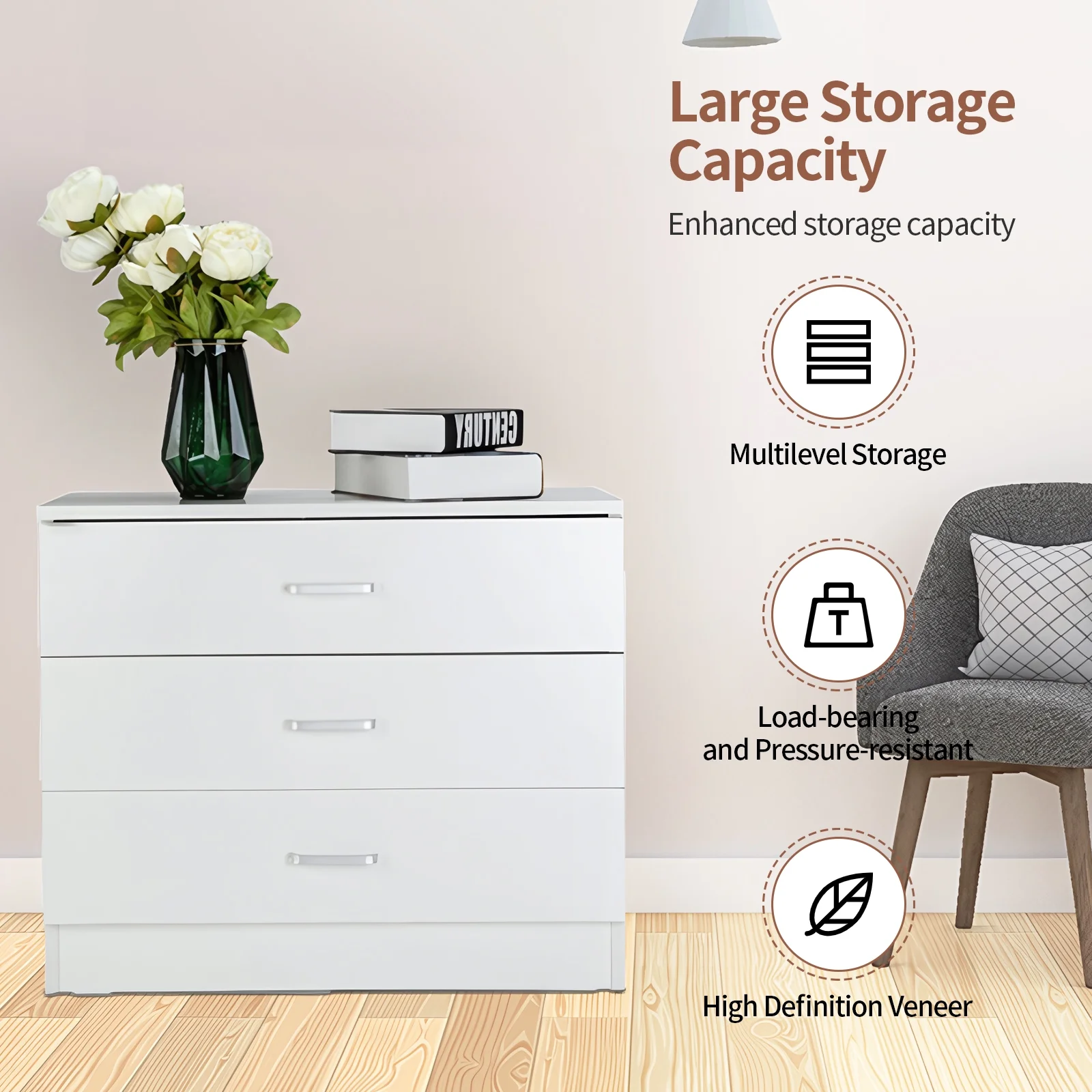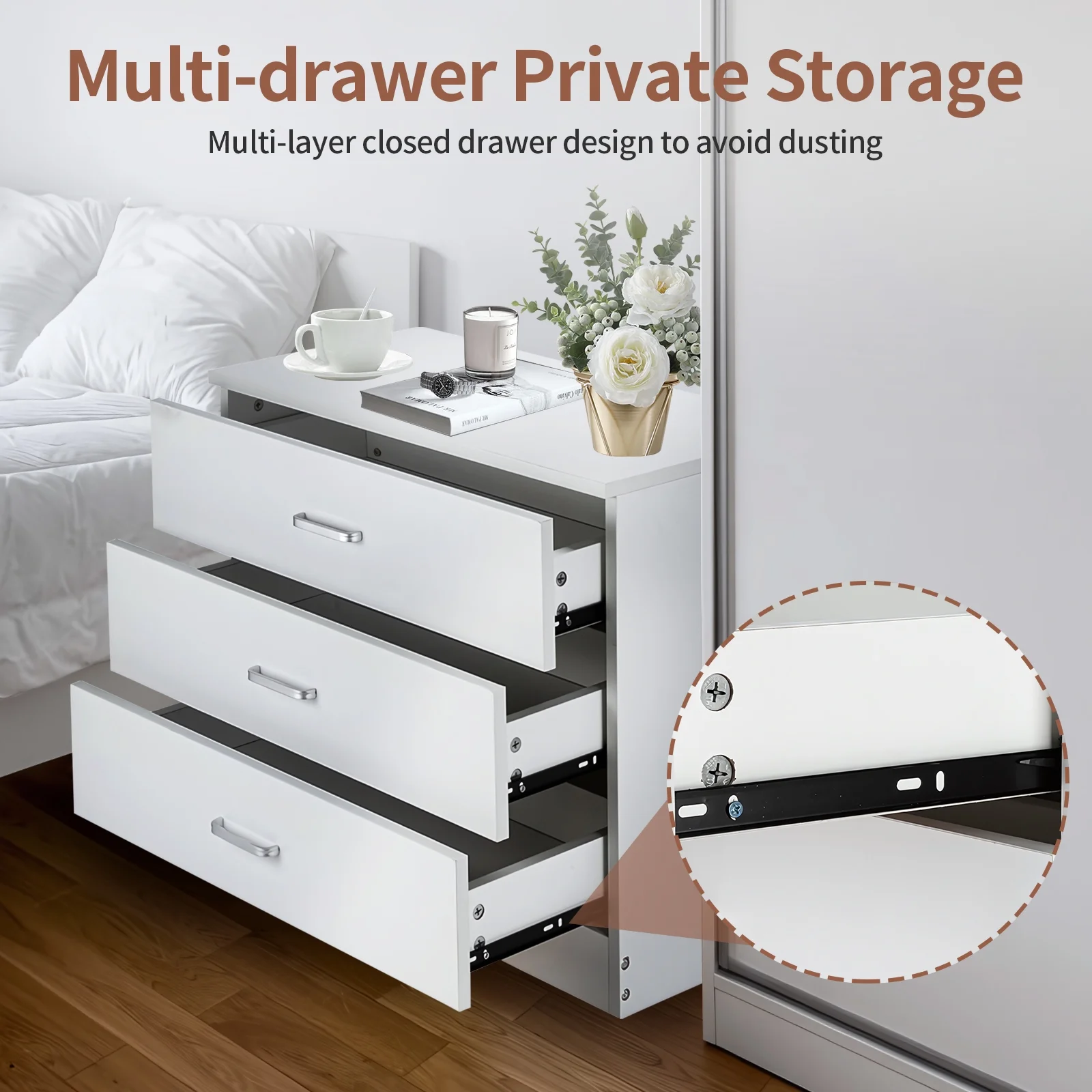 SYTHERS 3-Drawer Dresser for Bedroom, 26W×13D×22H Modern Storage Chest of Drawers, White