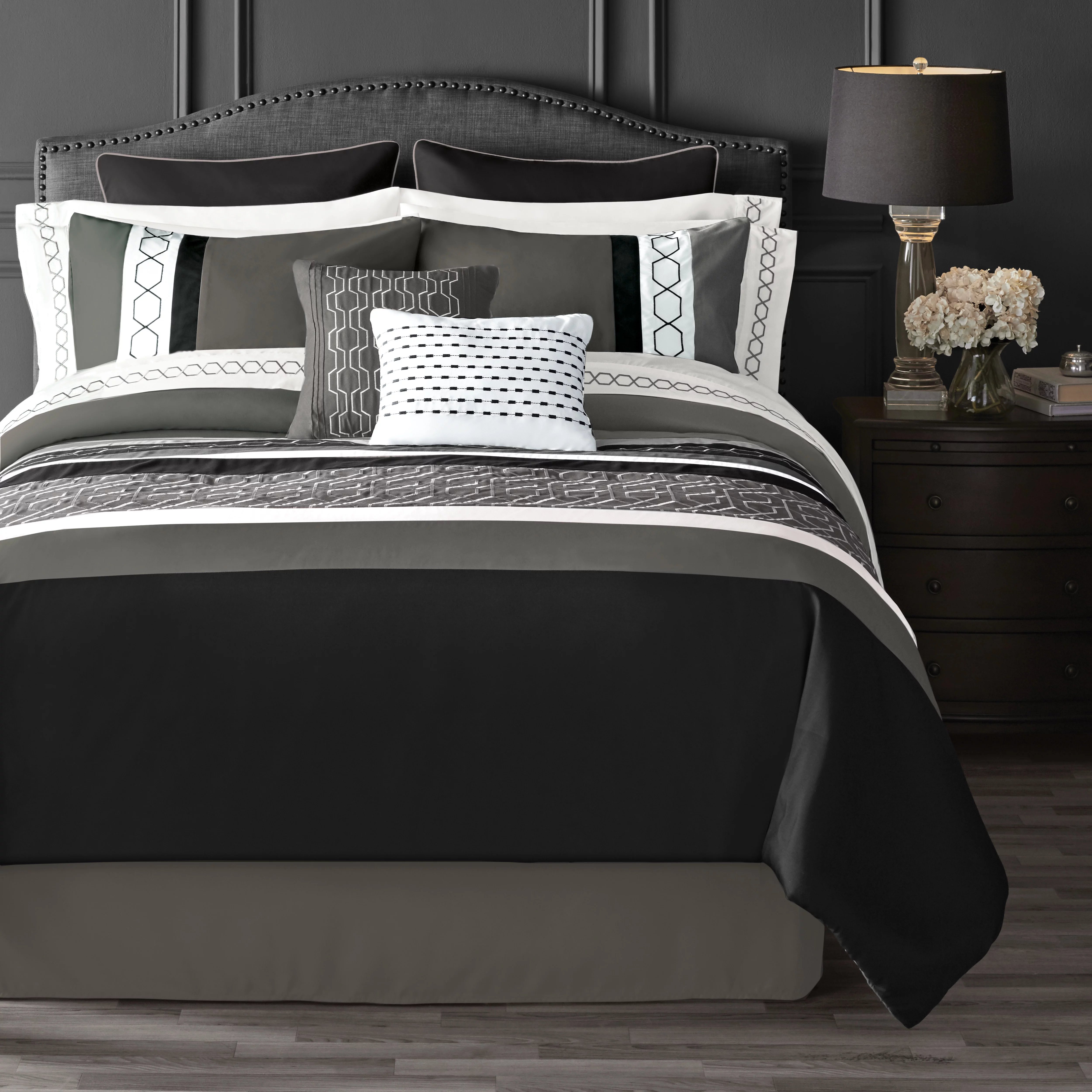 Hotel Style Black & White Stripe 14 Piece Bed in a Bag Comforter Set with Sheets, King