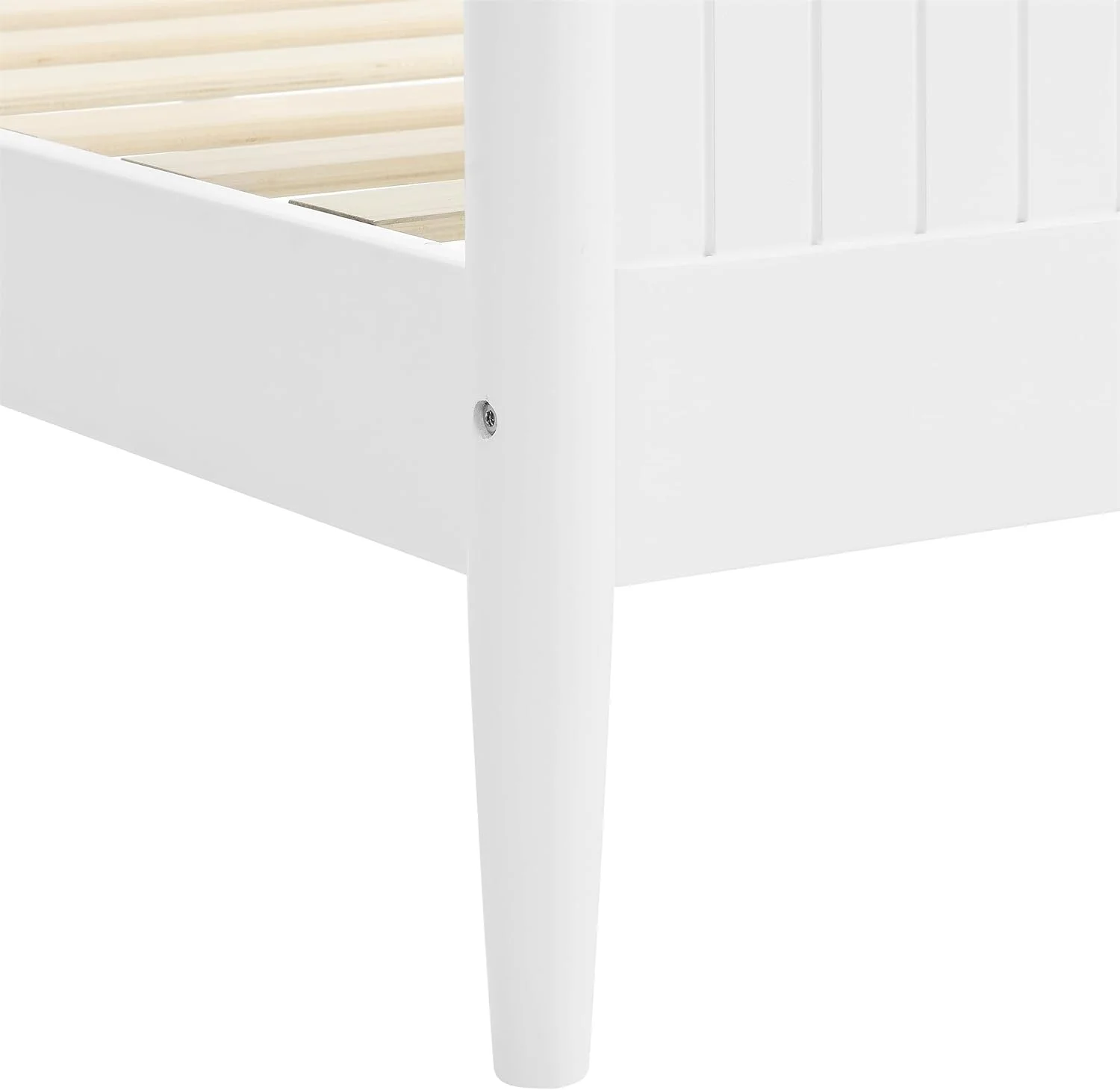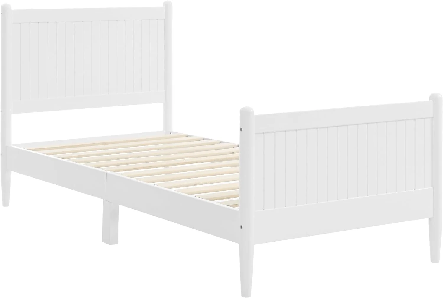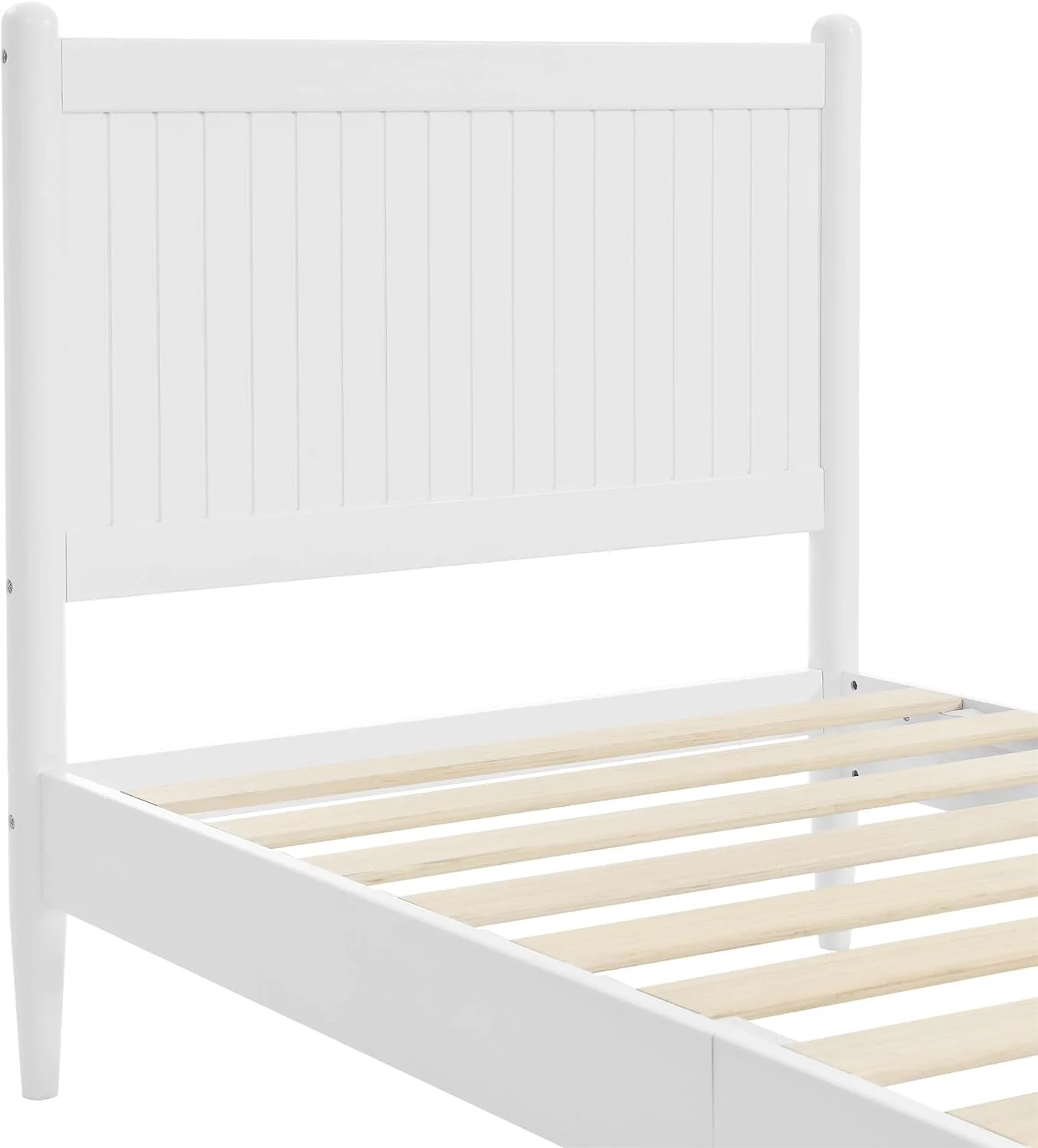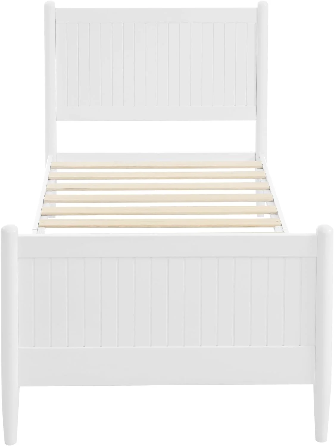 Wooden Bed Frame With Headboard & Footboard Designed, Beadboard Paneling And Lathe Turned Feet,No Box Spring Needed (White)