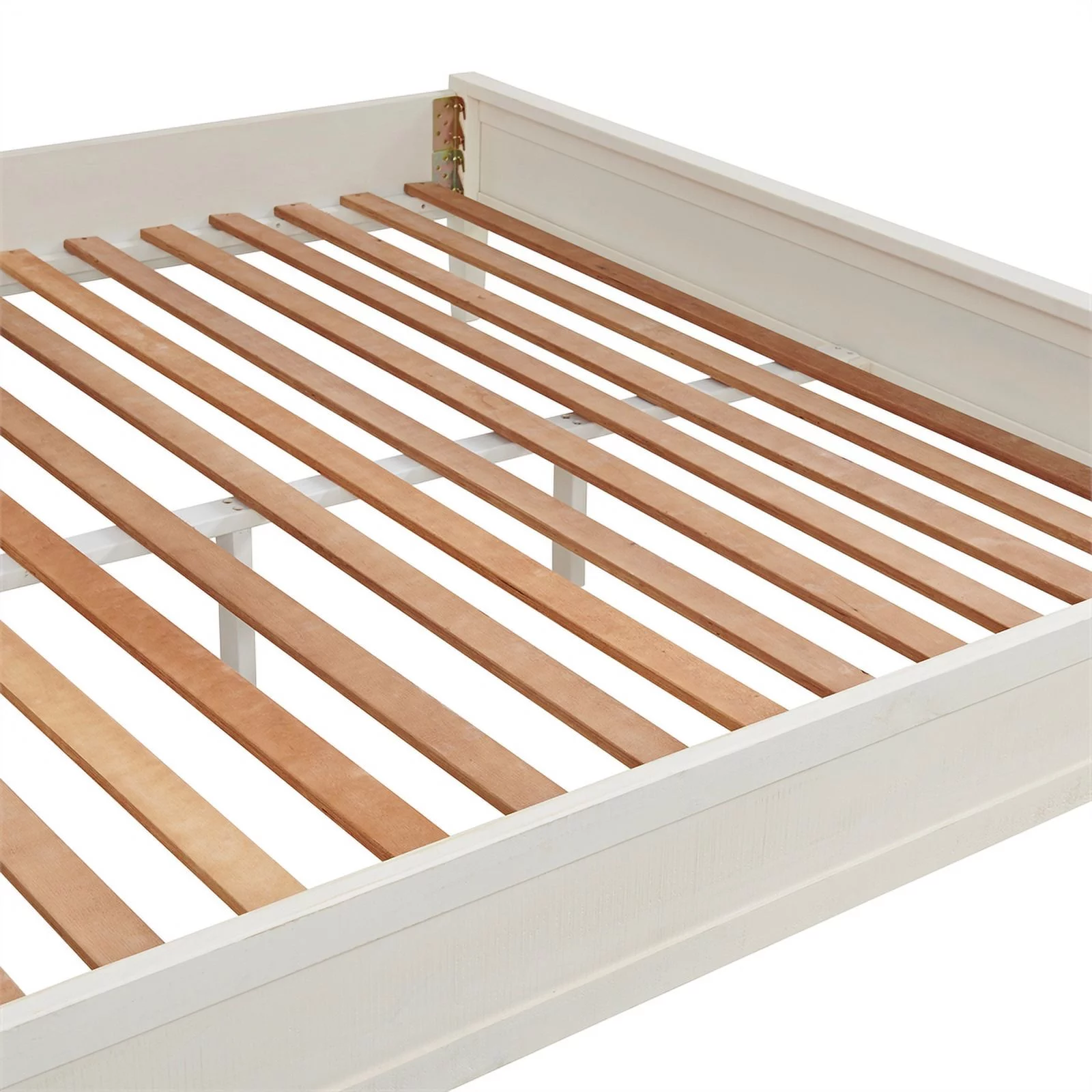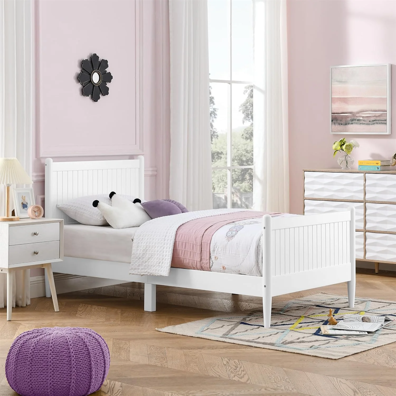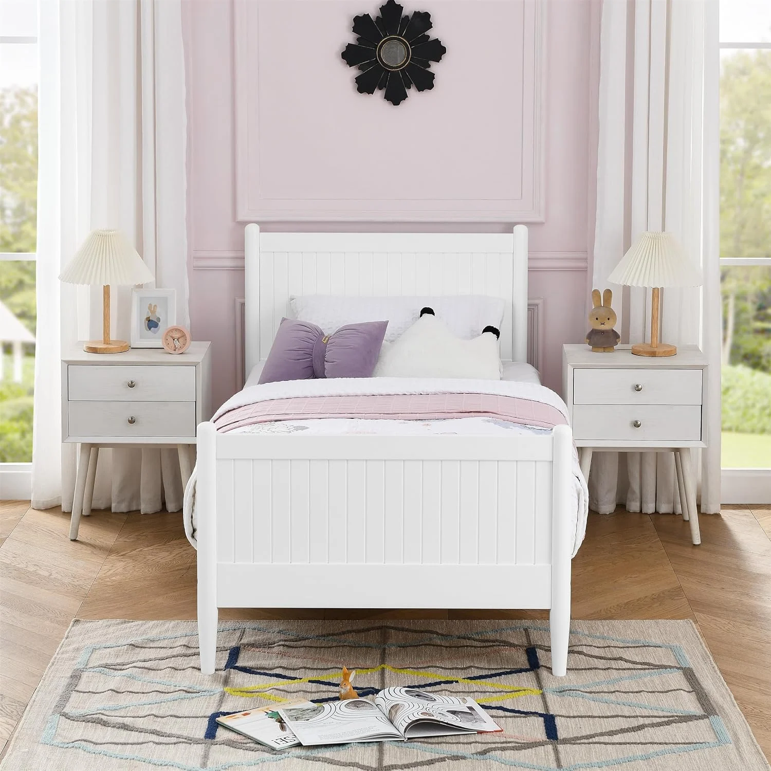 Wooden Bed Frame With Headboard & Footboard Designed, Beadboard Paneling And Lathe Turned Feet,No Box Spring Needed (White)