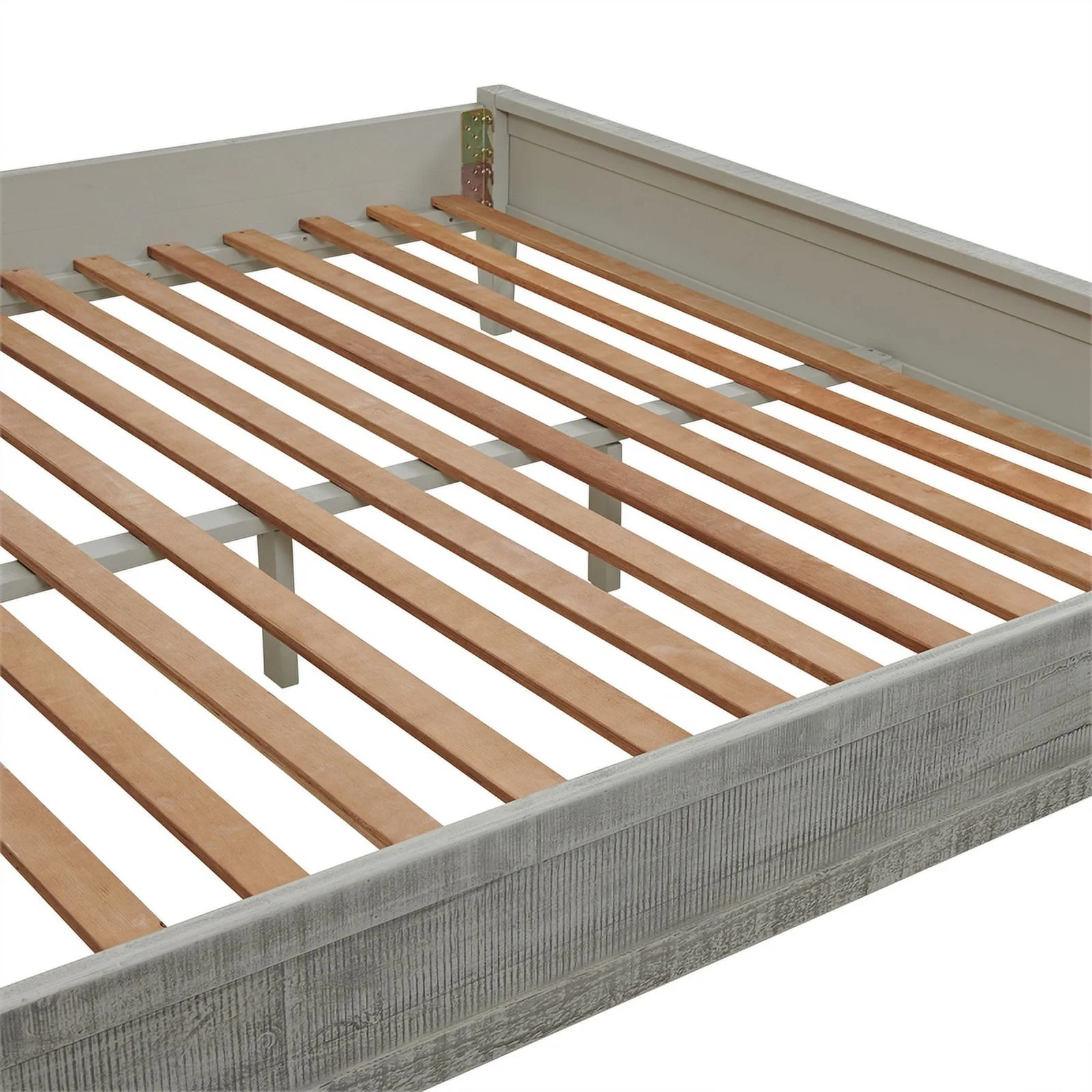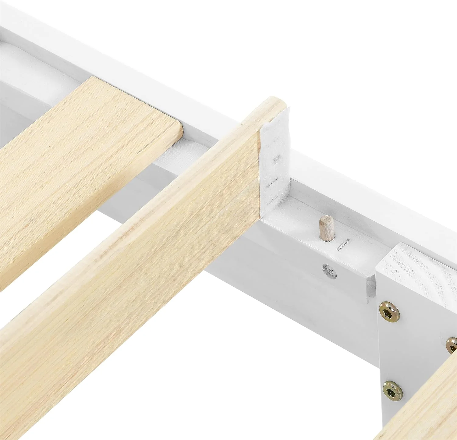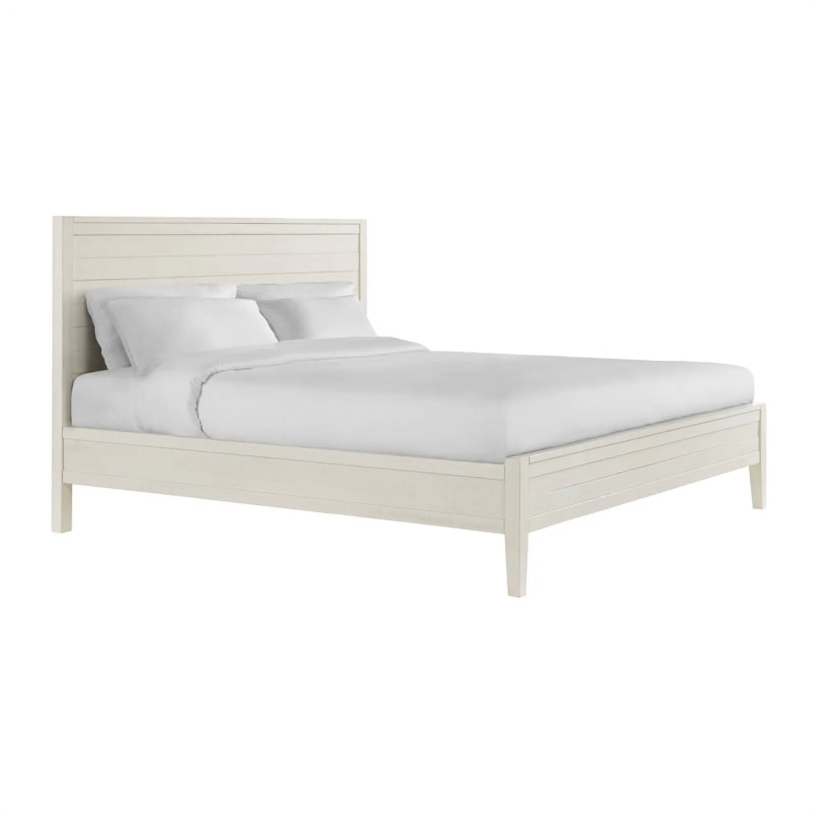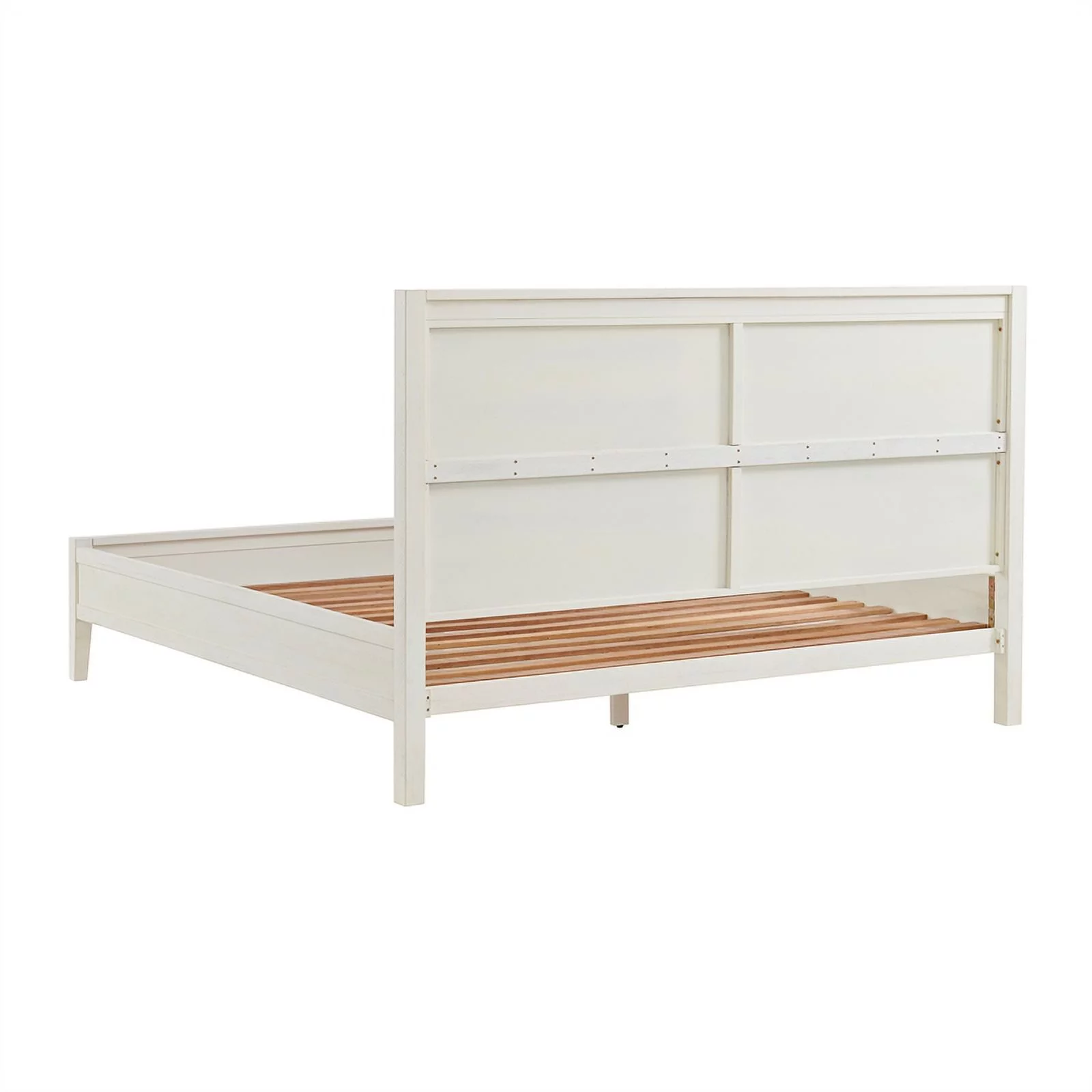 Wooden Bed Frame With Headboard & Footboard Designed, Beadboard Paneling And Lathe Turned Feet,No Box Spring Needed (White)