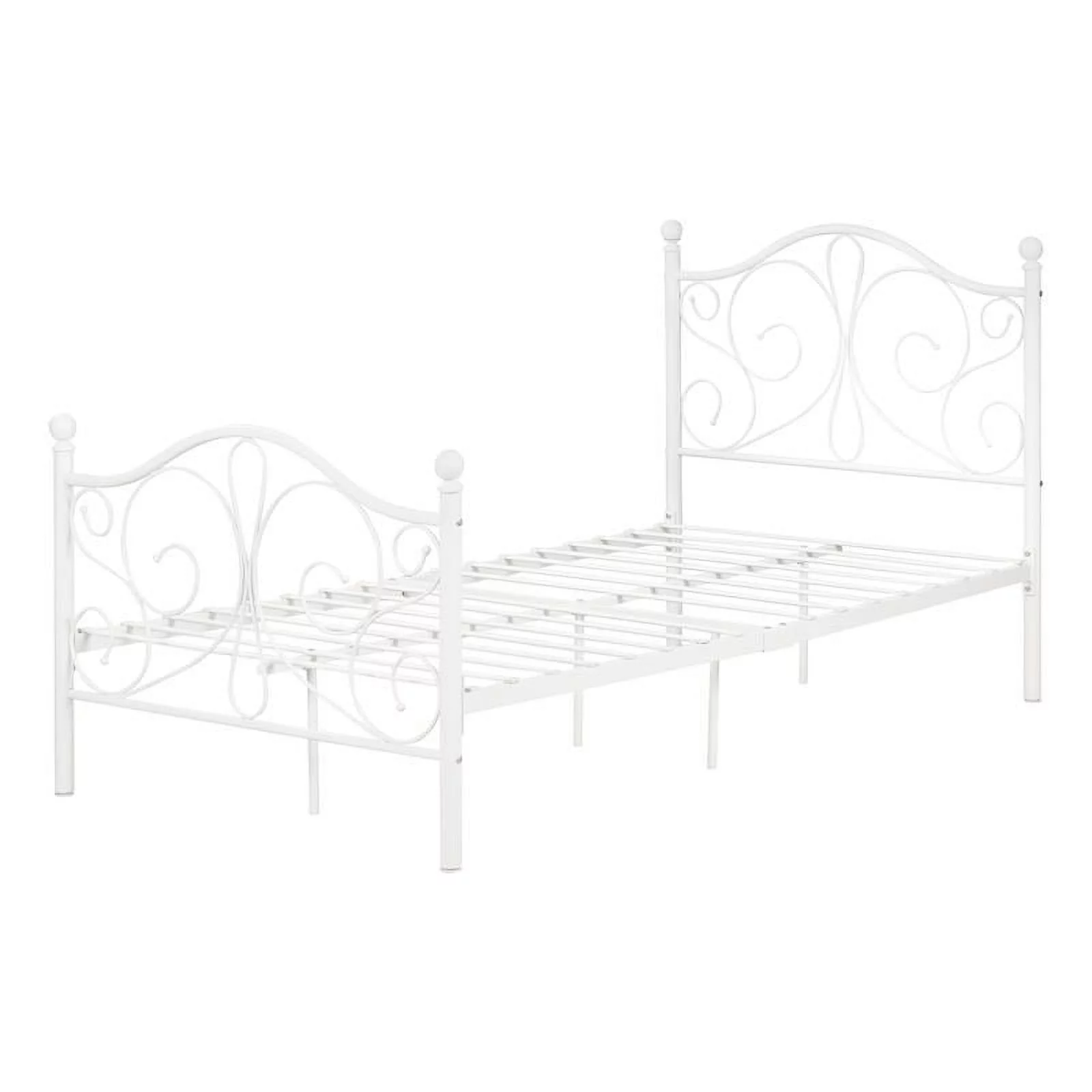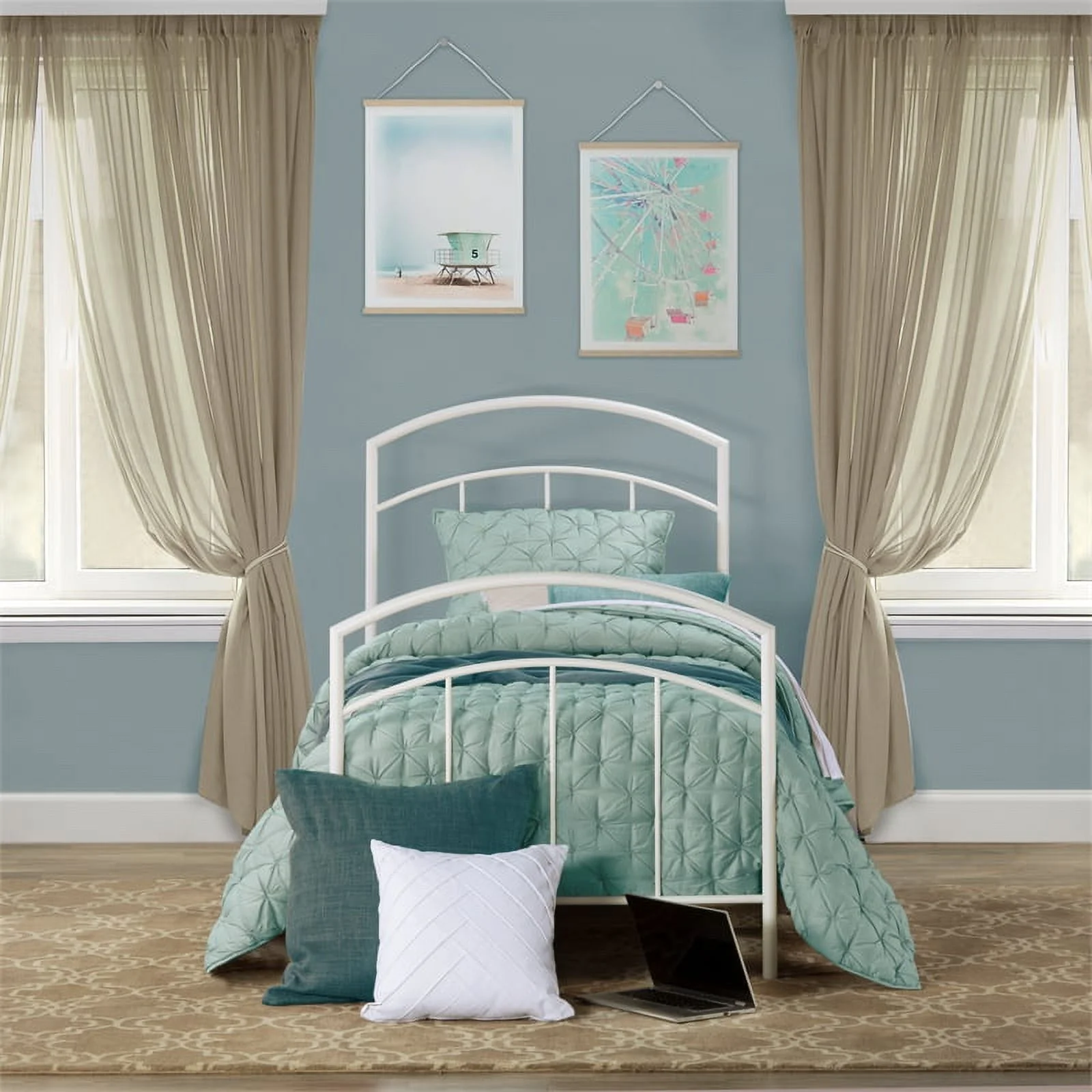 Sauder Harvey Park Metal Twin Platform Bed with Headboard in White Finish